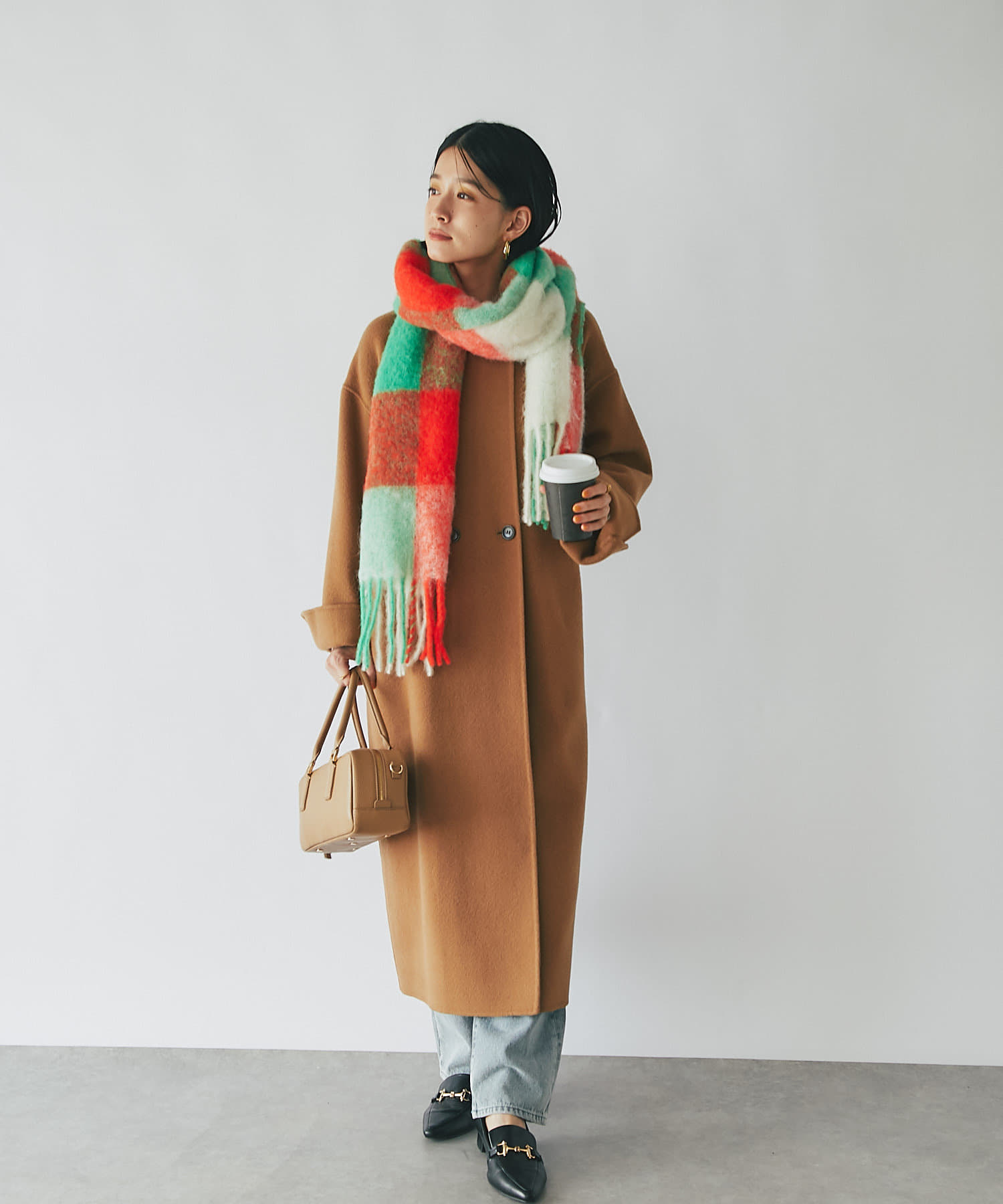 【鮮やかな色使いが華やかさをプラス】モヘアチェックストール
