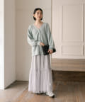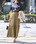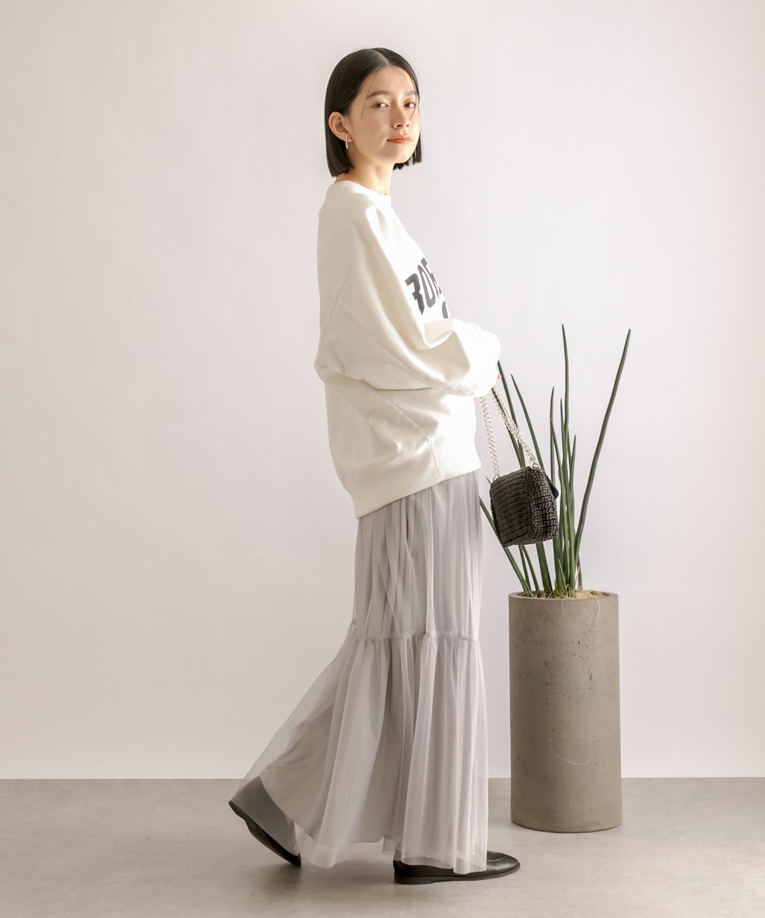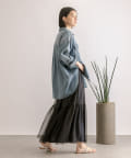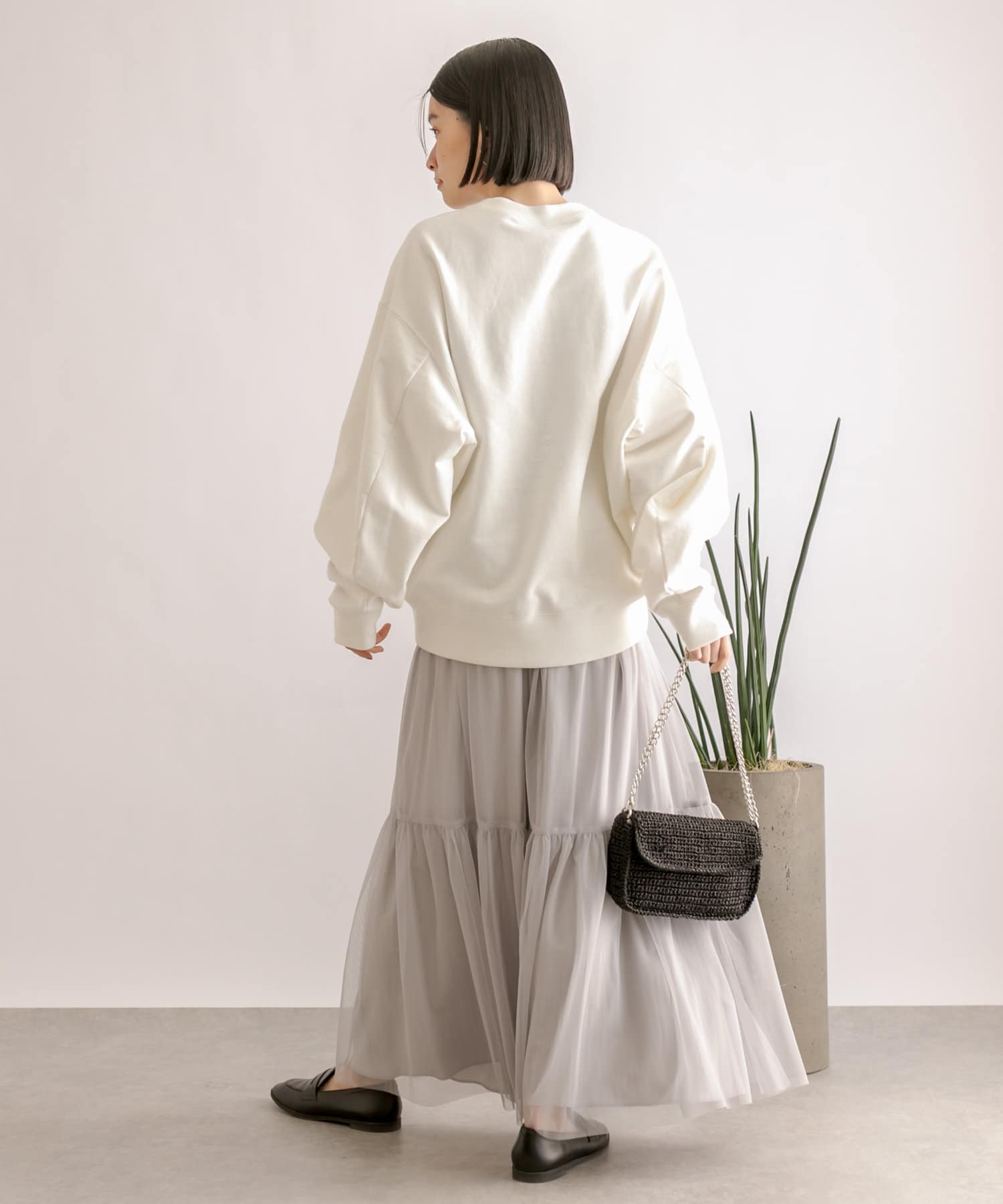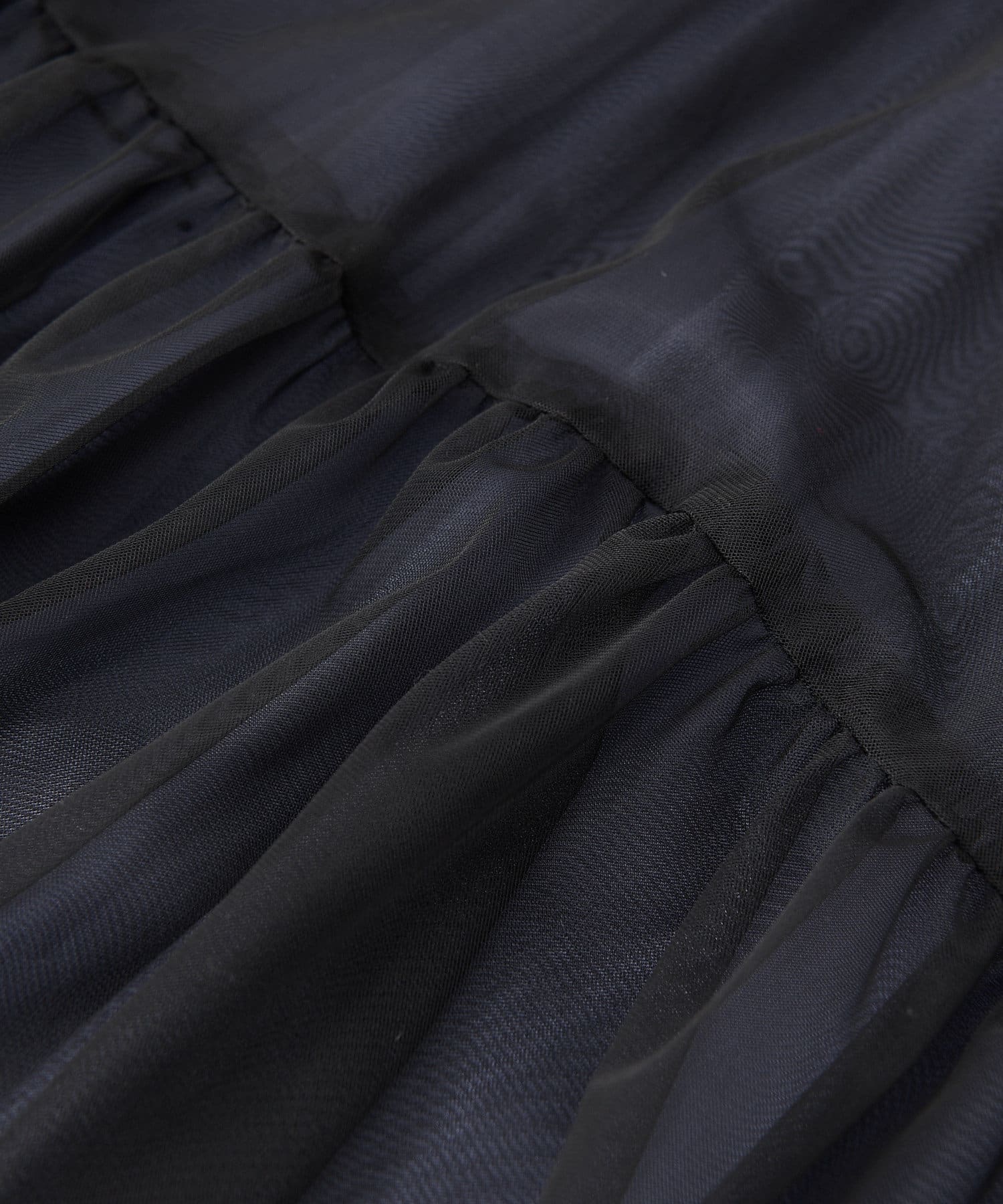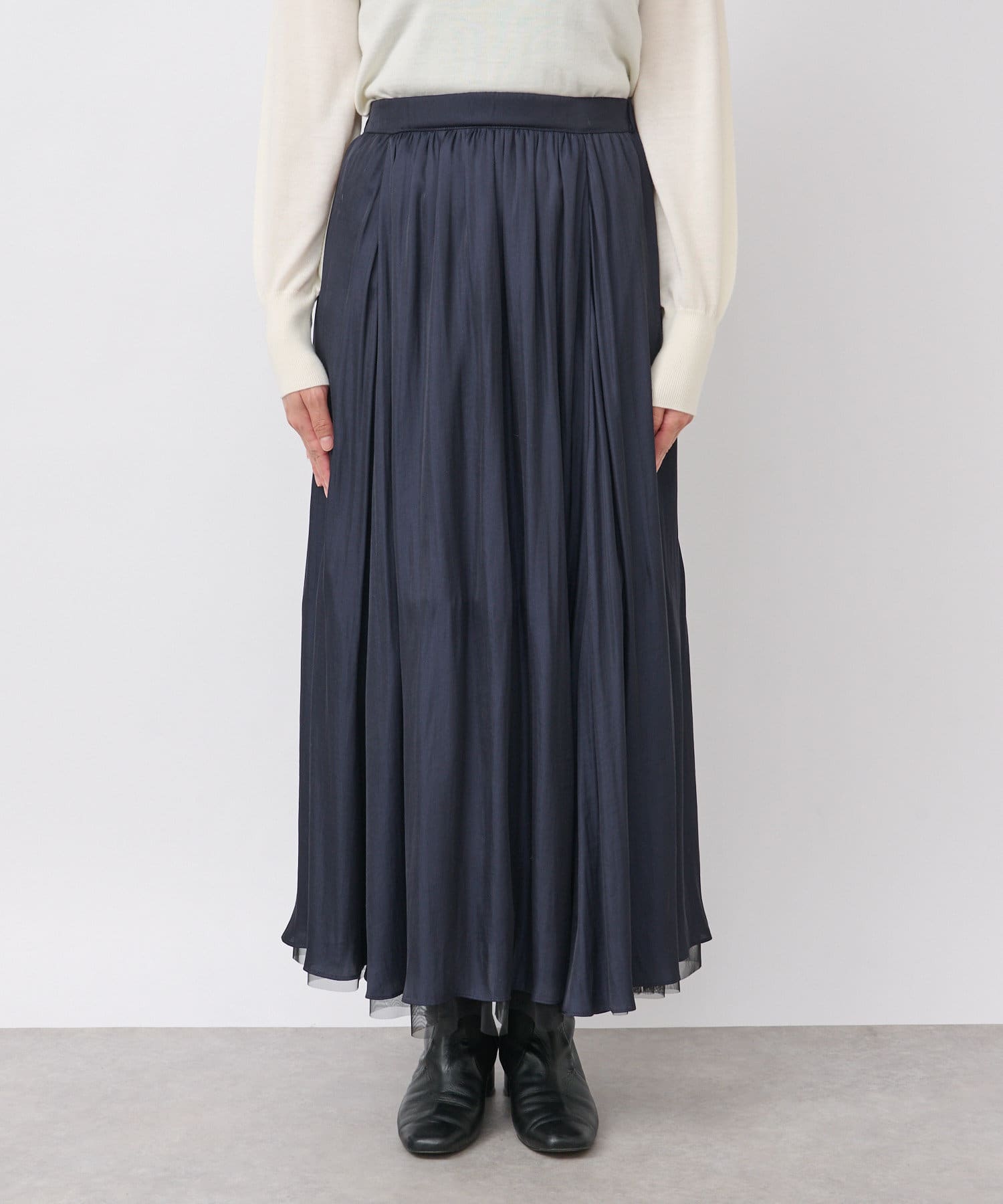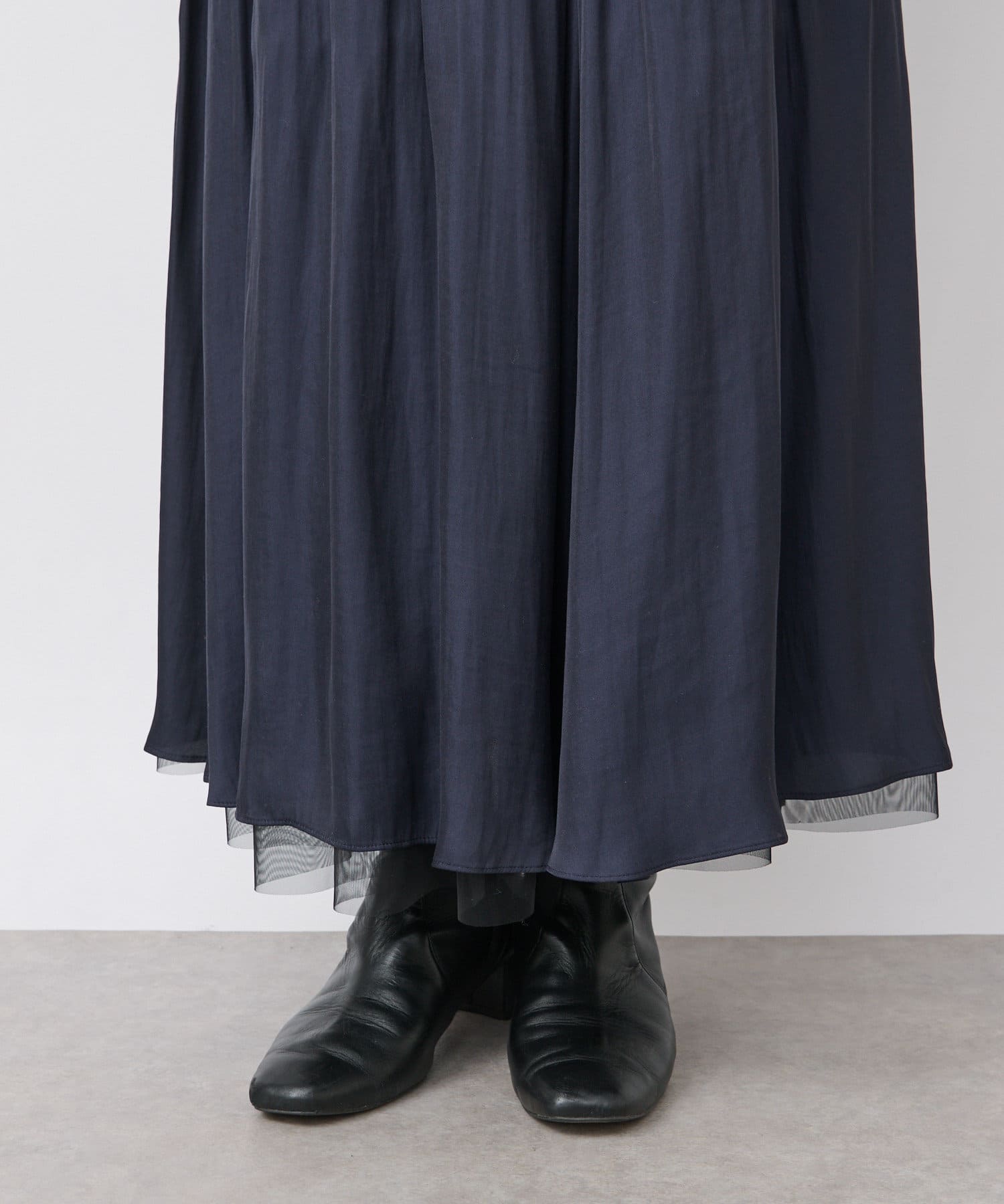 2段に分かれたティアードシルエットのチュール面と、ツヤ感のきれいなサテン面をそれぞれリバーシブルで着れるスカート。