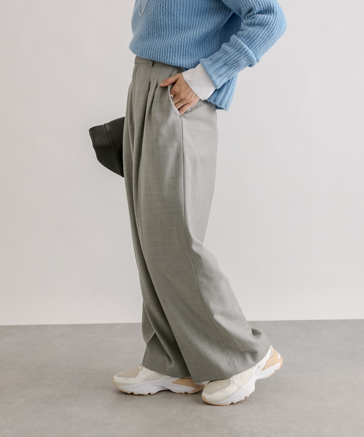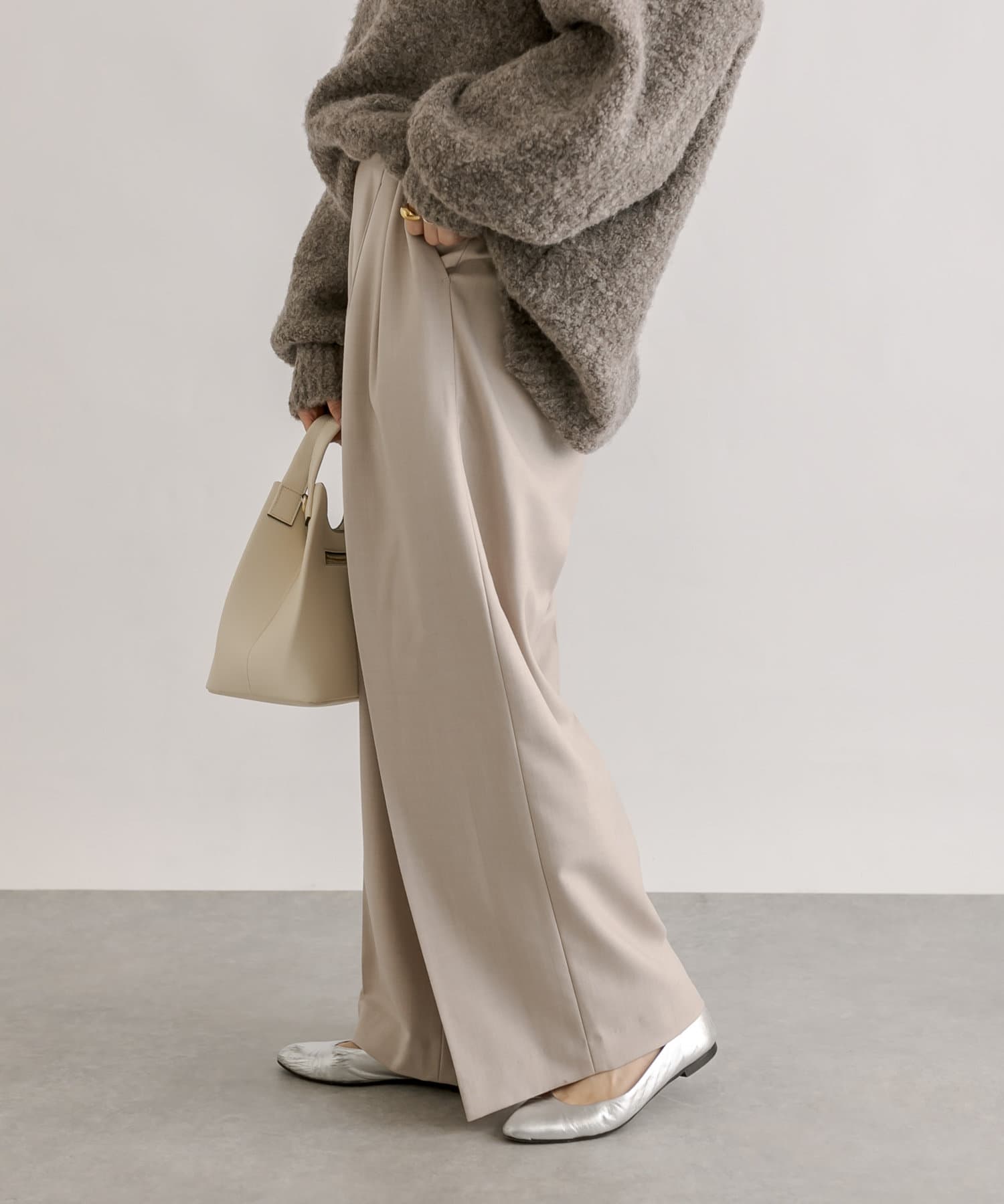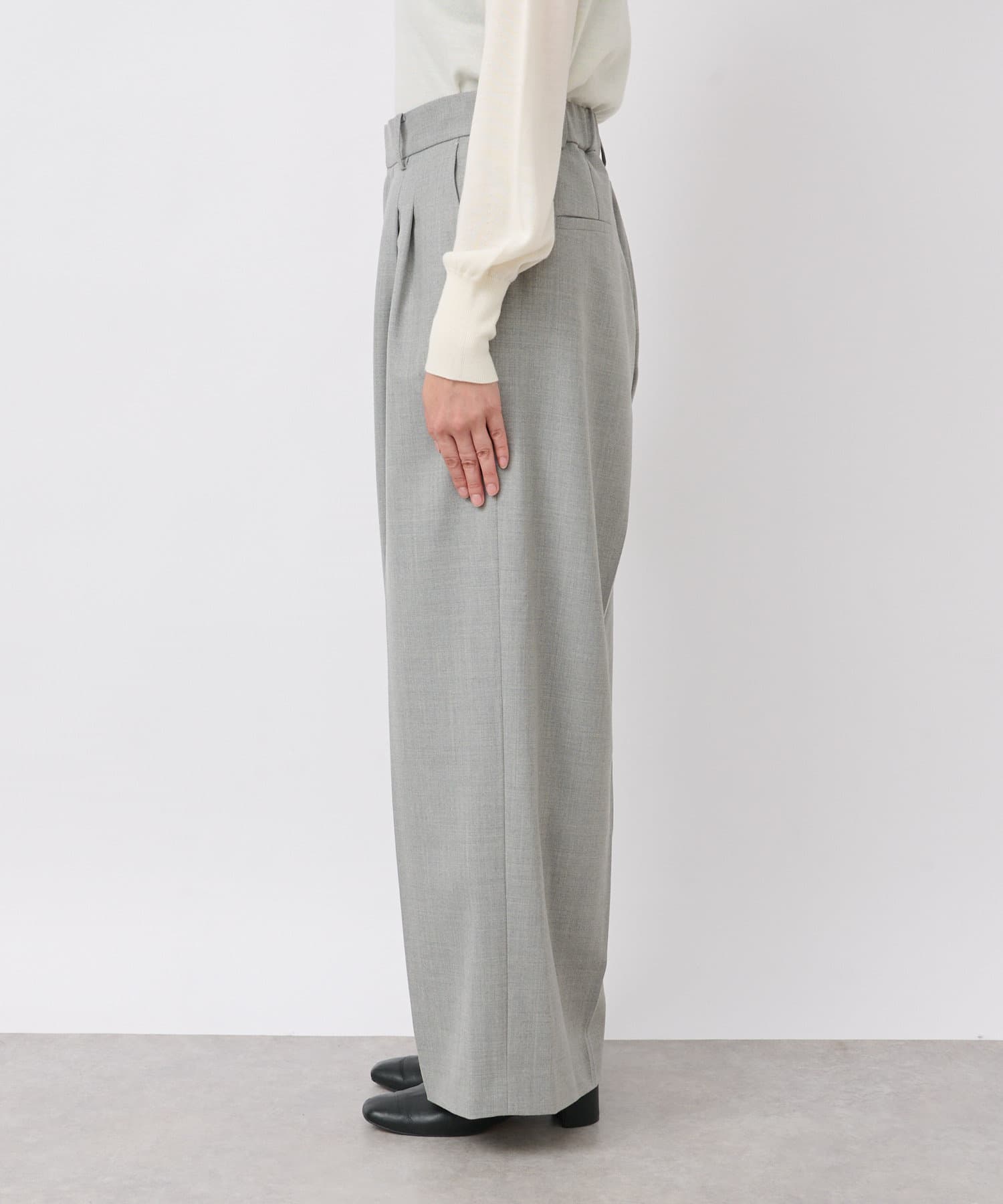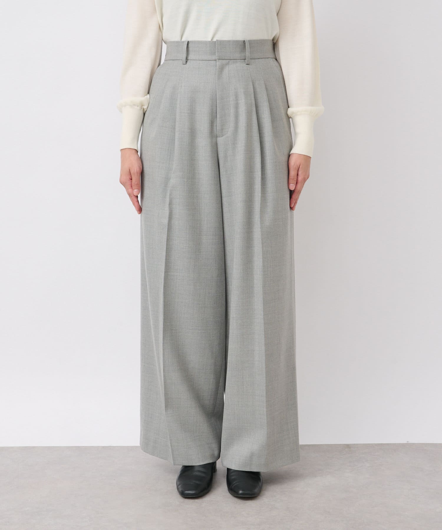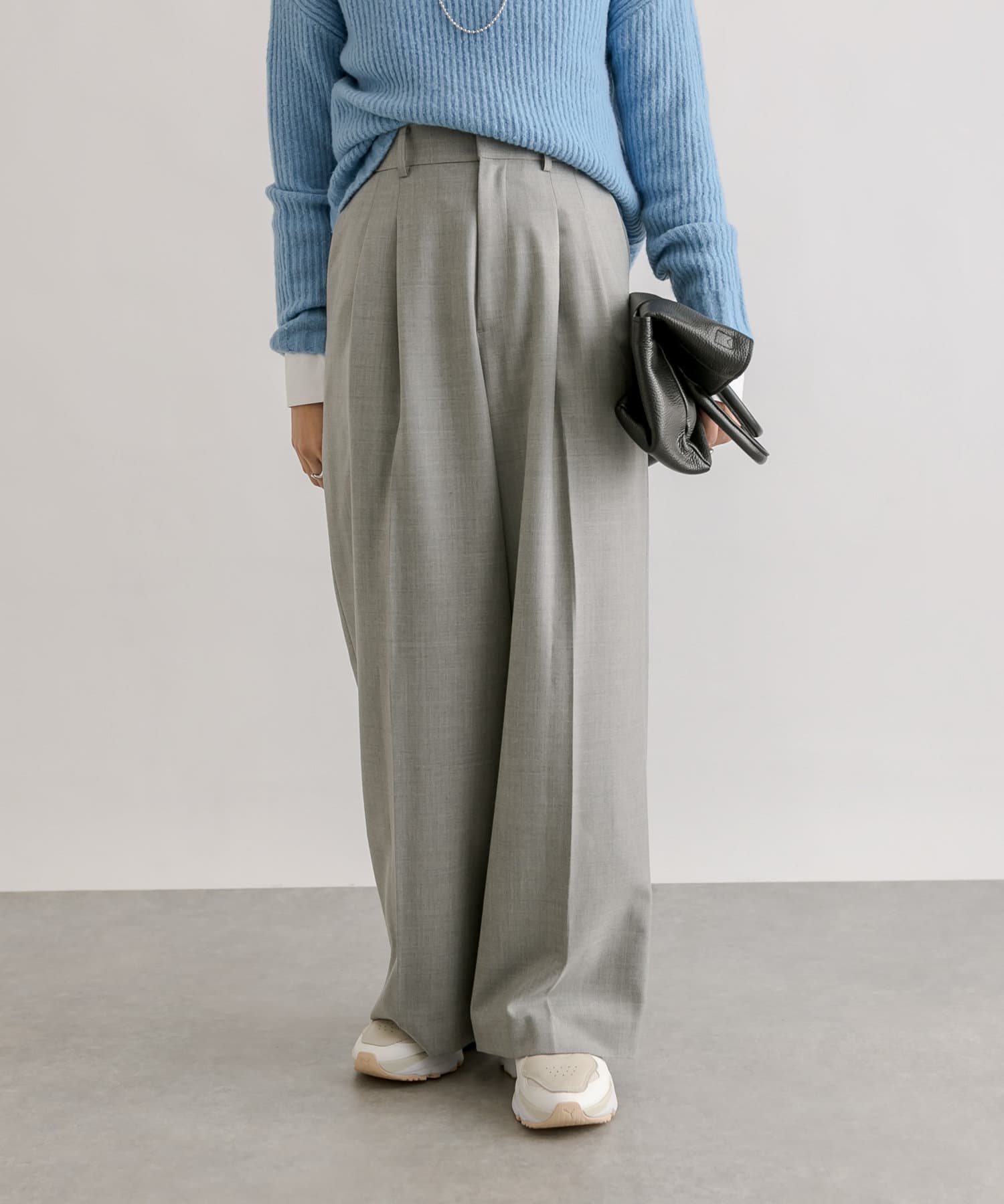 少し太めの2タックを入れたワイドシルエット。センタープレスも入ったマニッシュな印象が今年らしい雰囲気に。