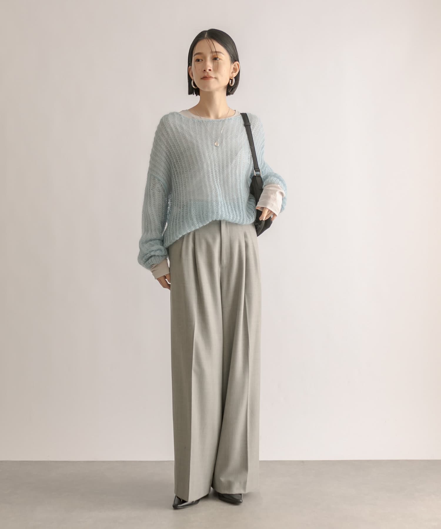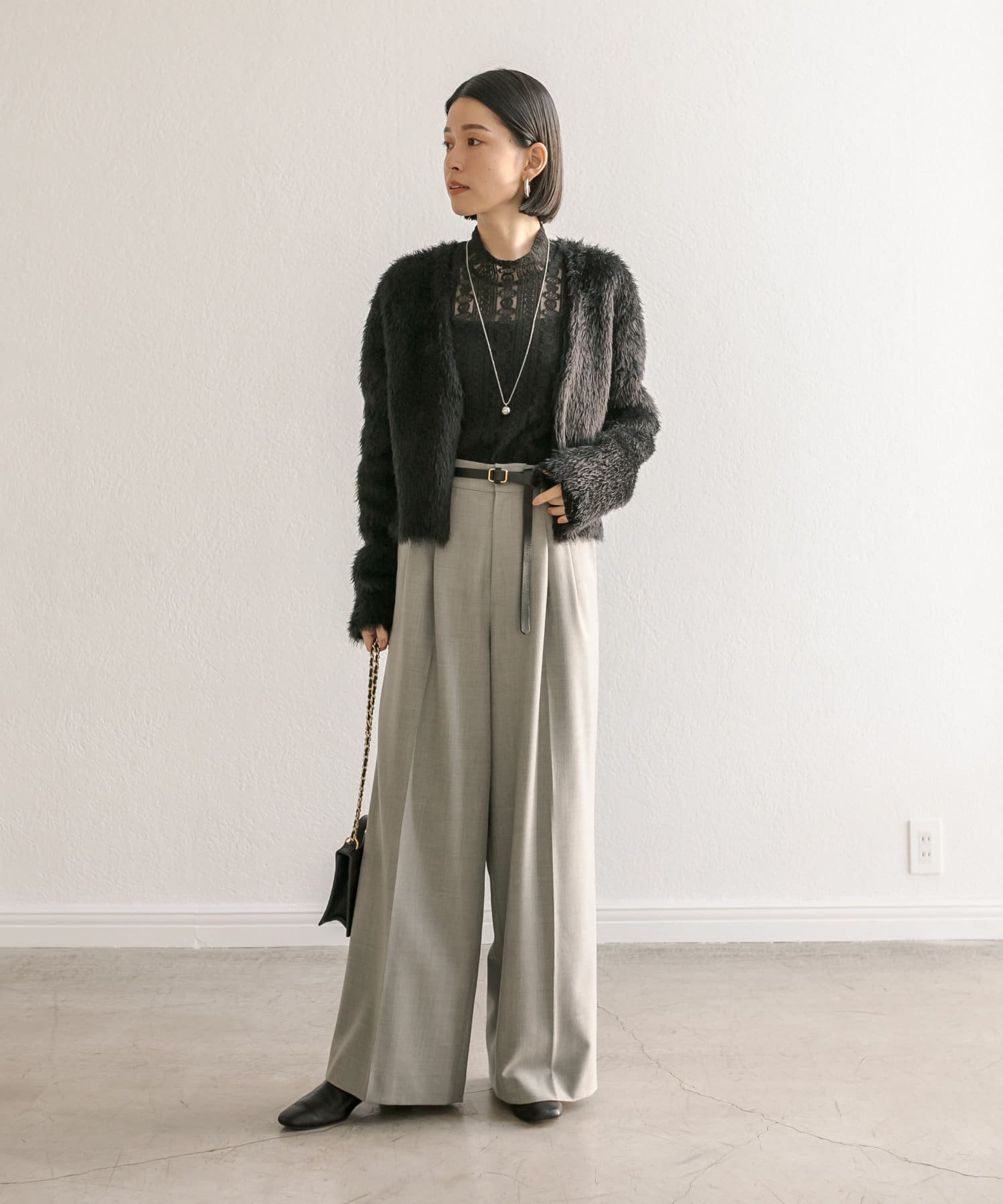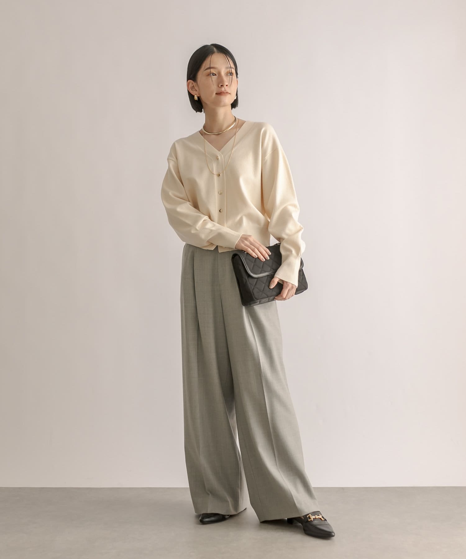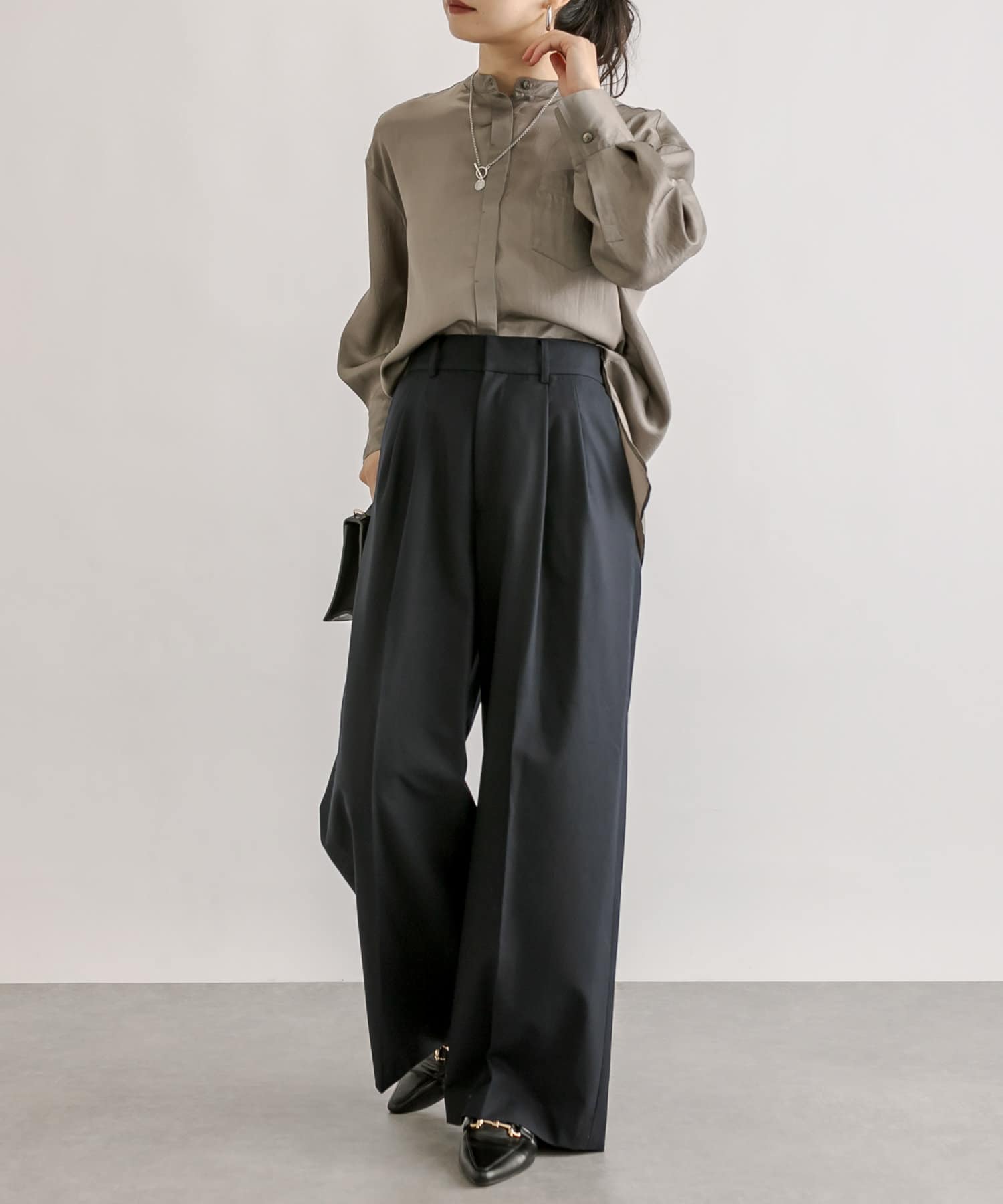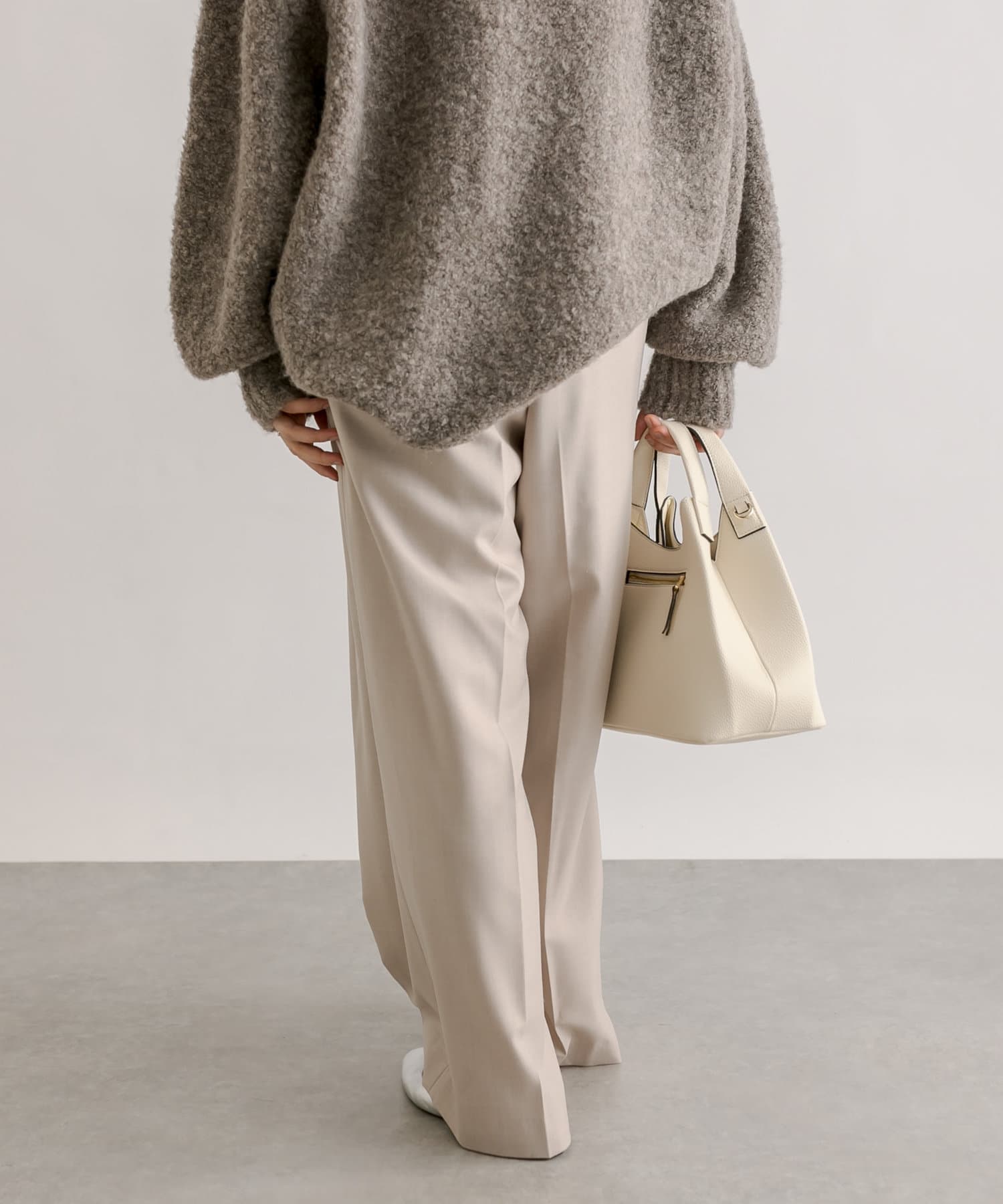 少し太めの2タックを入れたワイドシルエット。センタープレスも入ったマニッシュな印象が今年らしい雰囲気に。