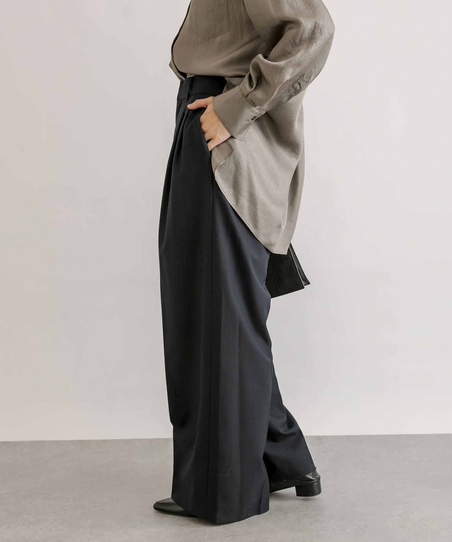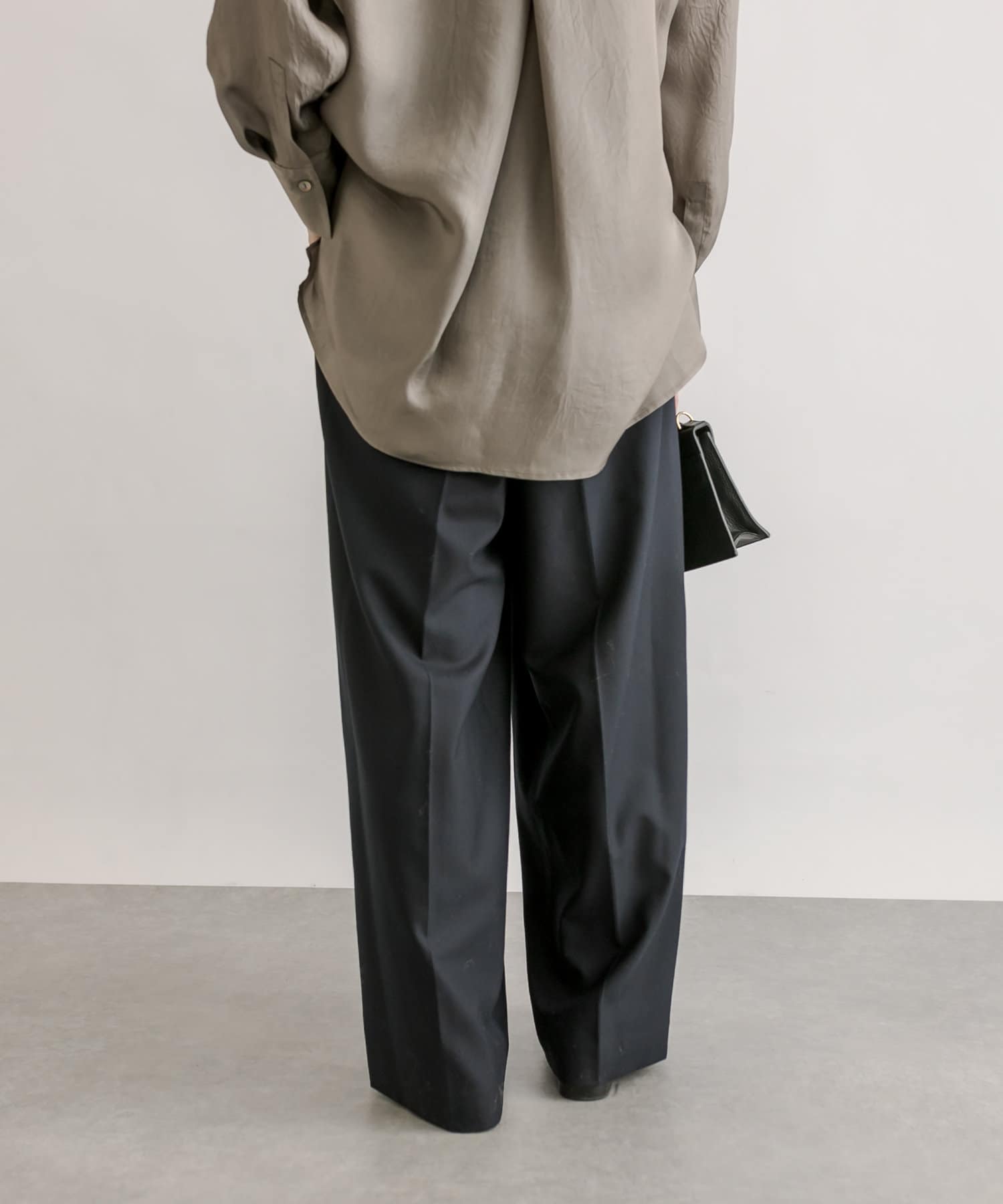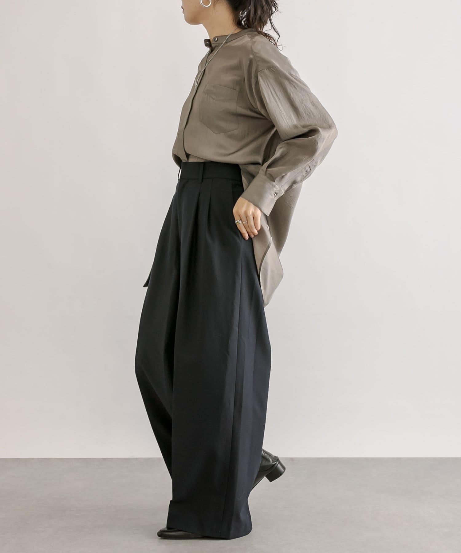裾巾はしっかりありますが、程よく落ち感のあるシルエットでかっこよくこなれた印象で履いていただけます。