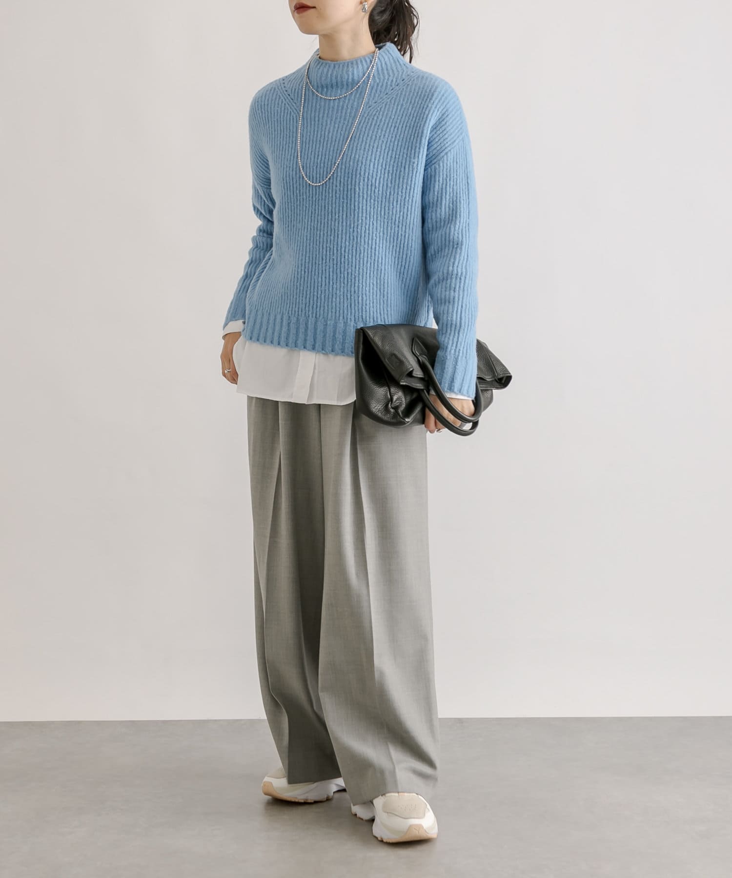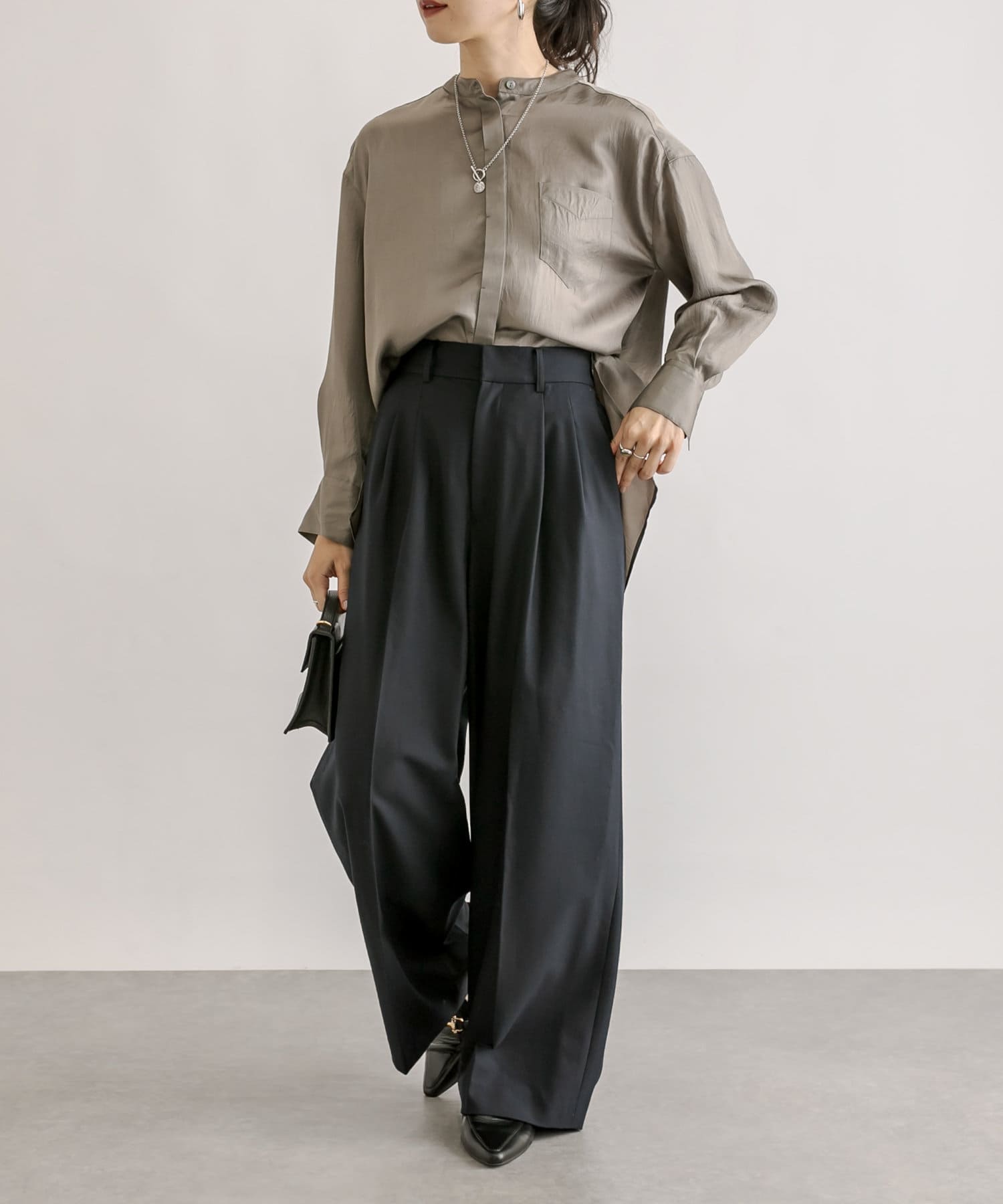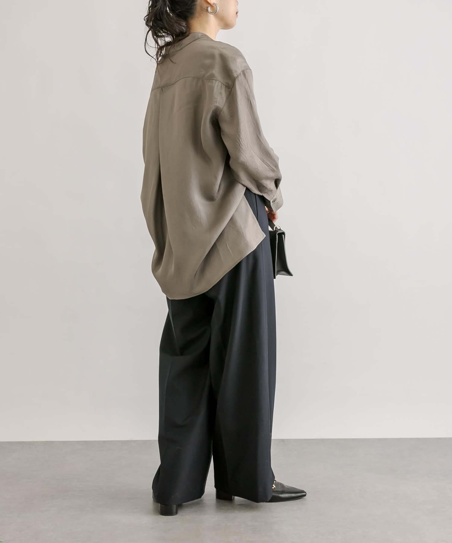 裾巾はしっかりありますが、程よく落ち感のあるシルエットでかっこよくこなれた印象で履いていただけます。