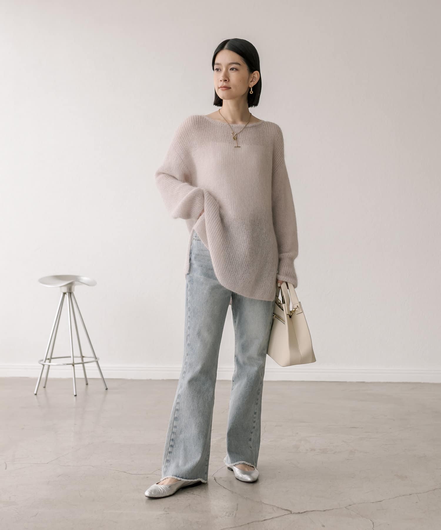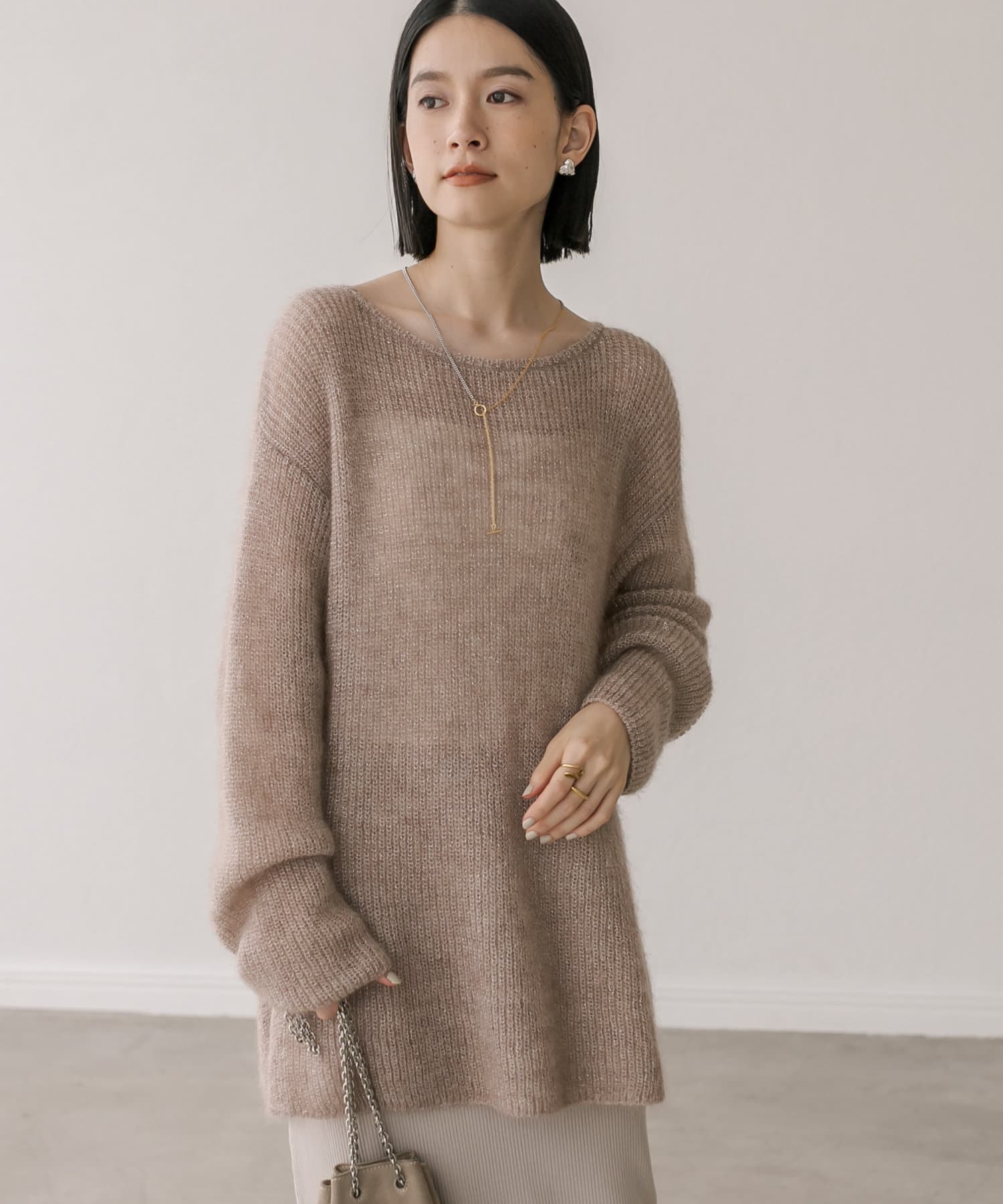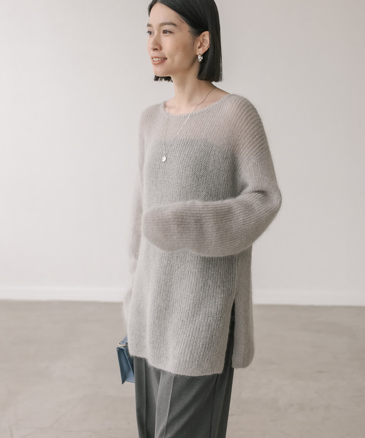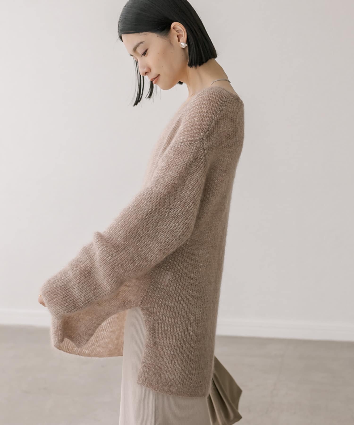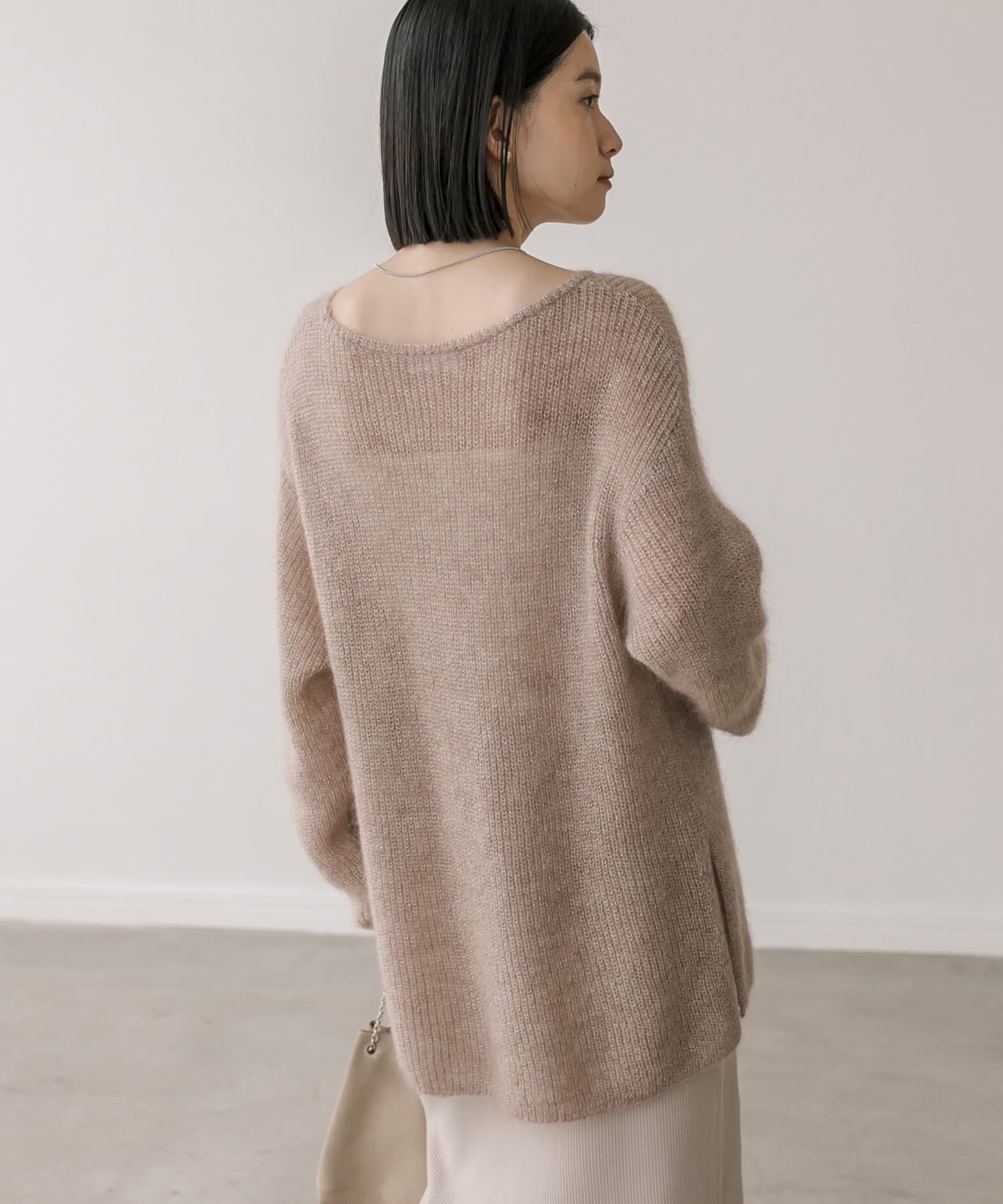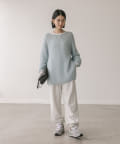 緩めに編み立てた編地の持つ柔らかな雰囲気に、煌めきを纏わせたニュアンスのあるプルオーバーです。