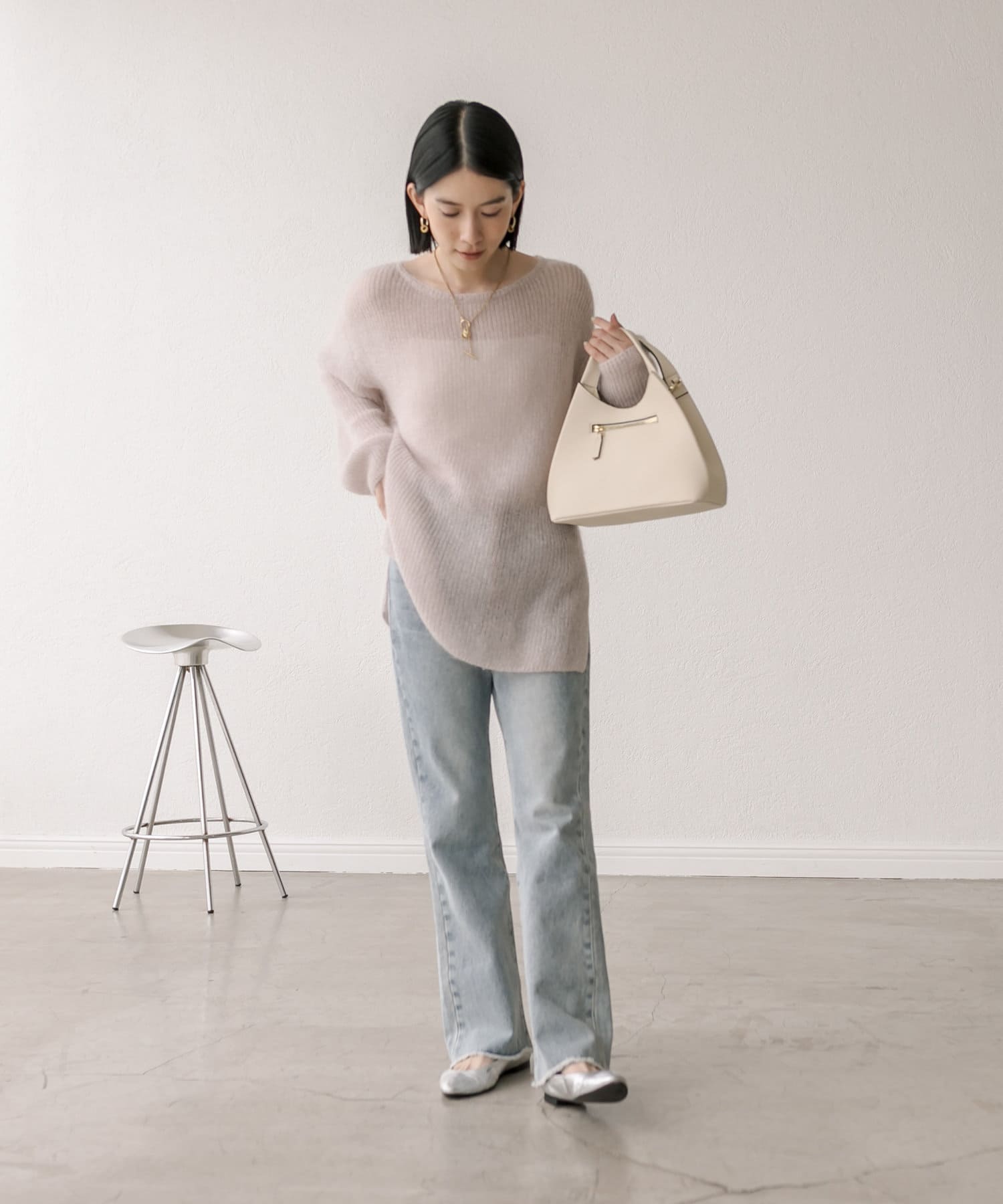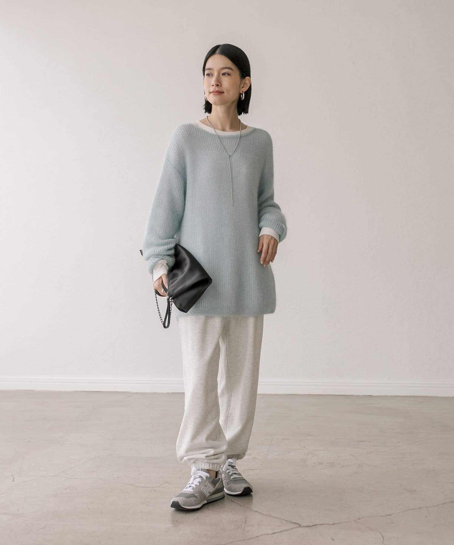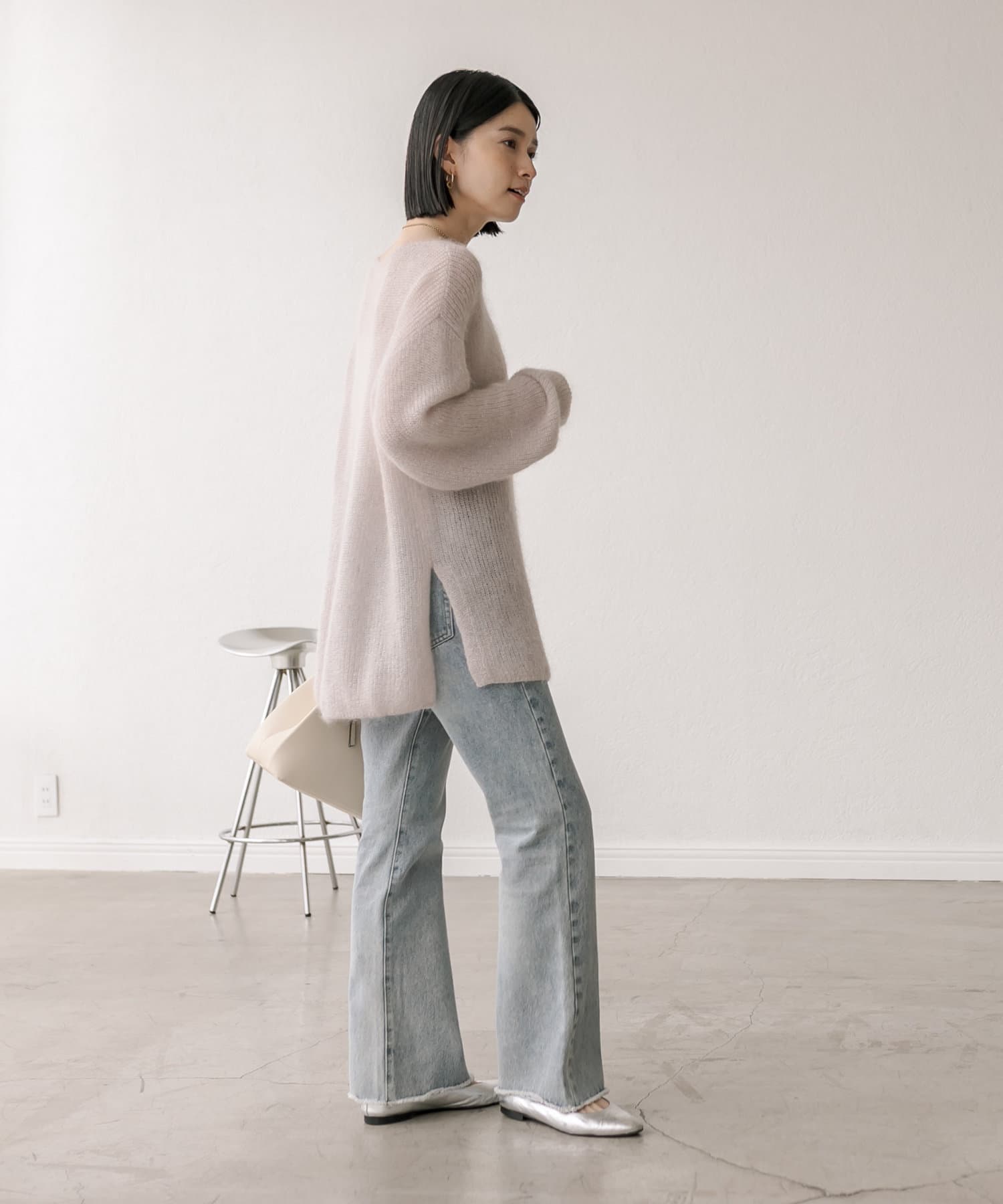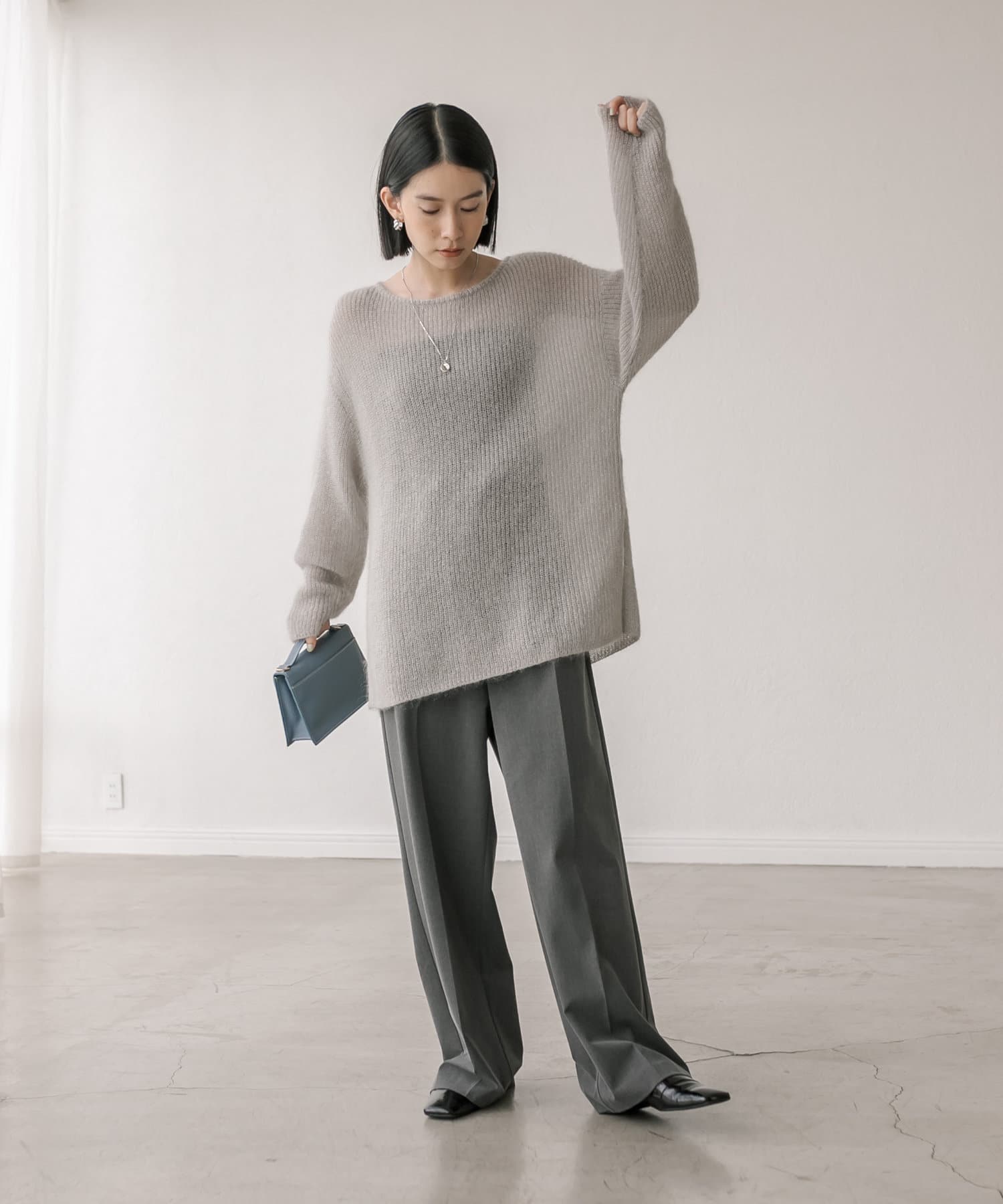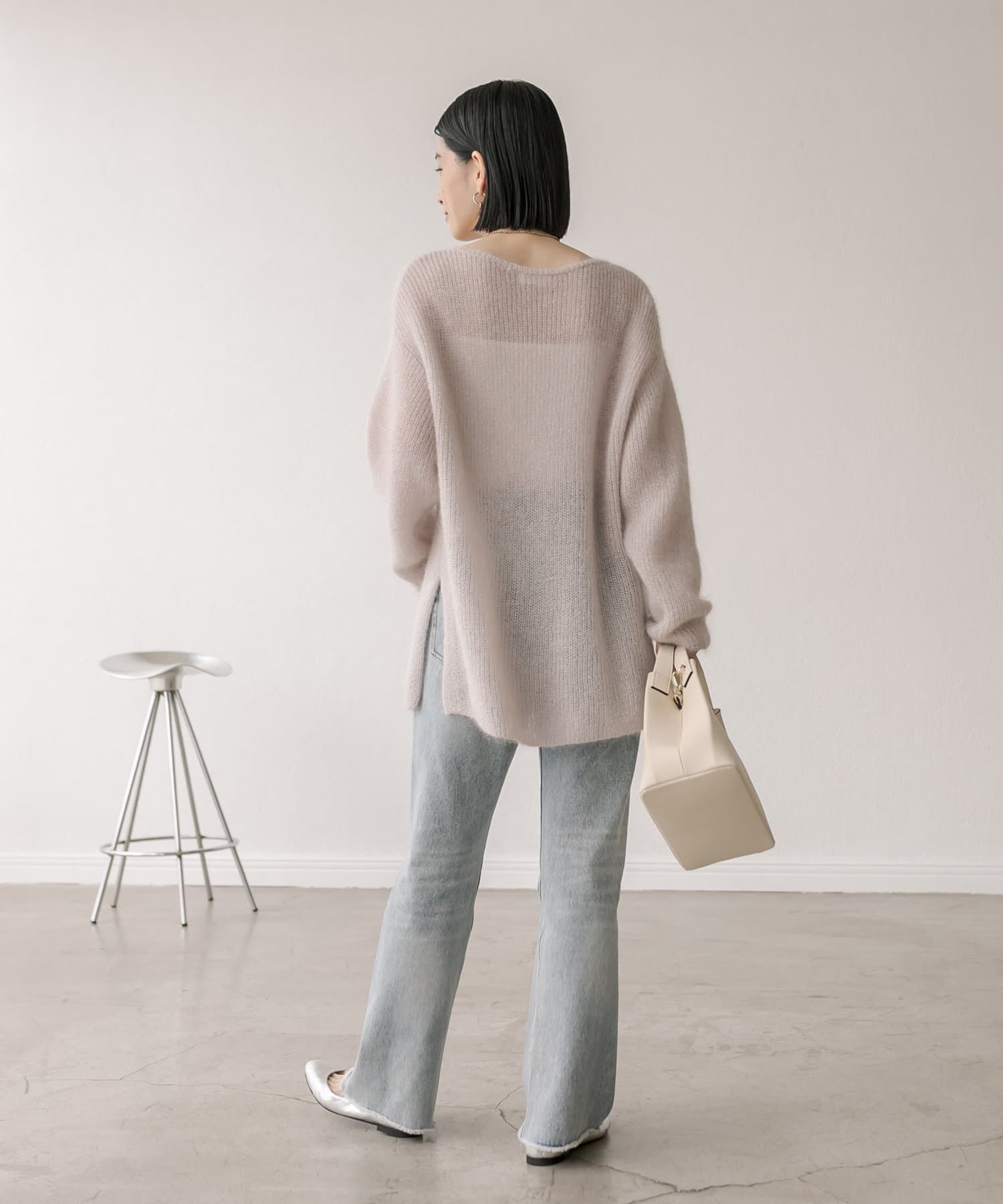 緩めに編み立てた編地の持つ柔らかな雰囲気に、煌めきを纏わせたニュアンスのあるプルオーバーです。