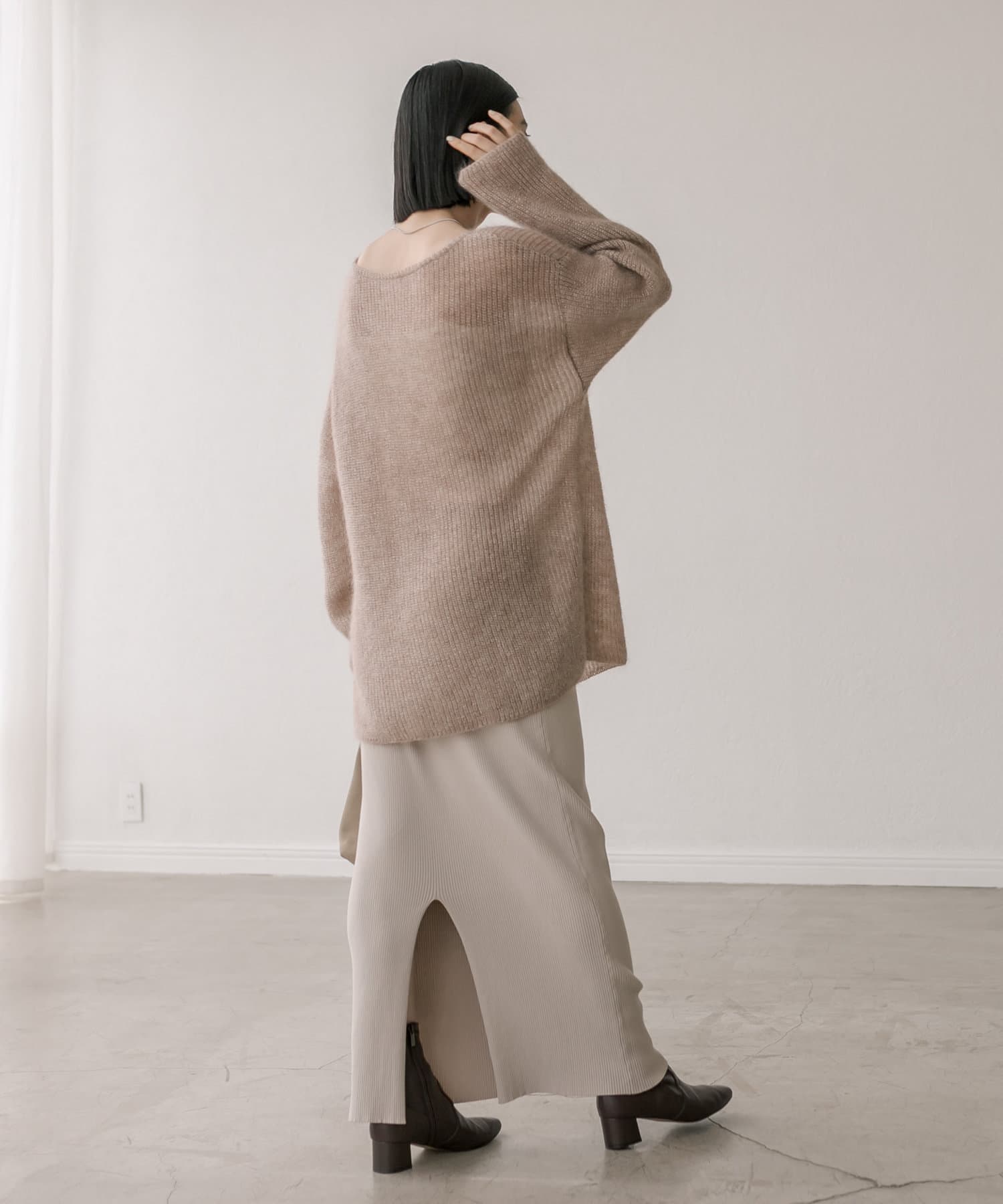 デコルテを美しく見せるボートネック、ゆるっとしたサイズ感など、シルエットにこだわった1枚。