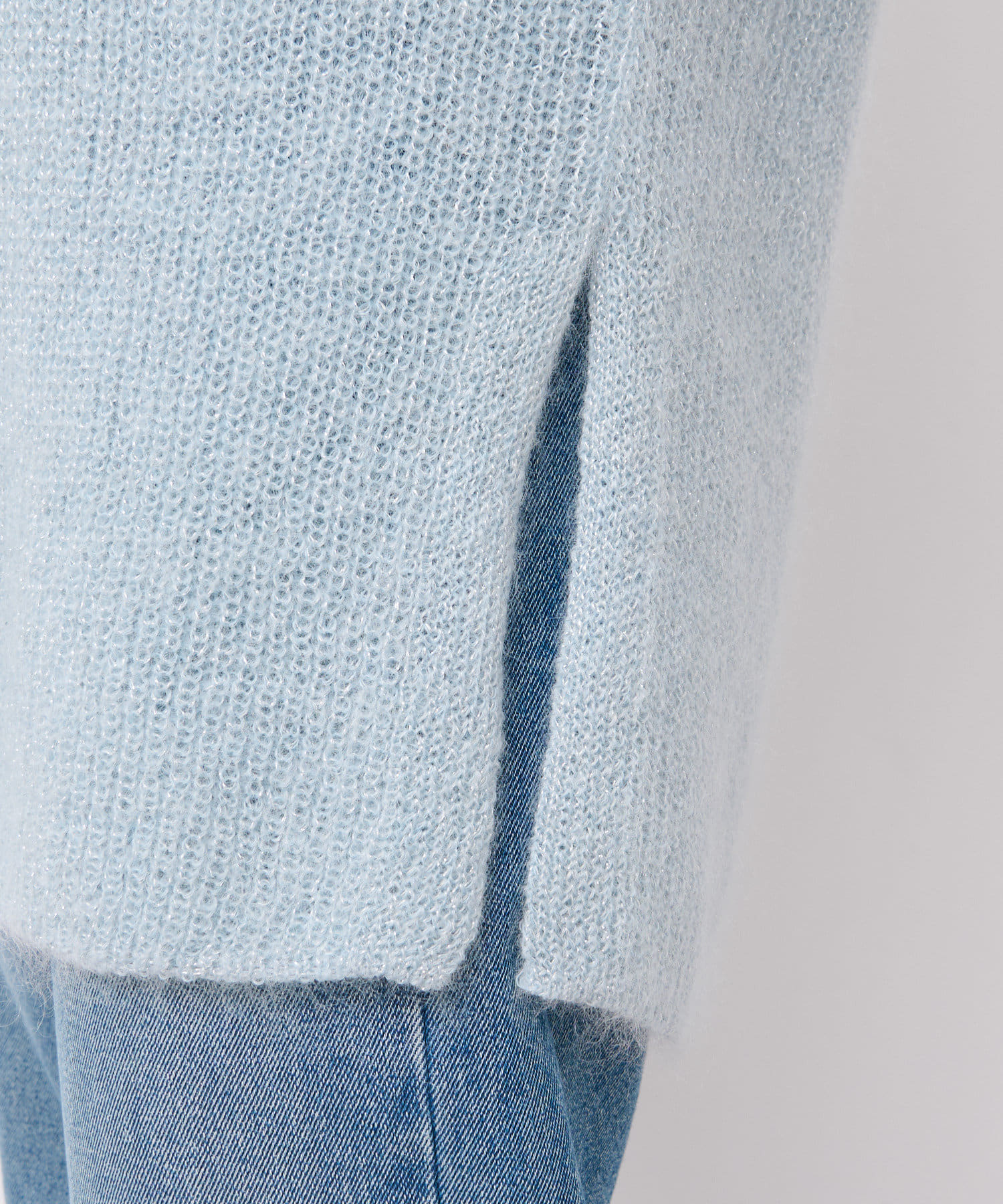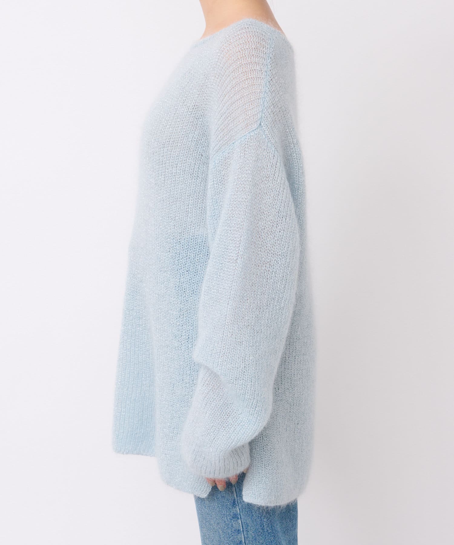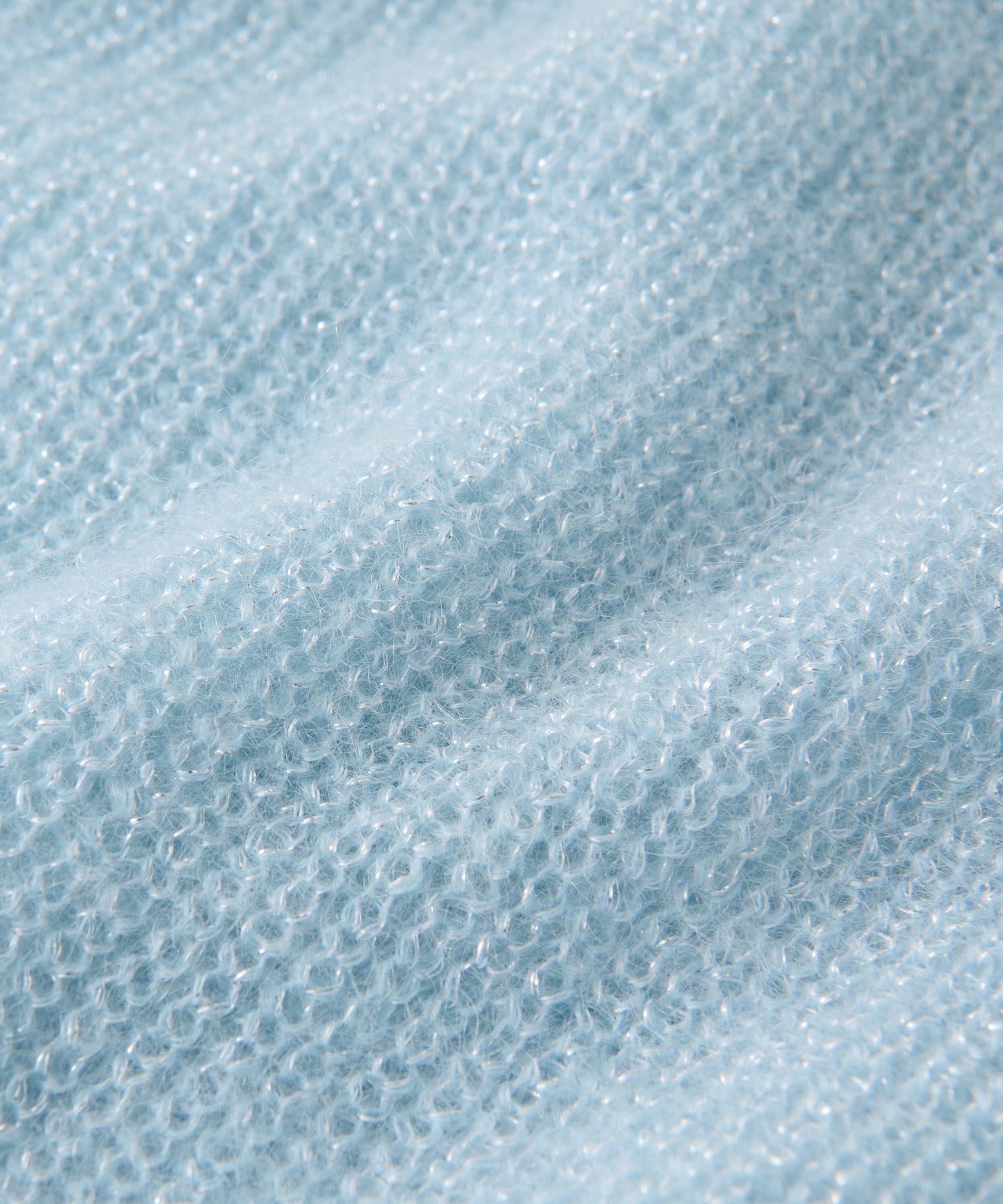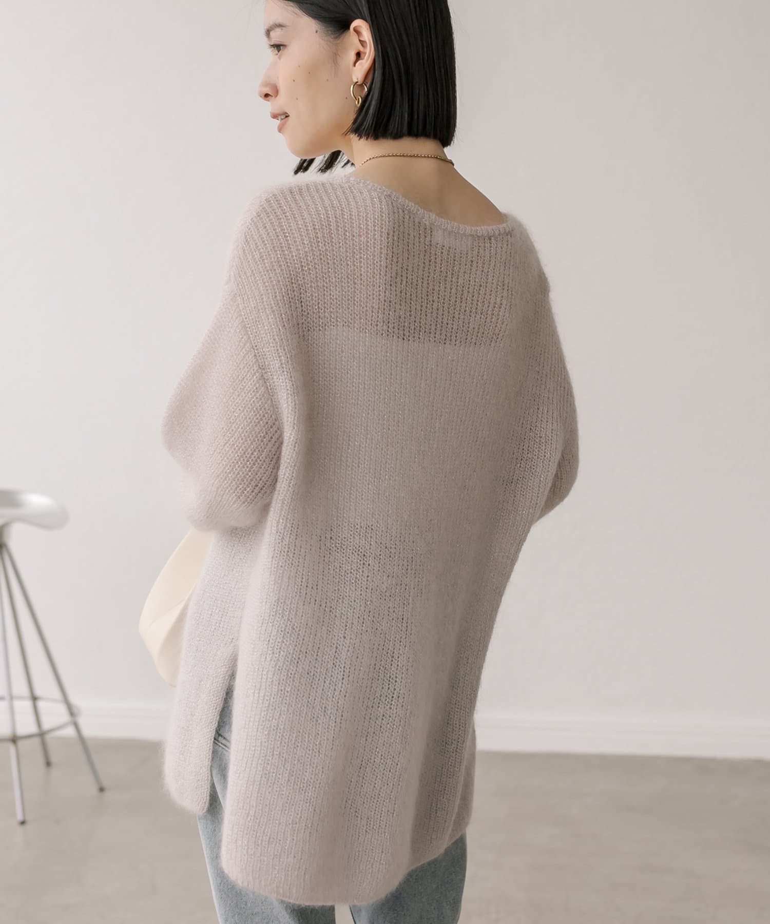 モヘア混のふんわりとした糸に繊細なラメ糸をミックスしたシーズンムード漂うニット。