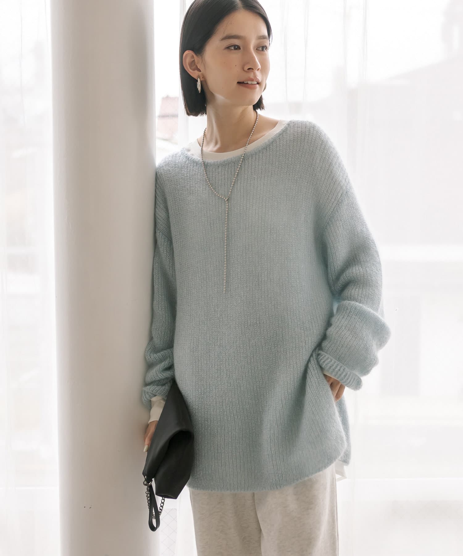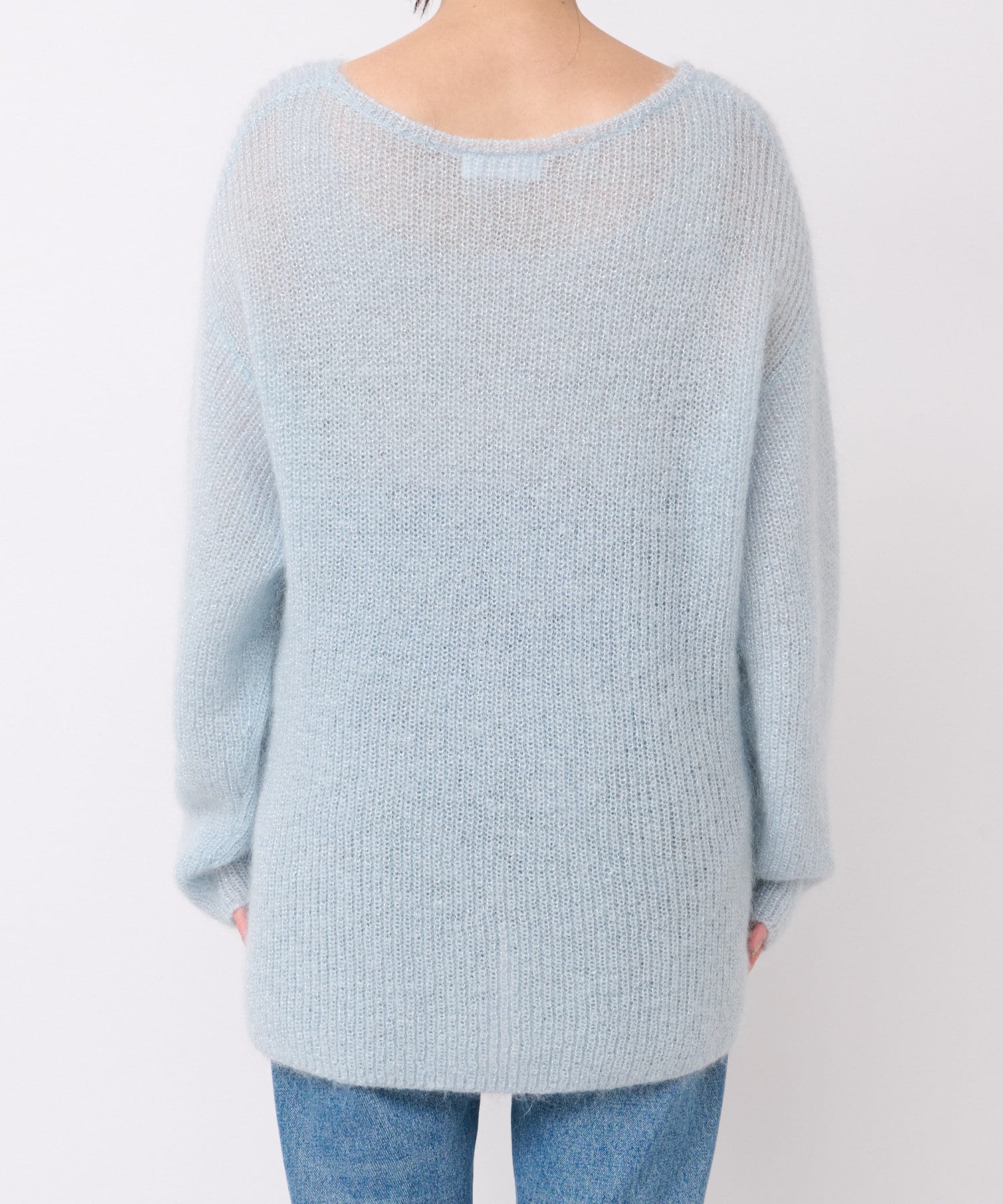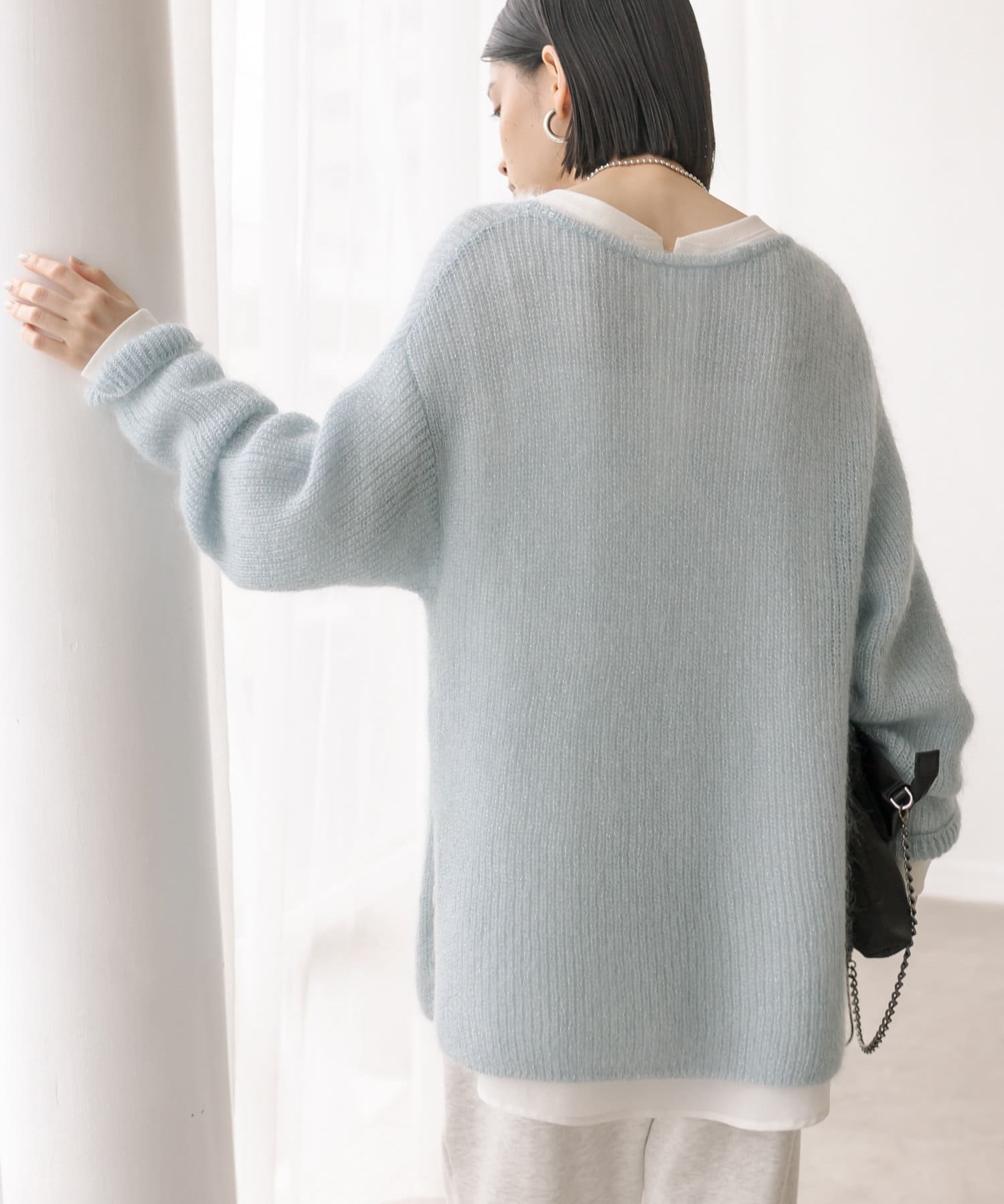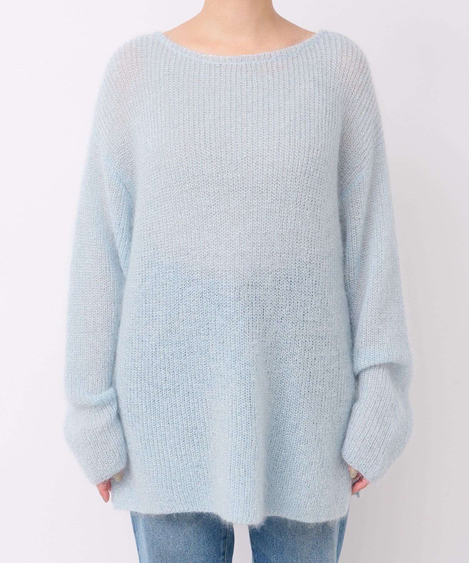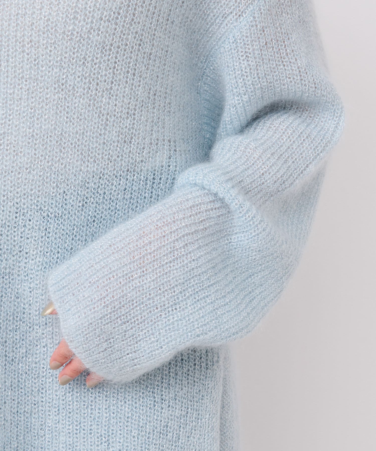 モヘア混のふんわりとした糸に繊細なラメ糸をミックスしたシーズンムード漂うニット。