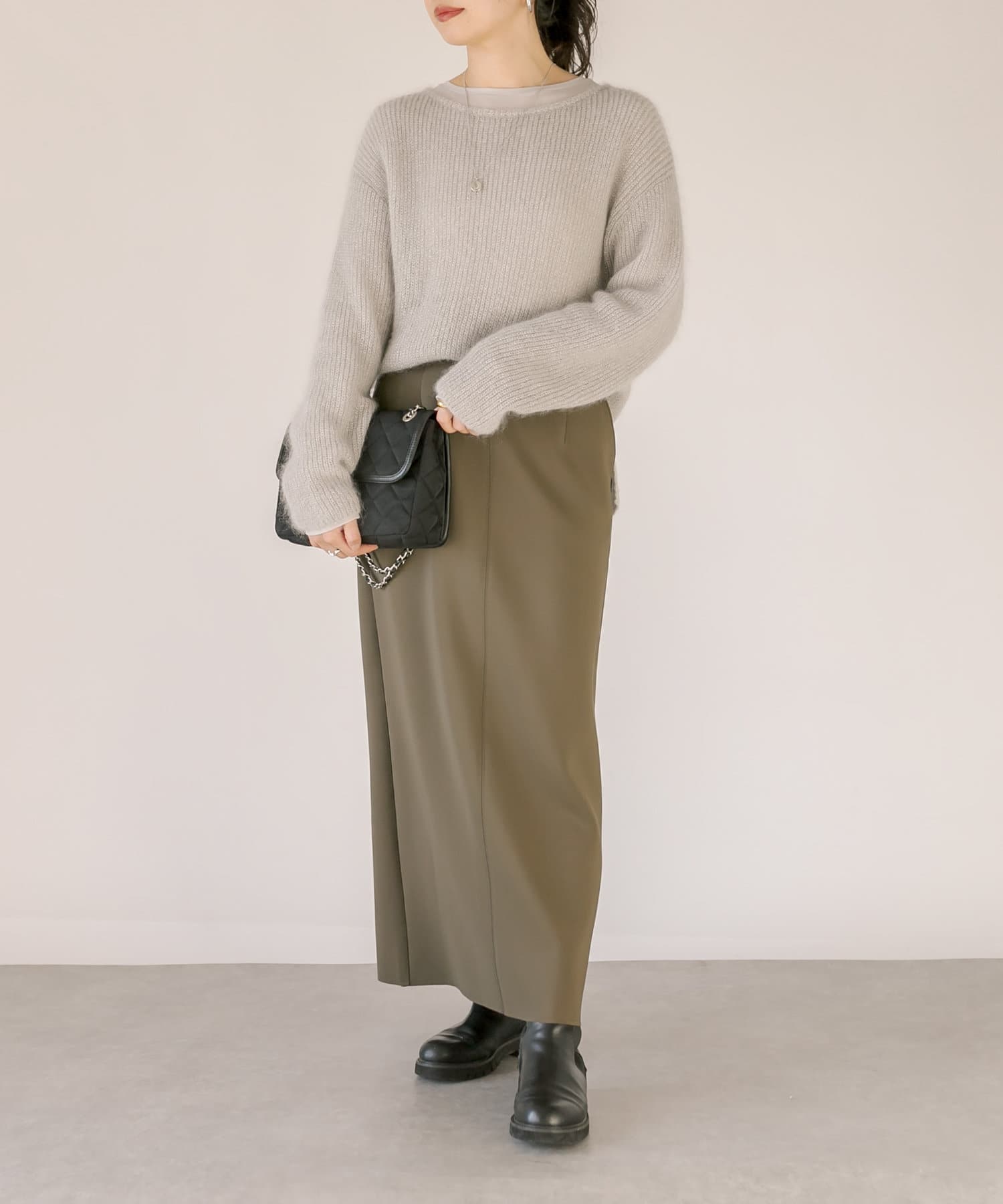 ※敏感肌の方は、ラメ糸が直接肌に触れることでチクチク感じる場合がございますので、その場合はインナーにカットソーなどを合わせていただくことをおすすめいたします。