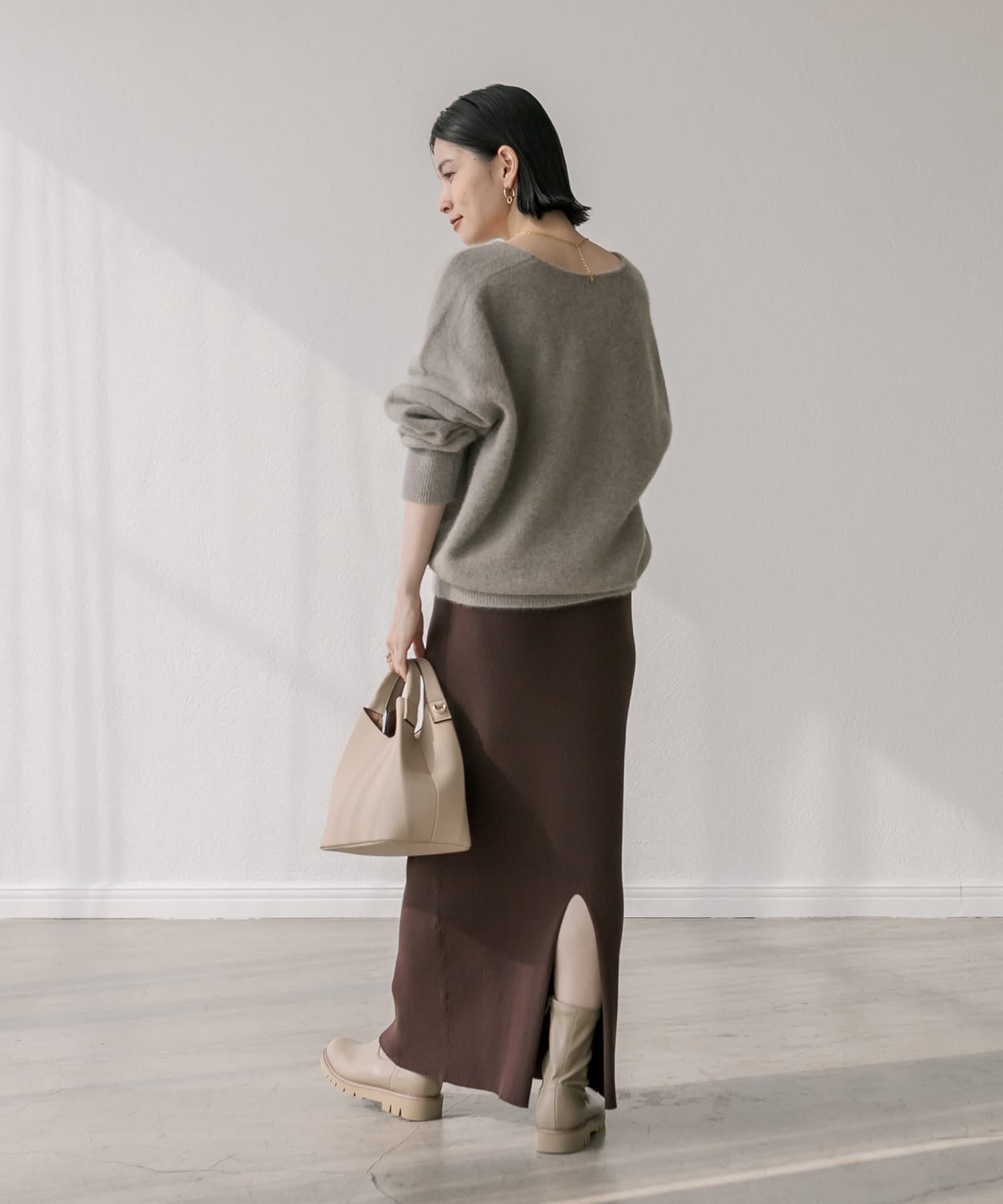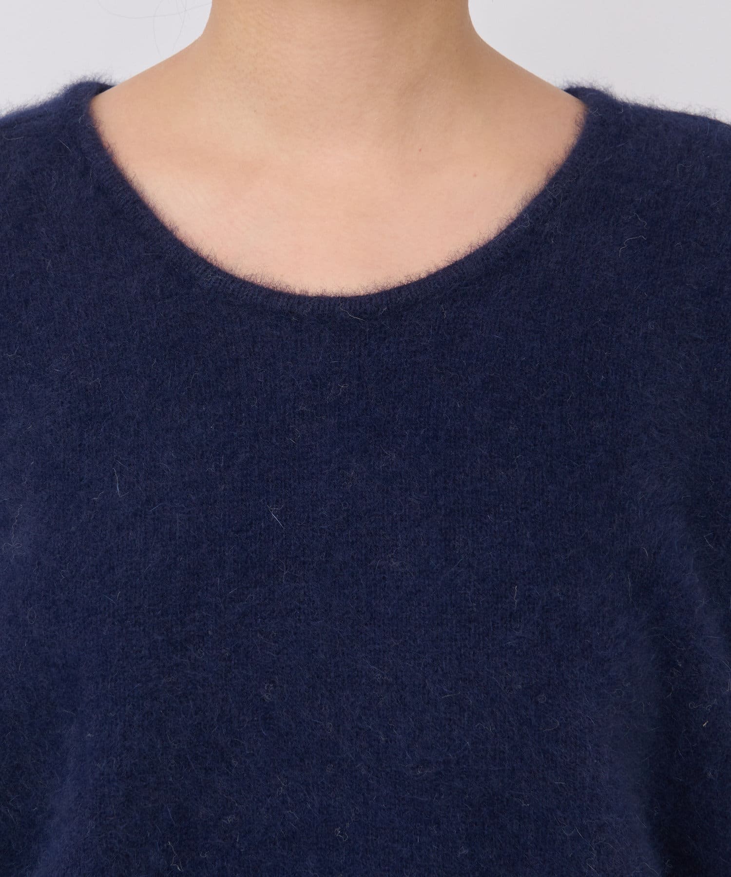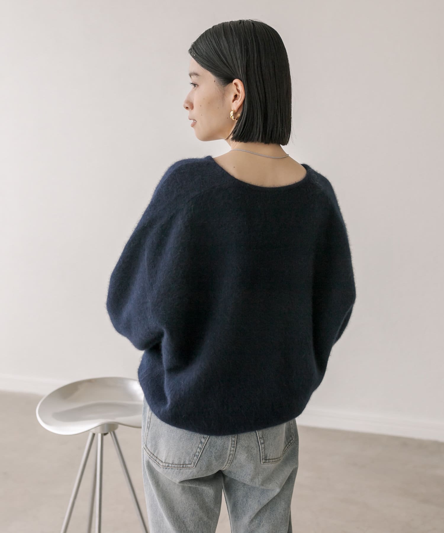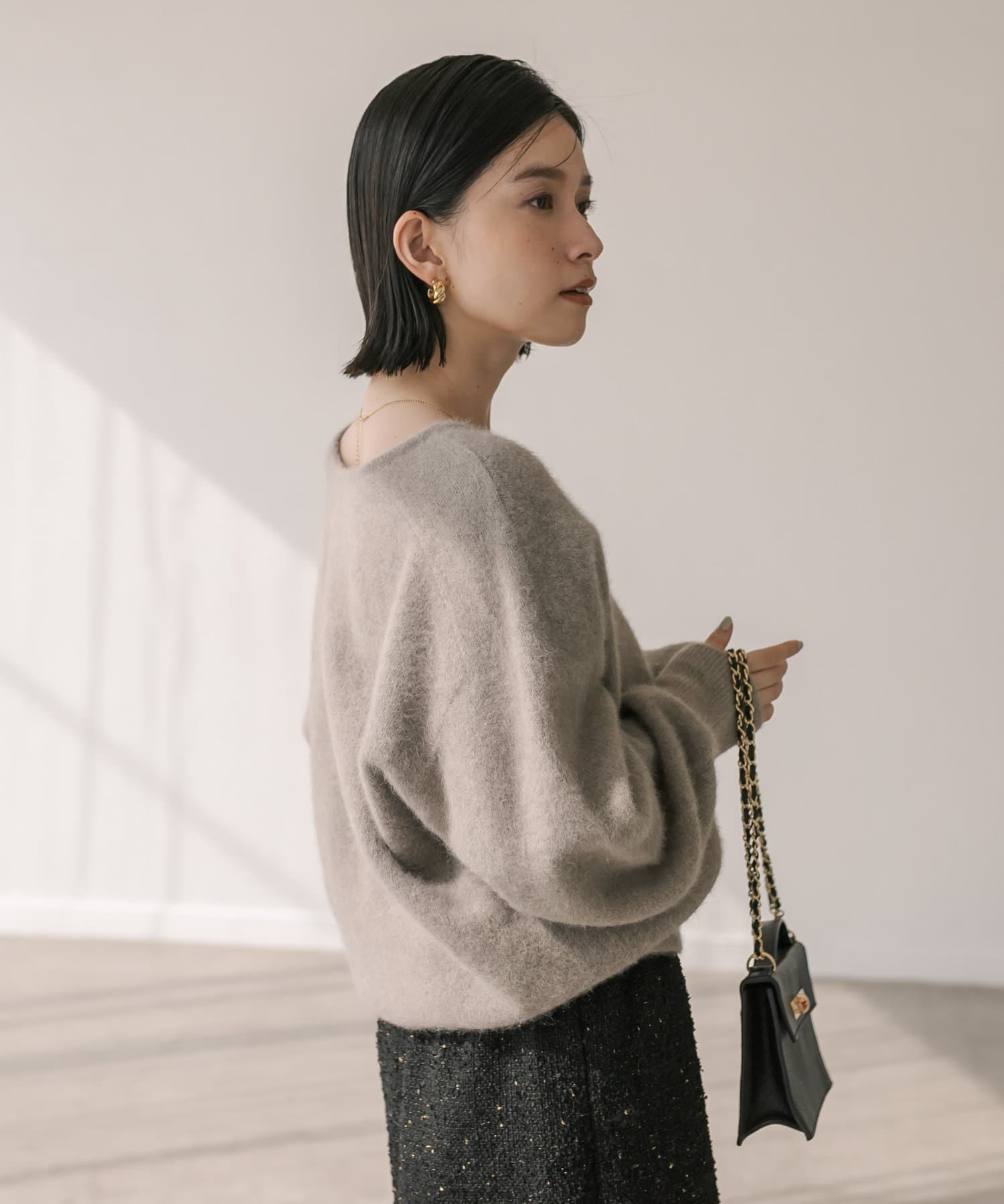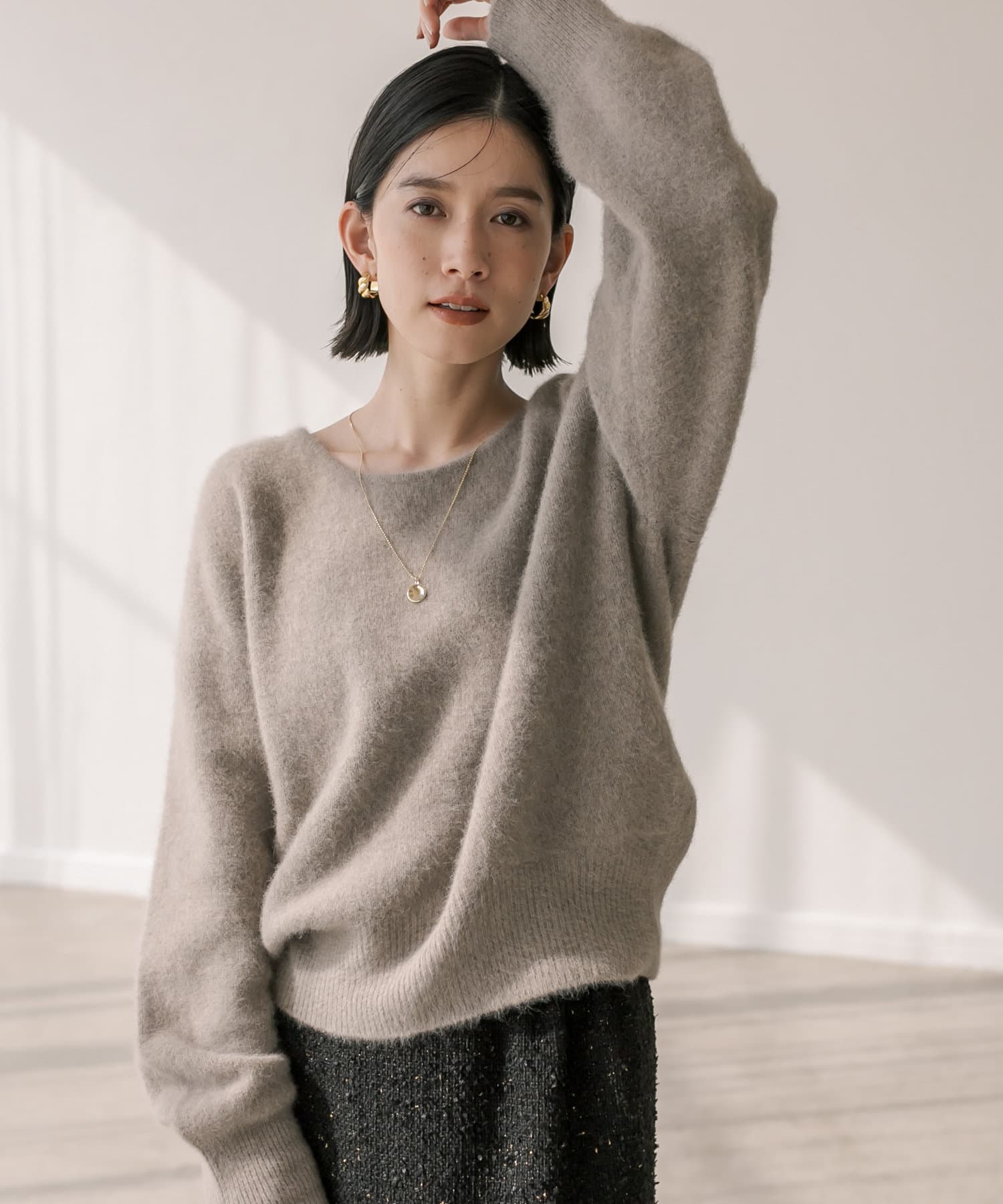 ※敏感肌の方は、ニットが直接肌に触れることでチクチク感じる場合がございますので、その場合はインナーにカットソーなどを合わせていただくことをおすすめいたします。