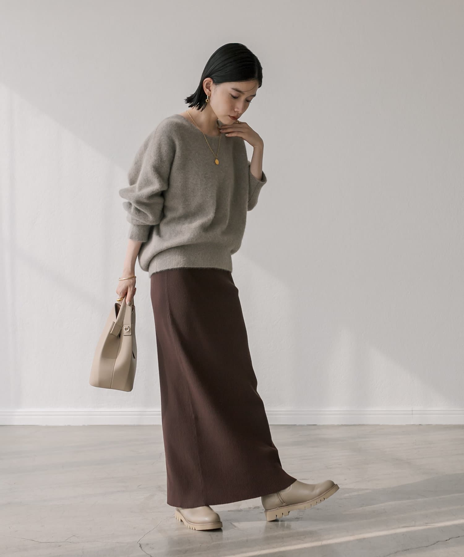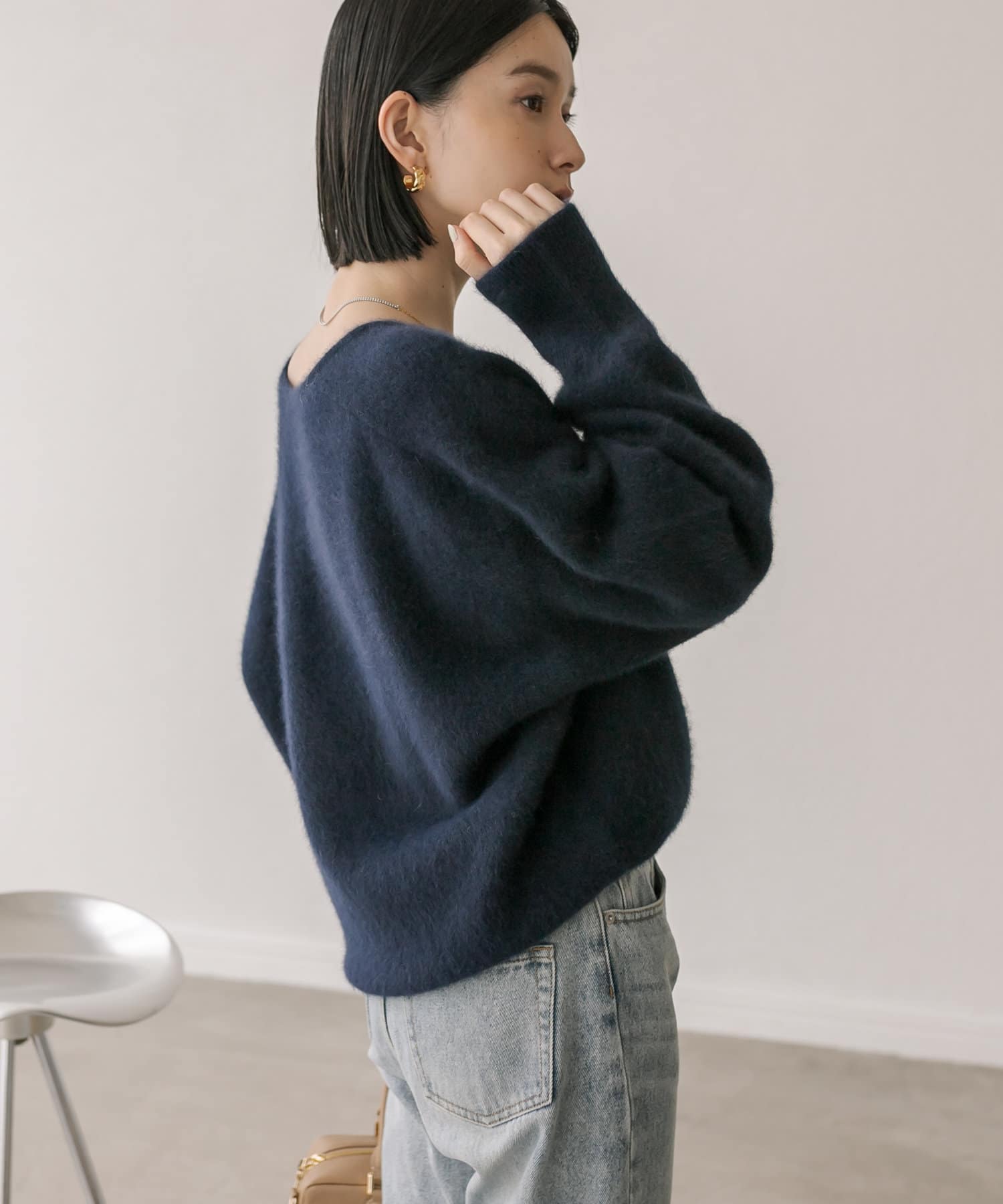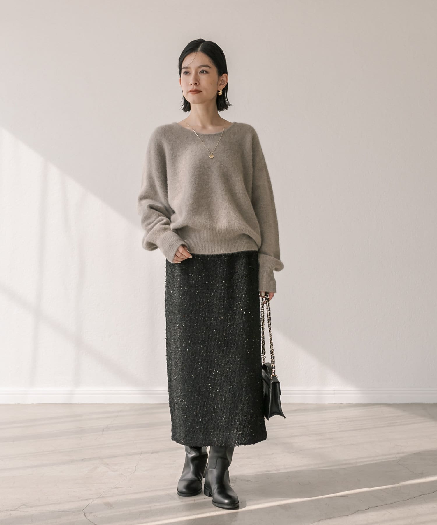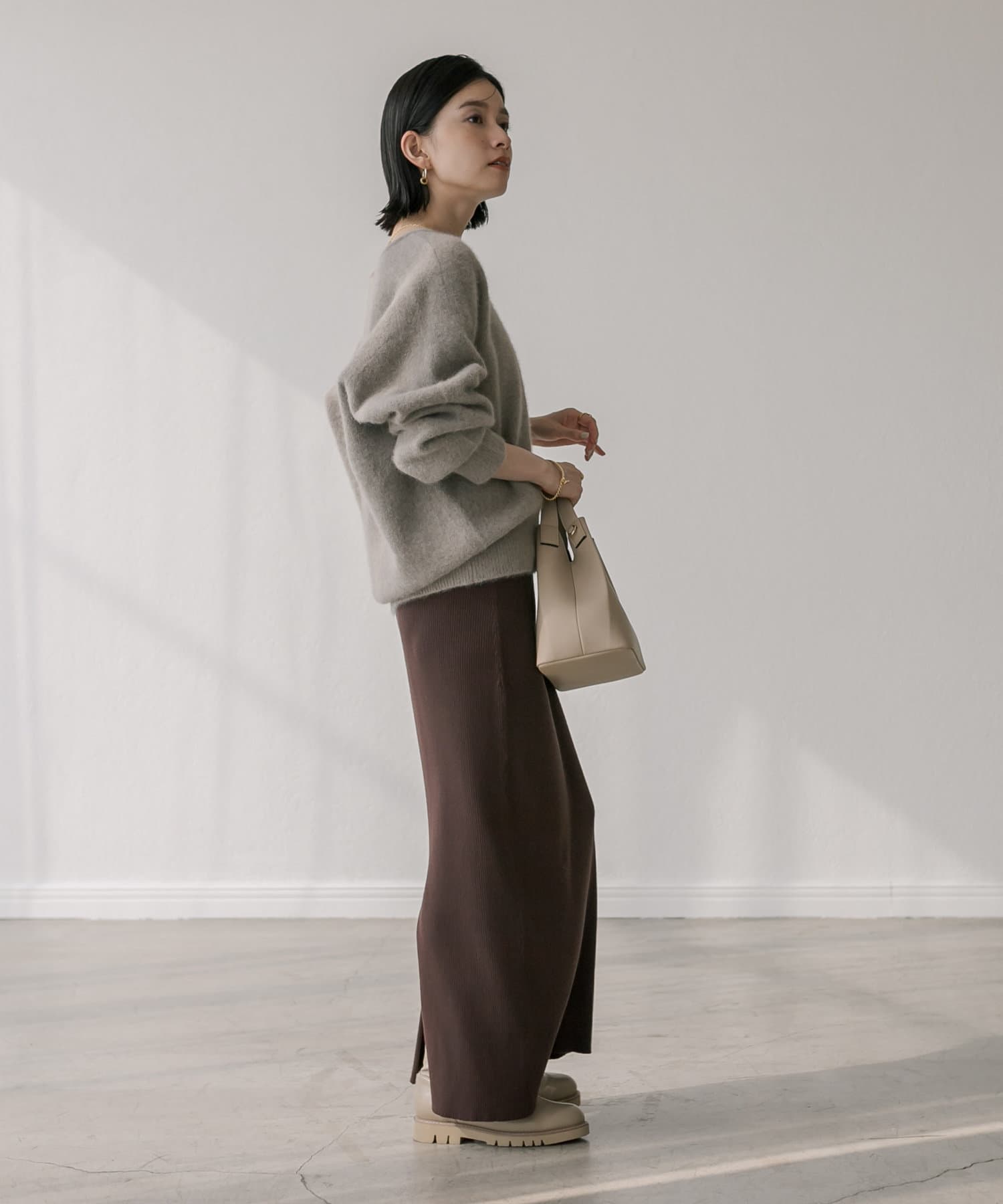 ※敏感肌の方は、ニットが直接肌に触れることでチクチク感じる場合がございますので、その場合はインナーにカットソーなどを合わせていただくことをおすすめいたします。