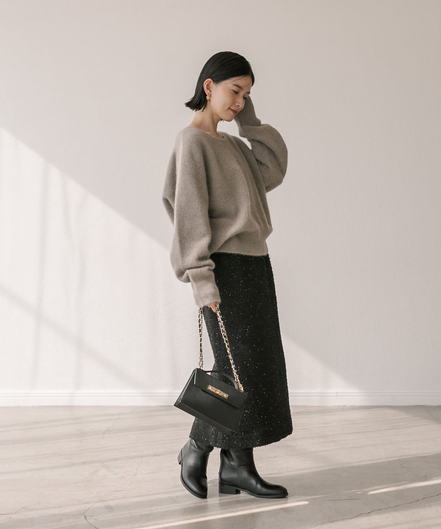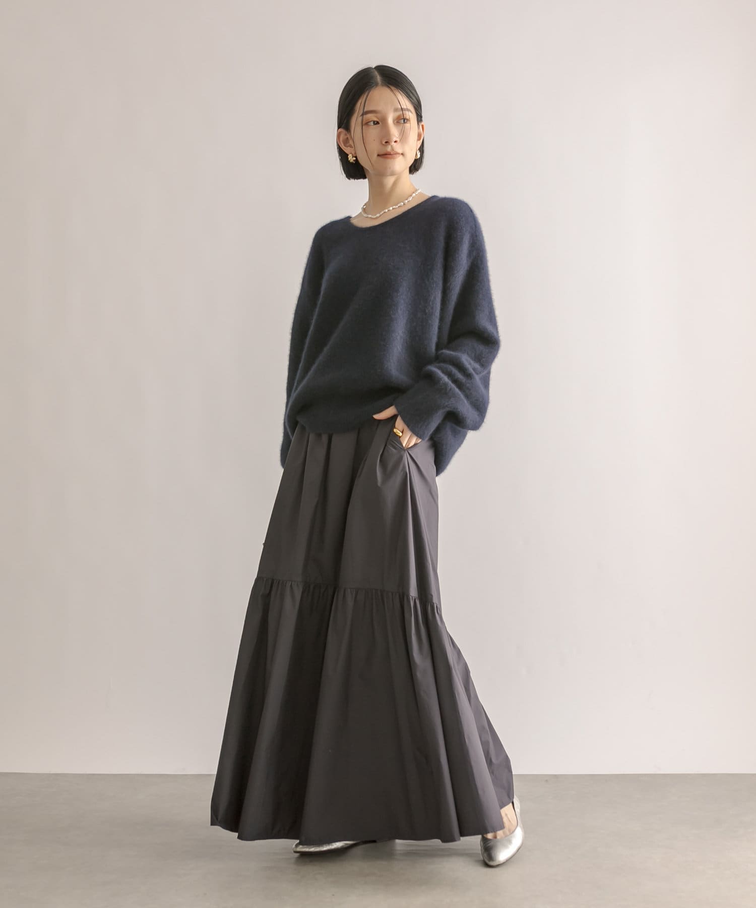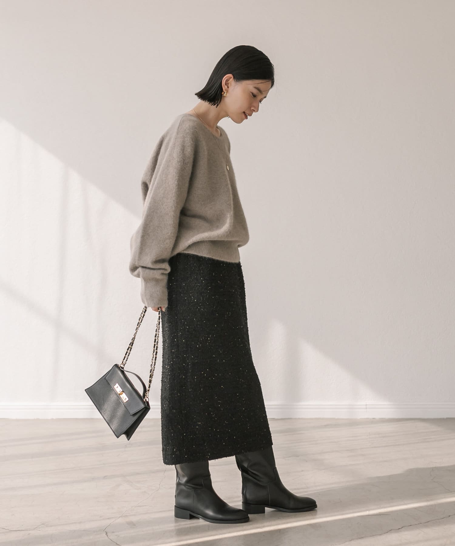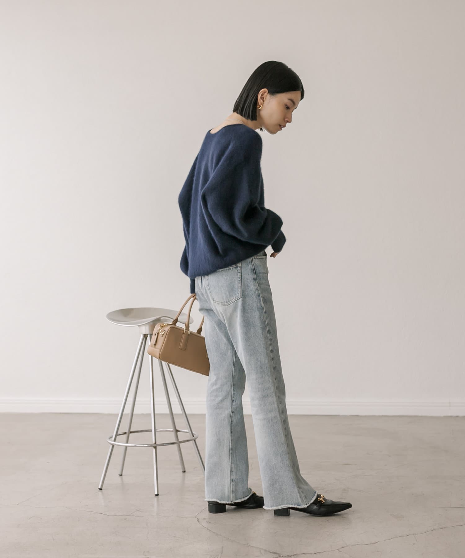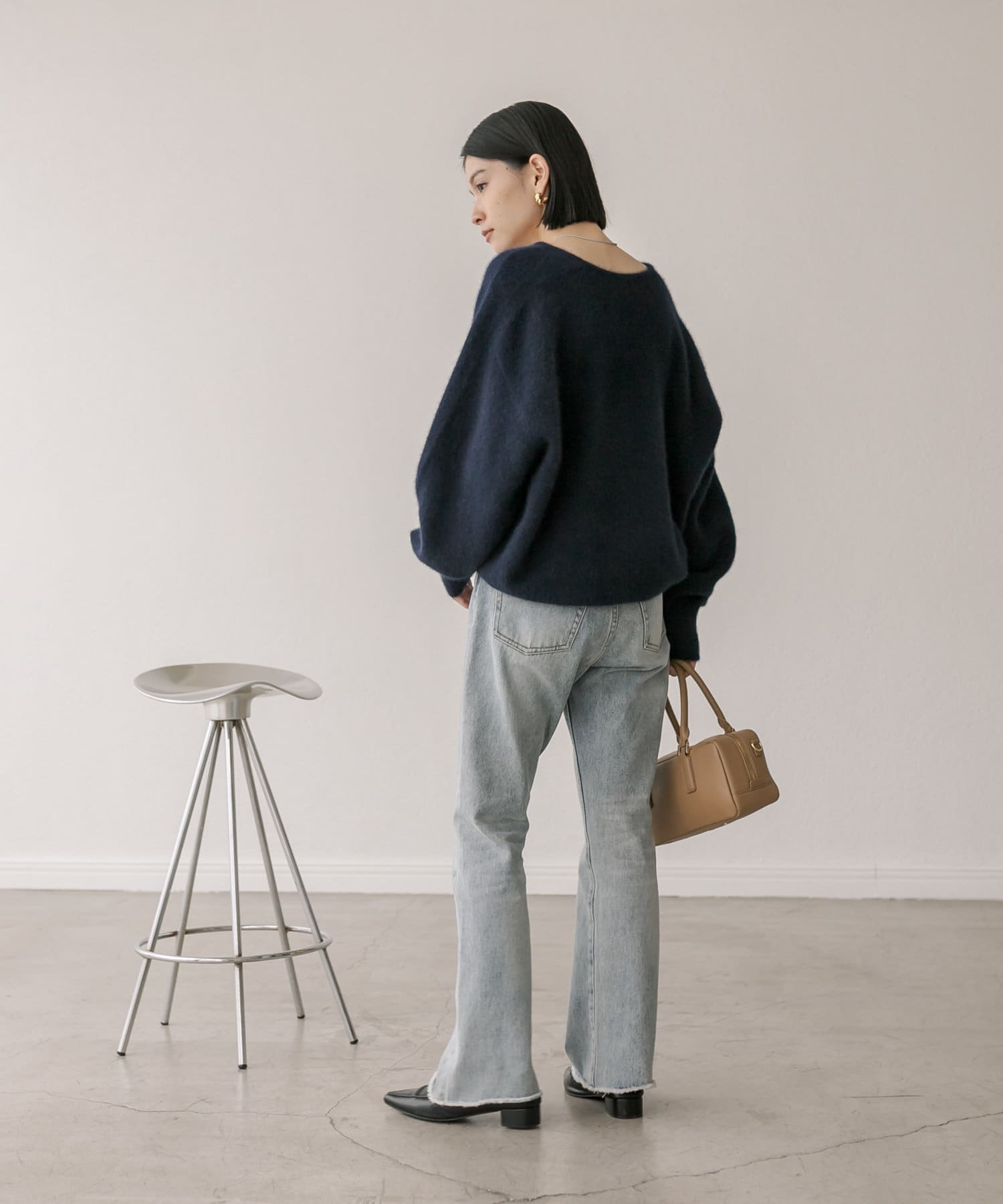 ※敏感肌の方は、ニットが直接肌に触れることでチクチク感じる場合がございますので、その場合はインナーにカットソーなどを合わせていただくことをおすすめいたします。