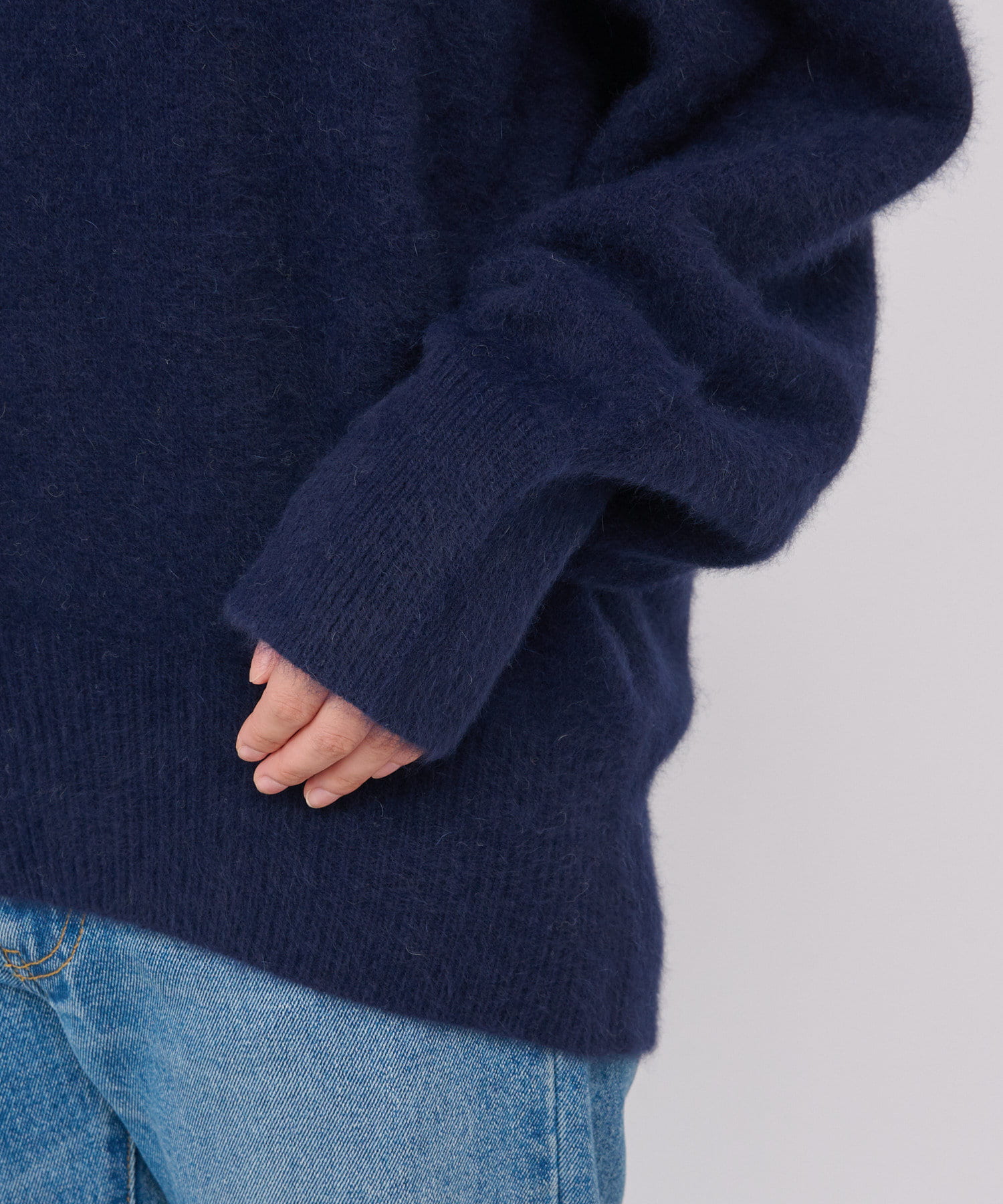 柔らかな肌触りとややオーバーなサイズ感がトレンドライクなプルオーバーニット。