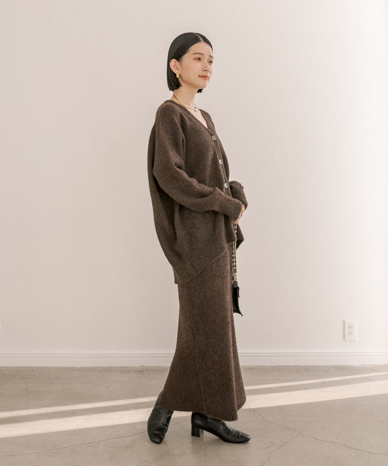 柔らかいソフトな素材にフェザーラメがブレンドされた あたたかみのある肌触りの優しい素材で、気温の低い日にもオススメです。