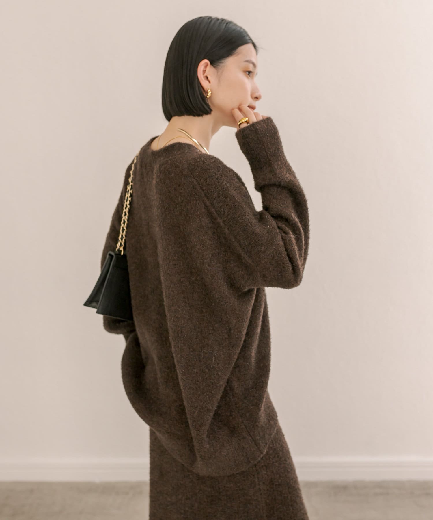 あたたかな風合いの中にきらめくラメがシーズンムードを高めてくれる1着。