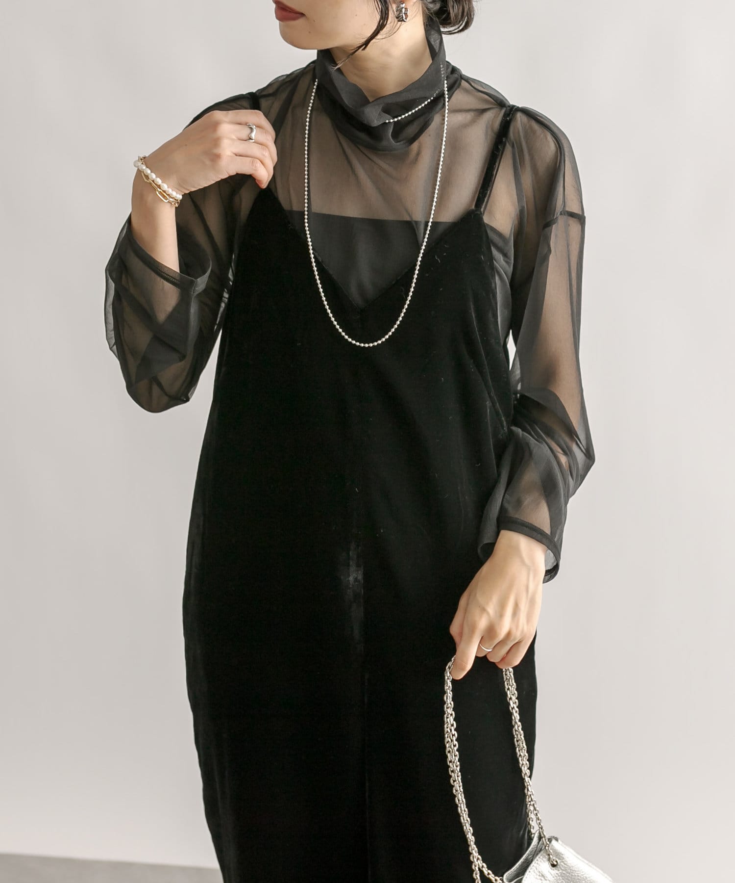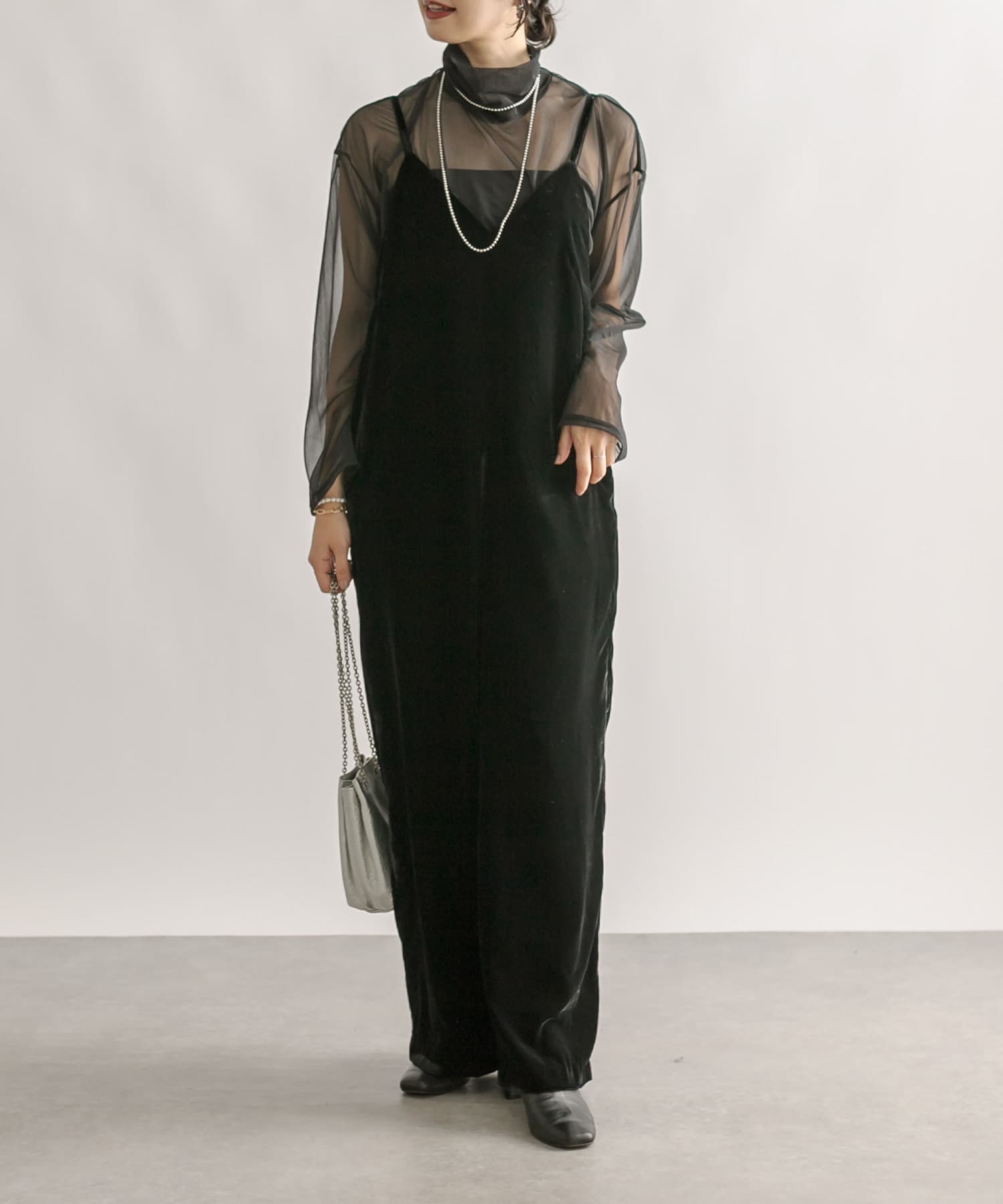 カップ付きのキャミソールなどと合わせて一枚で着るとドレッシーな雰囲気になりますし、インに薄手のロングTシャツを合わせたレイヤードスタイルも可能です。