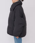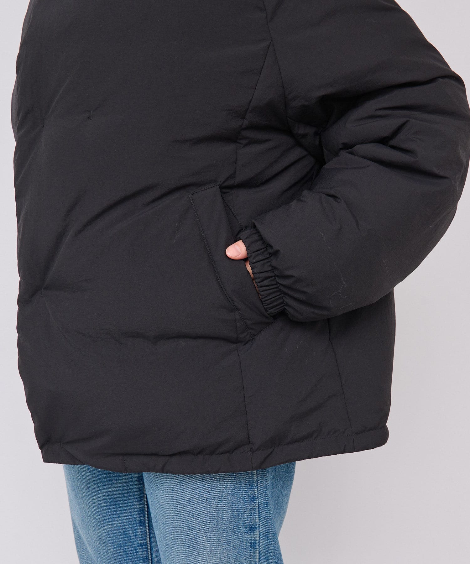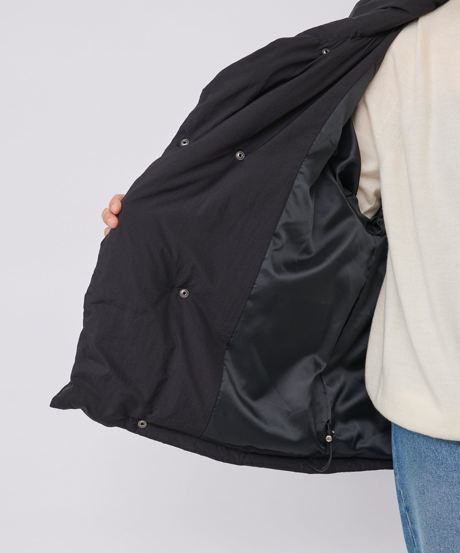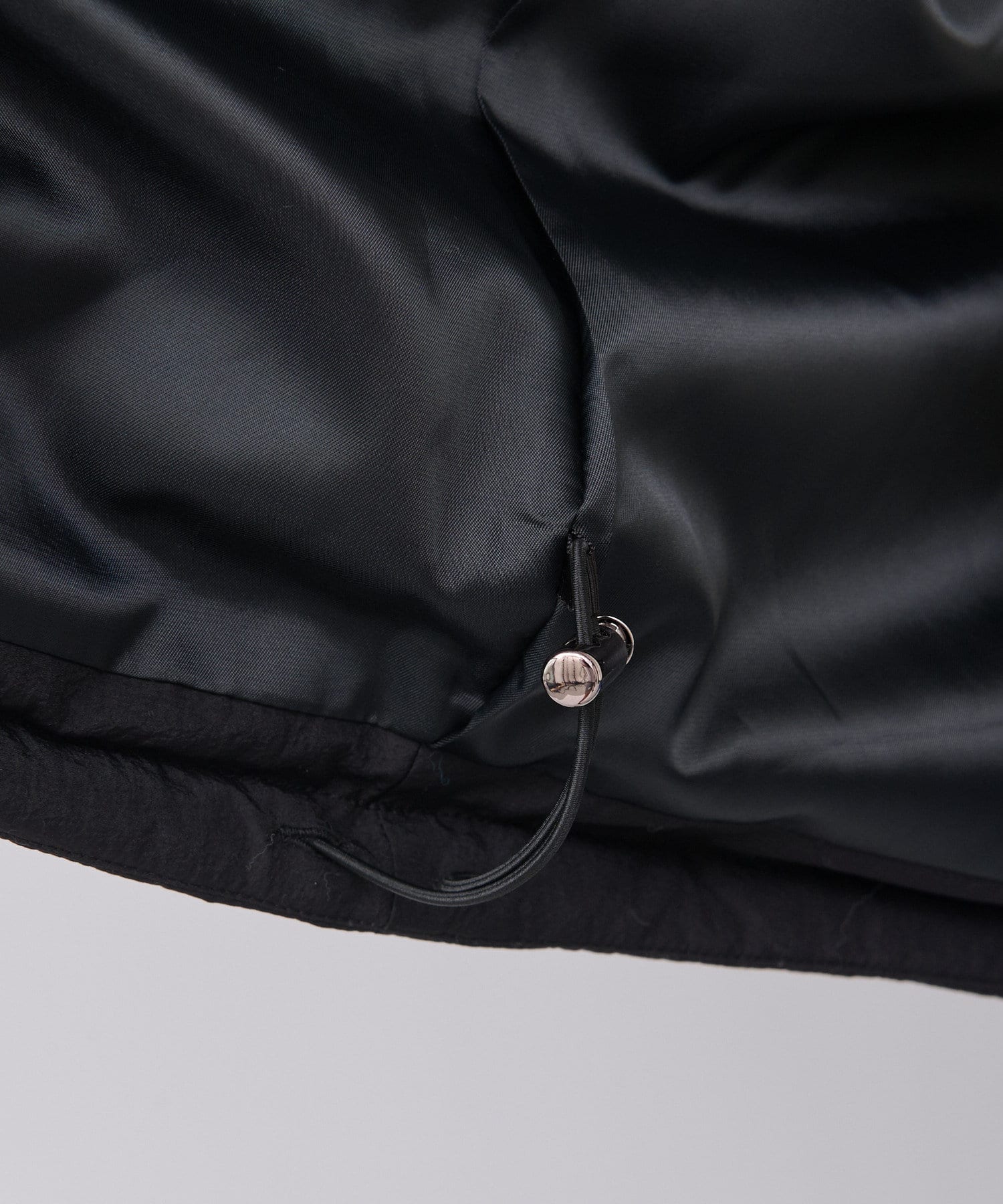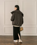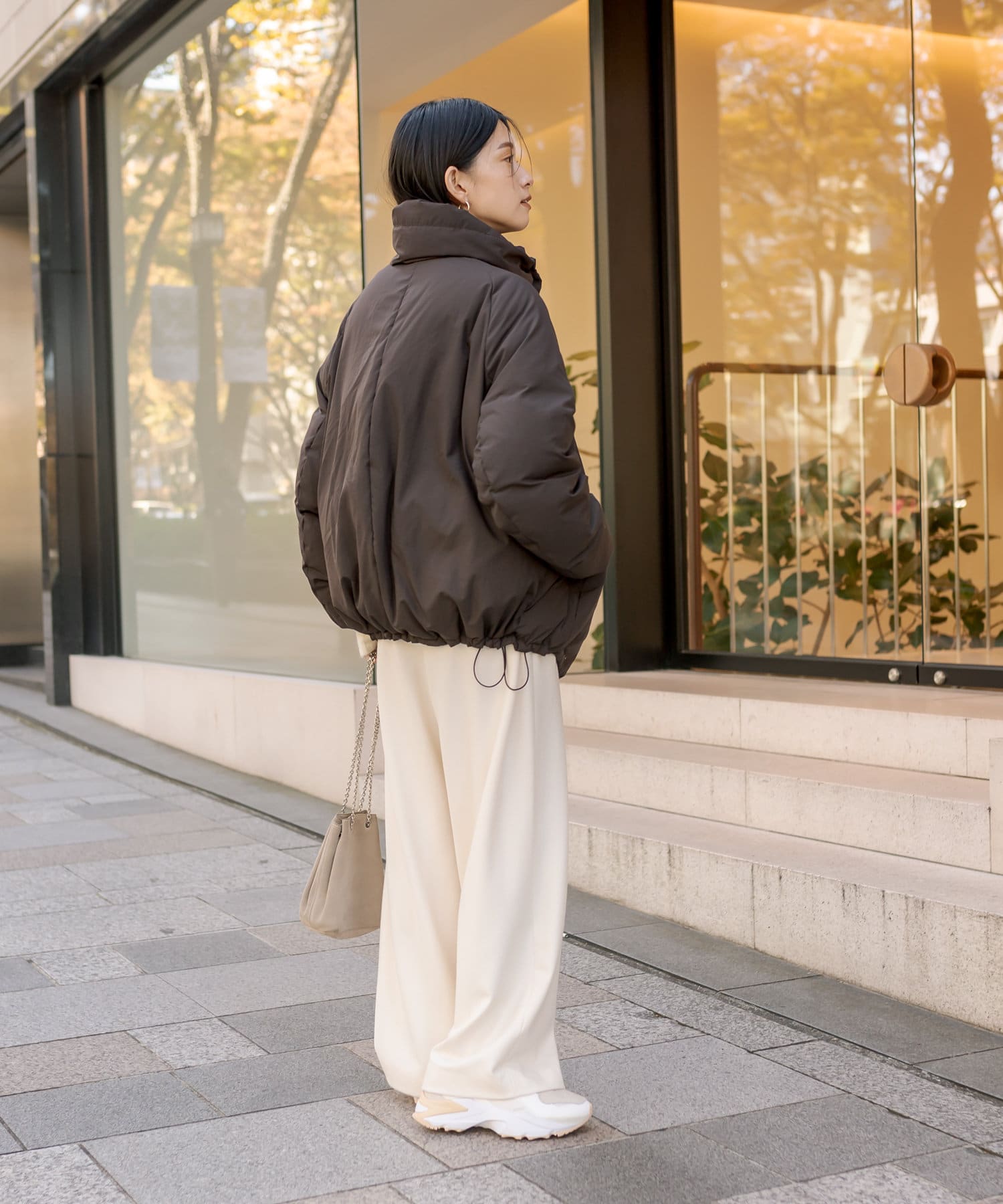 マフラーいらずのハイネック仕様、ゴム入りの袖口、ヒップが隠れる程度の着丈と、風の強い日にも安心の設計。