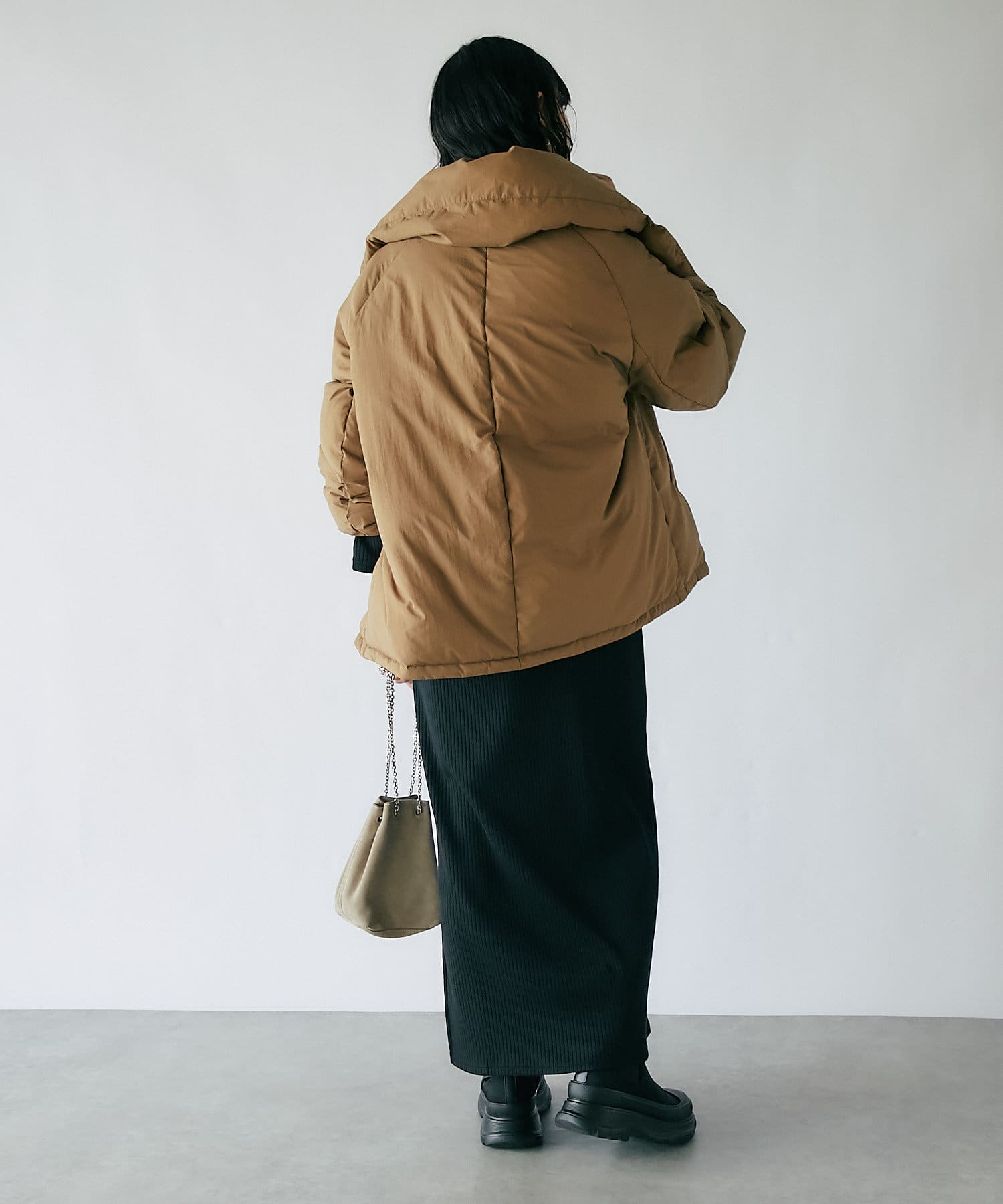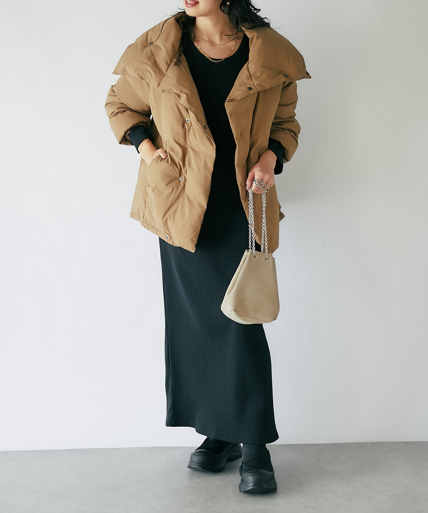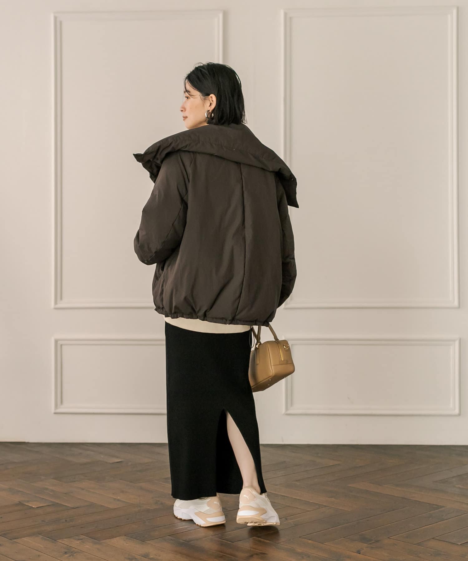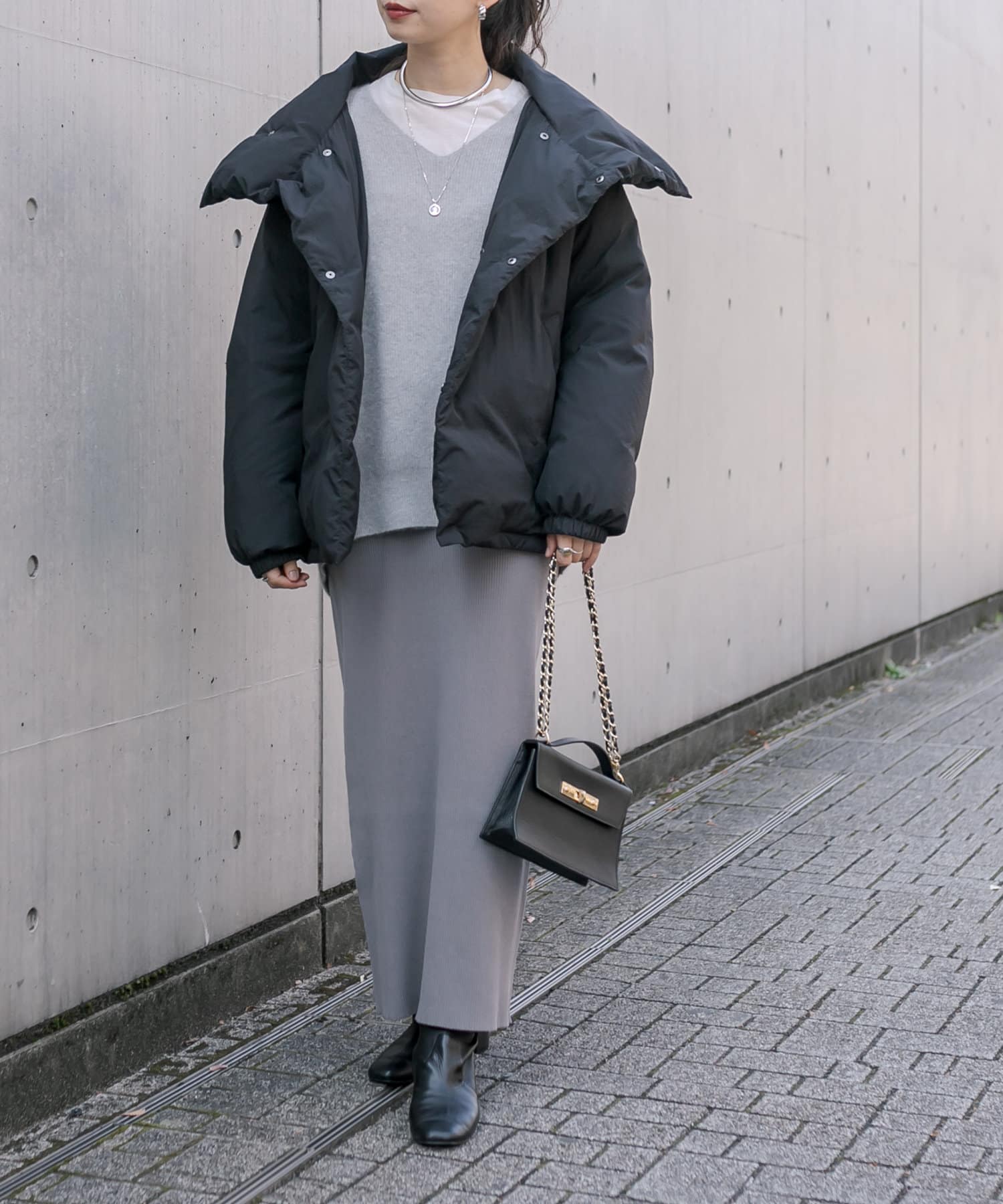ゆったりとしたサイズ感なので、厚手のニットも中に着こみやすいです。