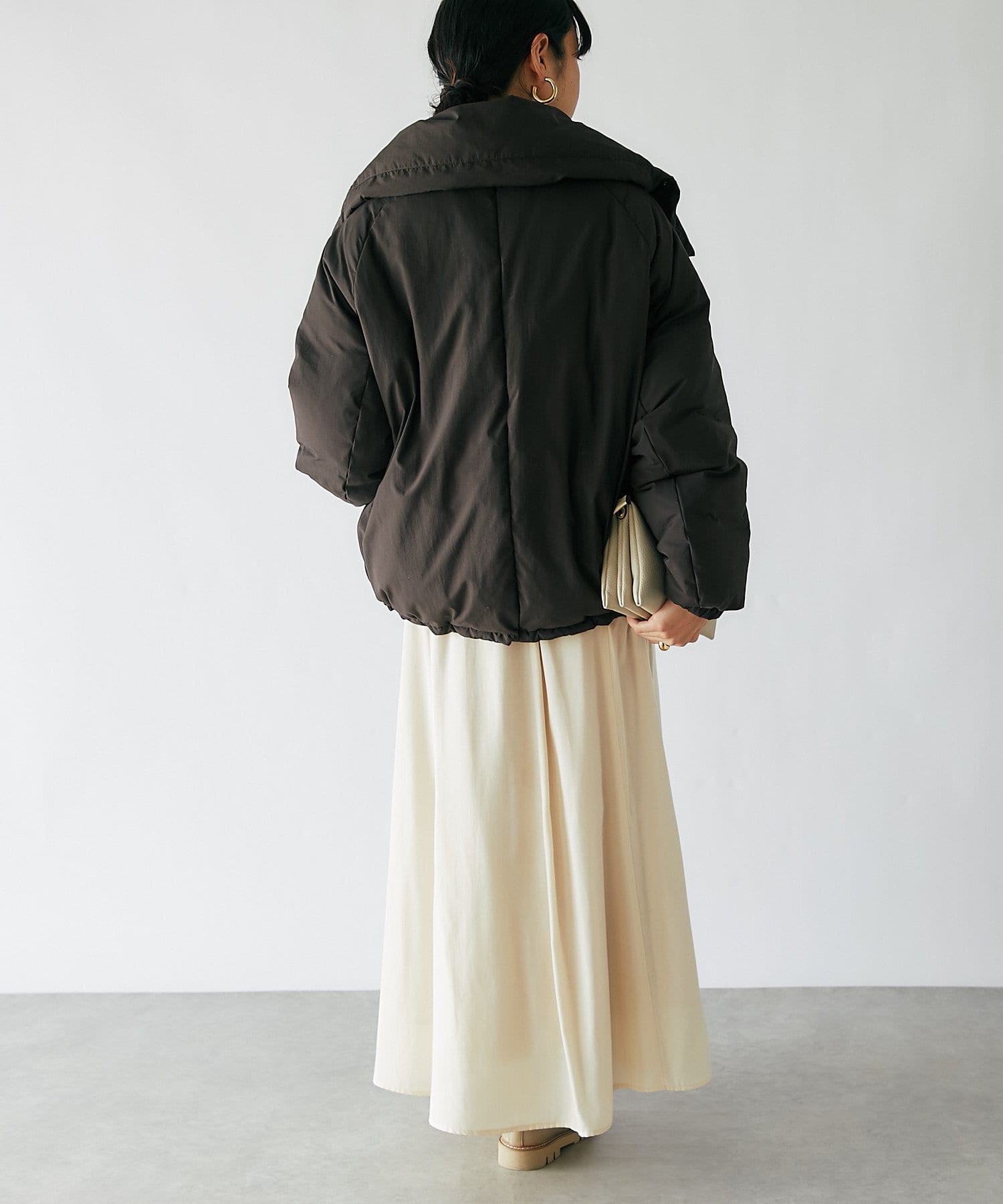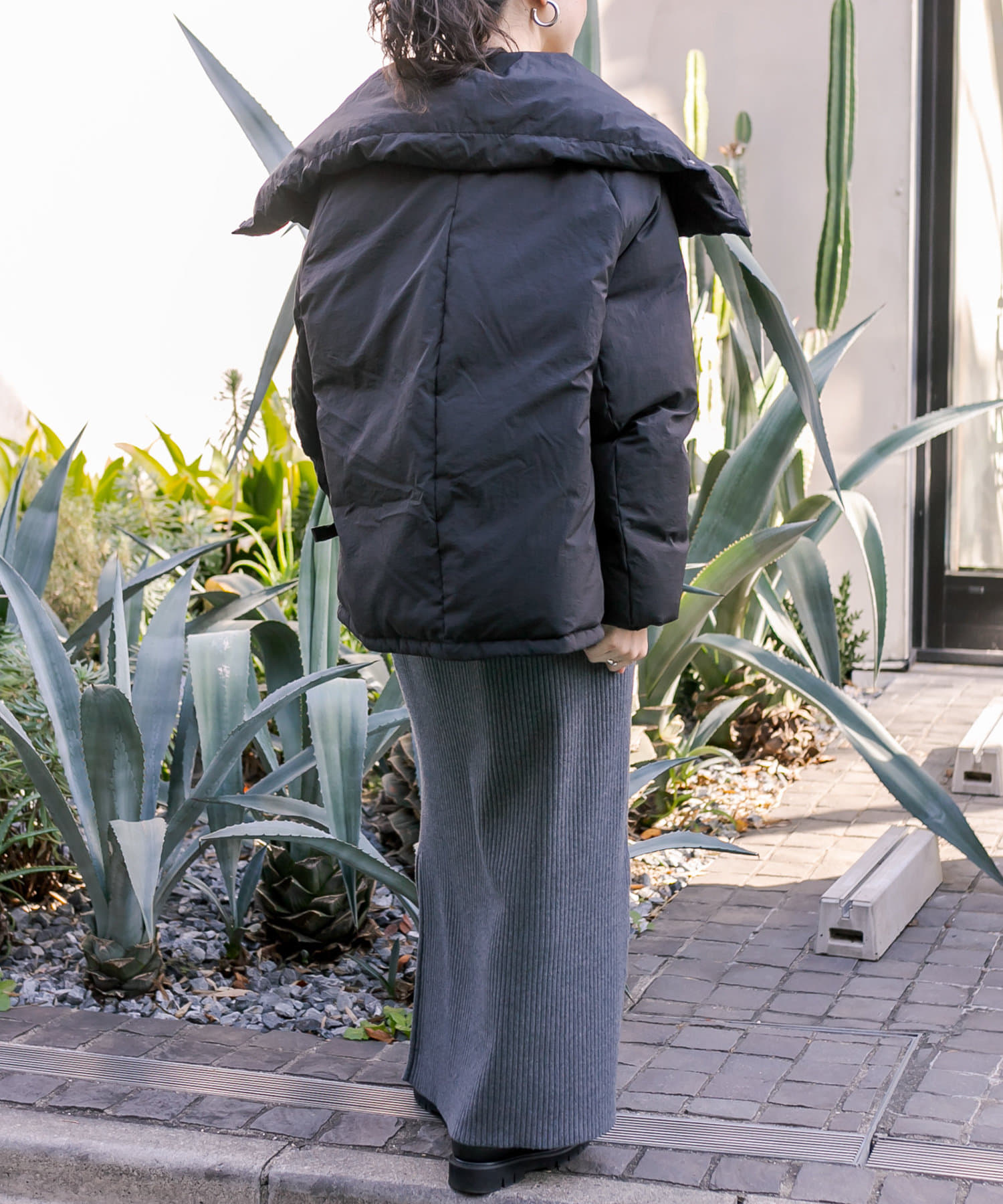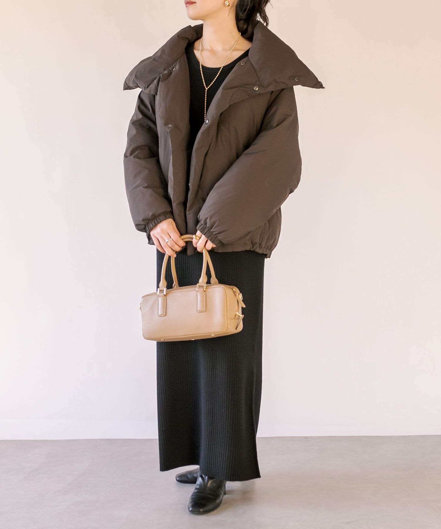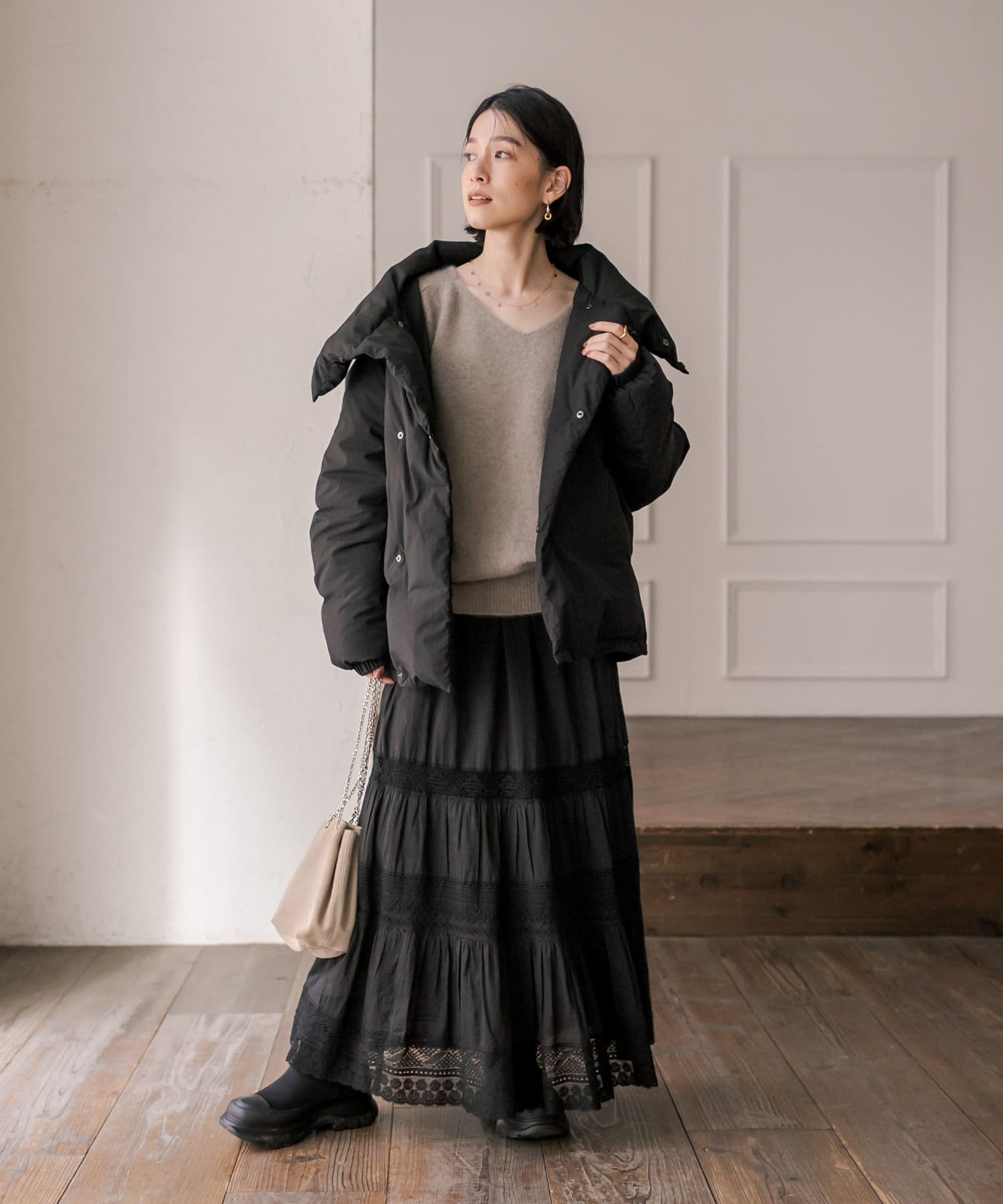 ゆったりとしたサイズ感なので、厚手のニットも中に着こみやすいです。