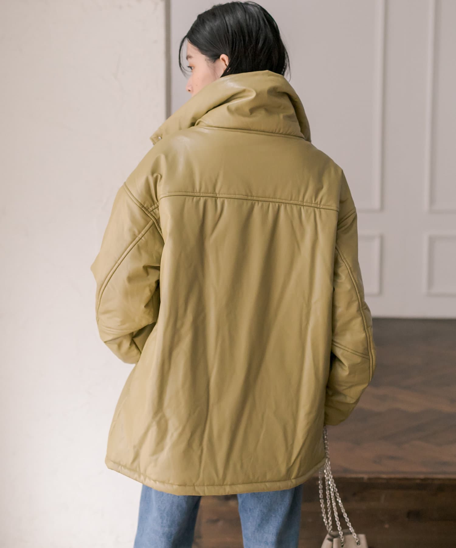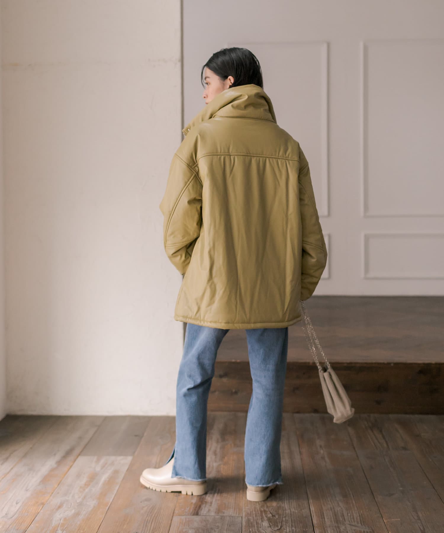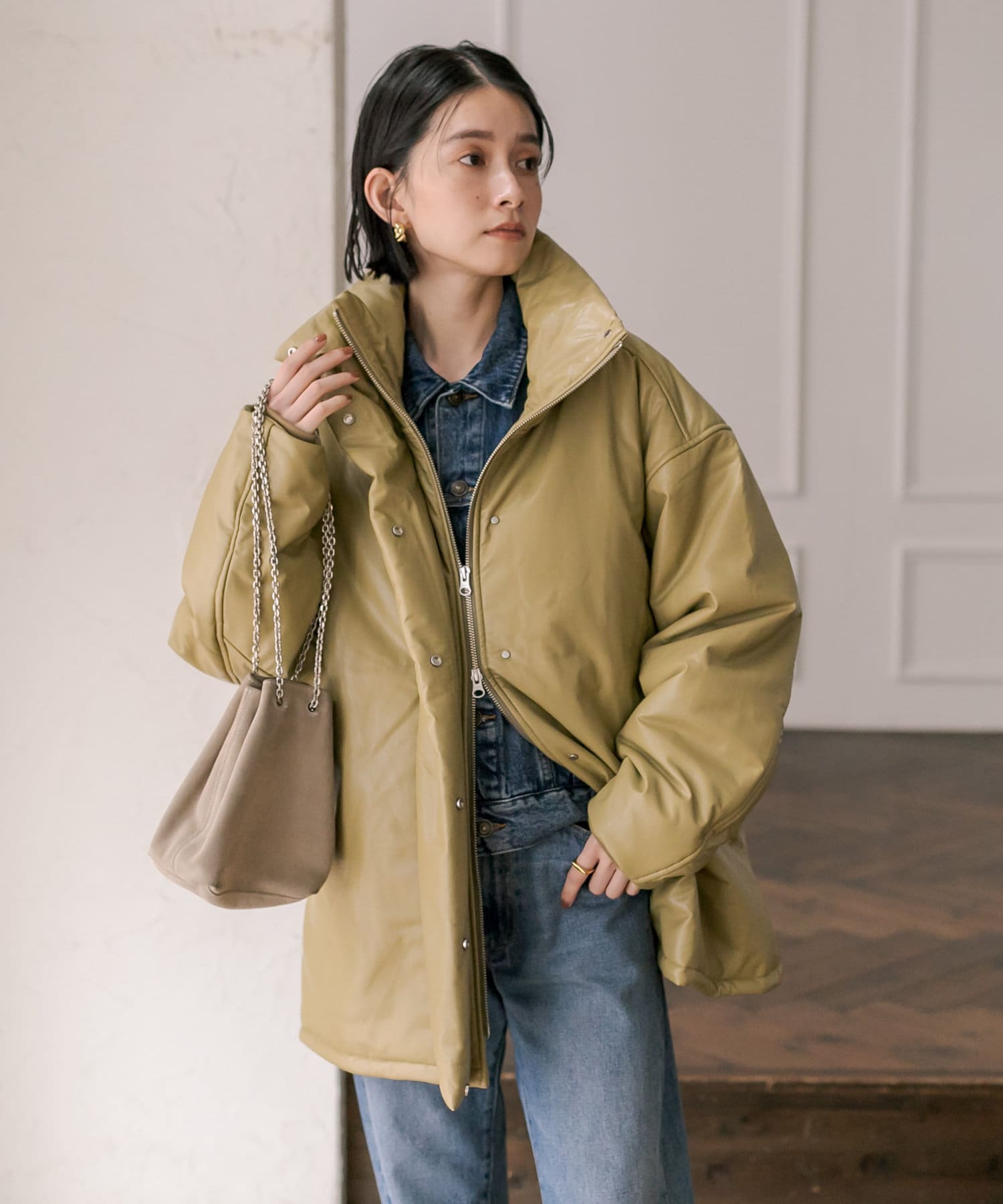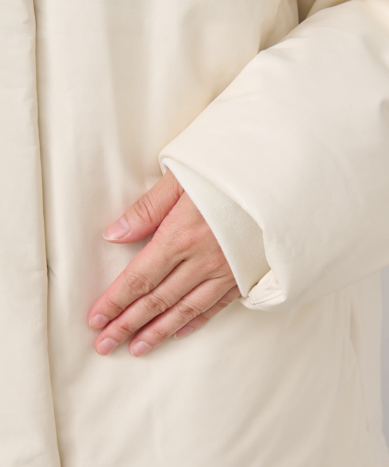 エコレザー素材で中綿を入れ、ぷっくりとしたシルエットが魅力のコートが登場♪