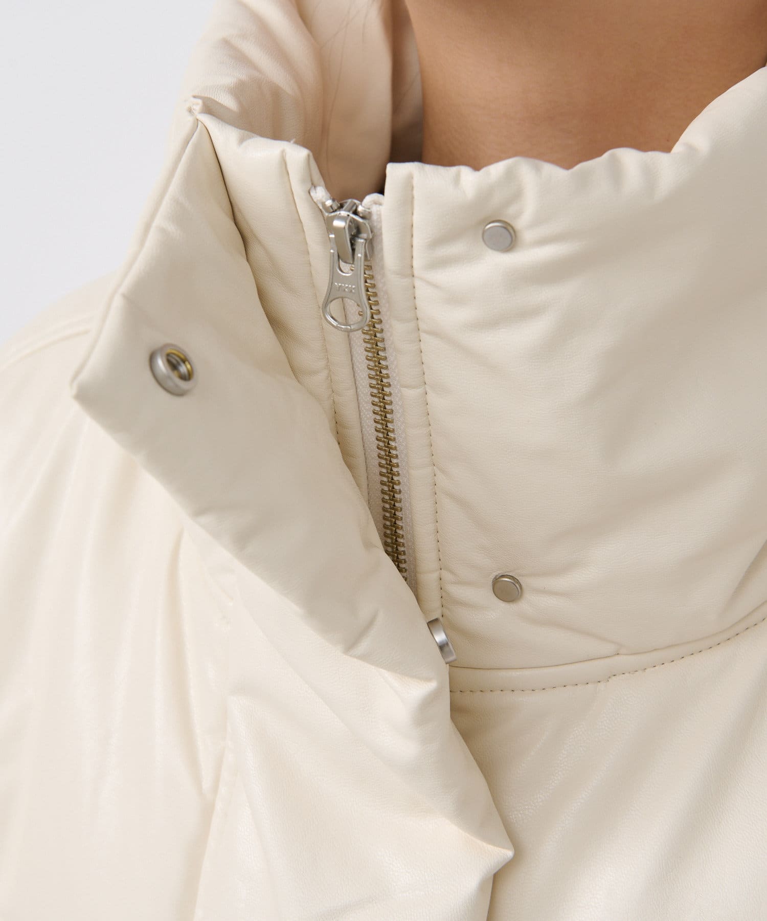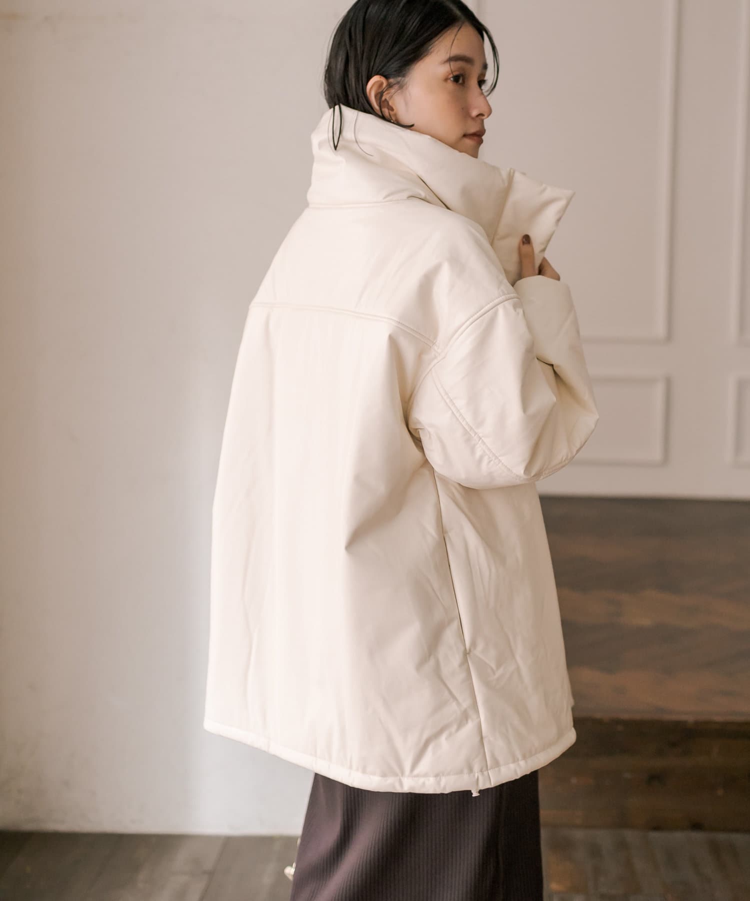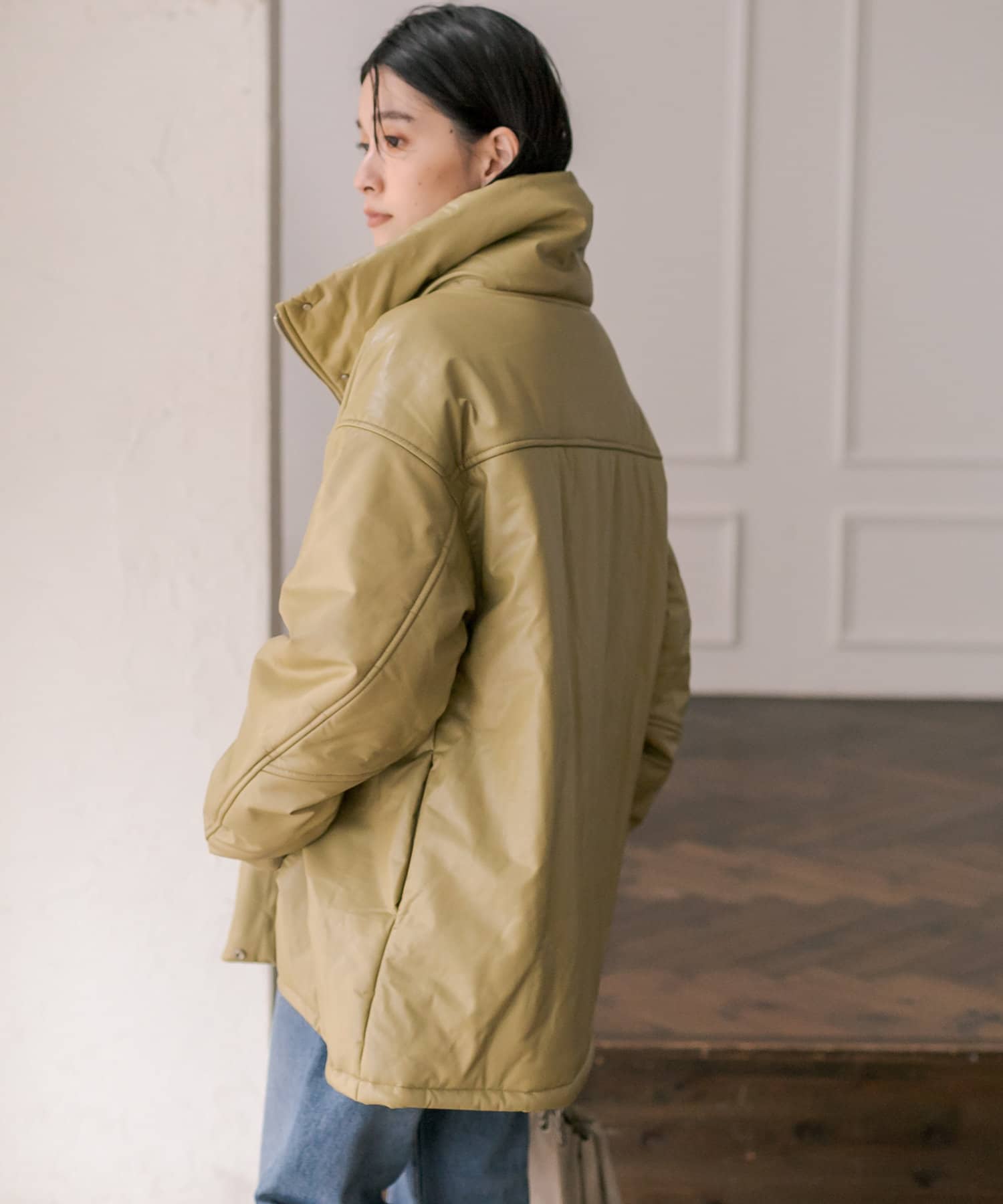 エコレザー素材で中綿を入れ、ぷっくりとしたシルエットが魅力のコートが登場♪