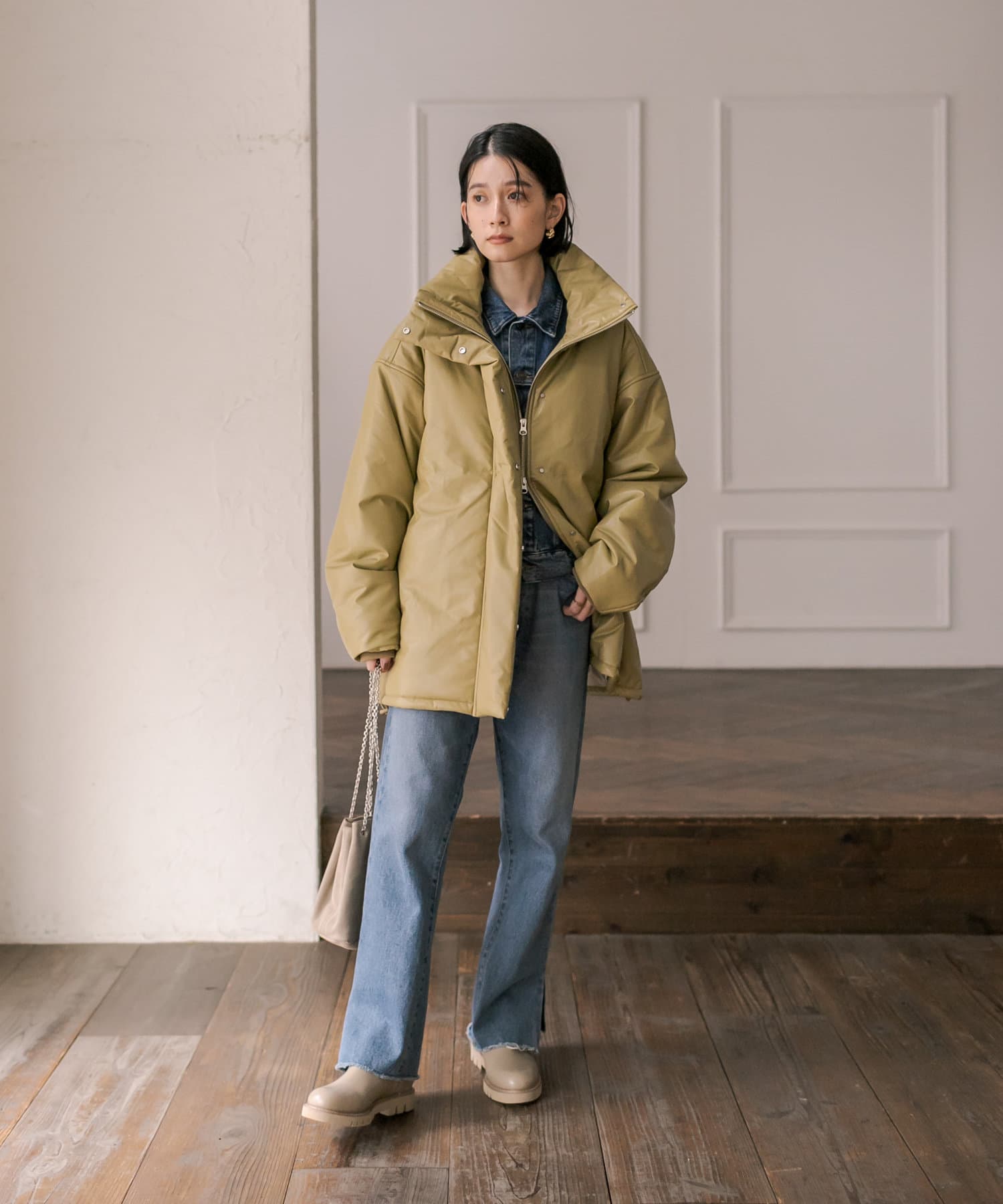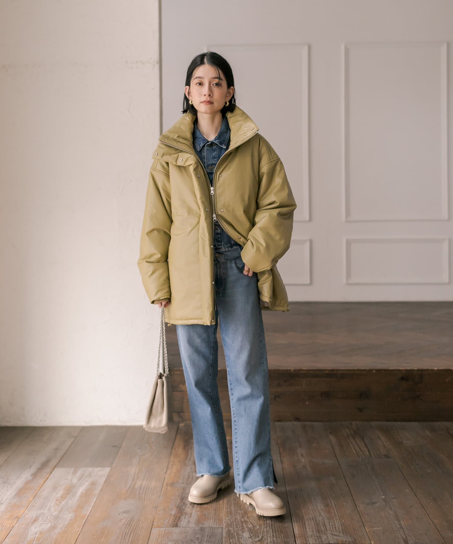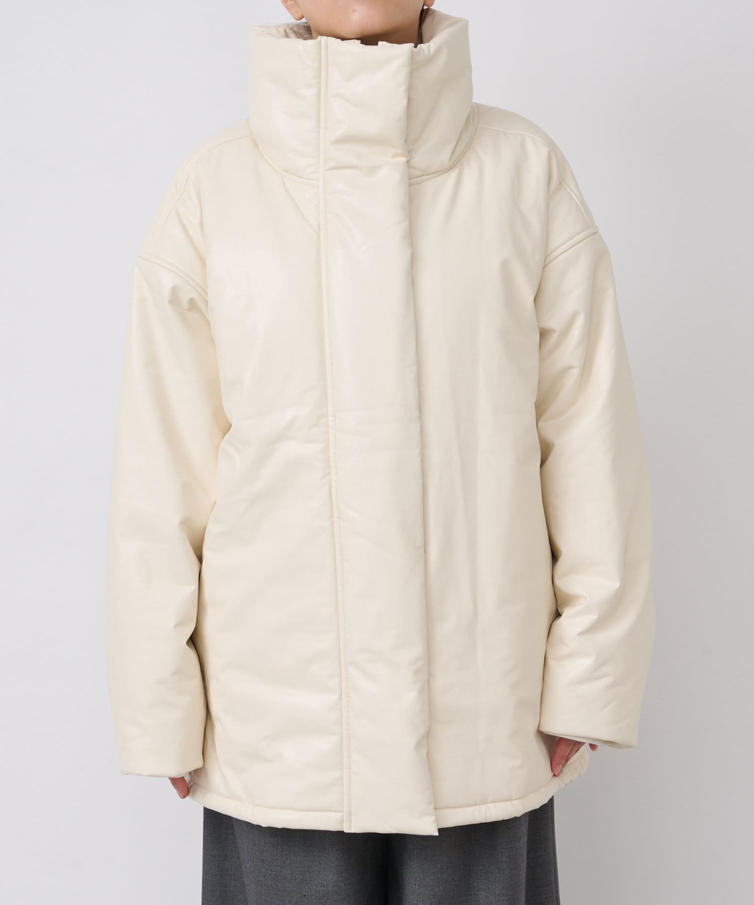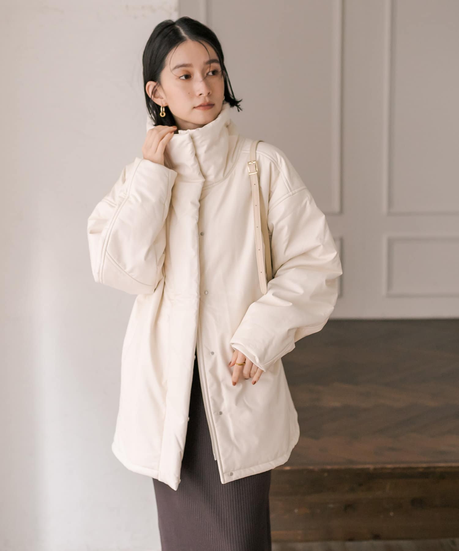 エコレザー素材で中綿を入れ、ぷっくりとしたシルエットが魅力のコートが登場♪