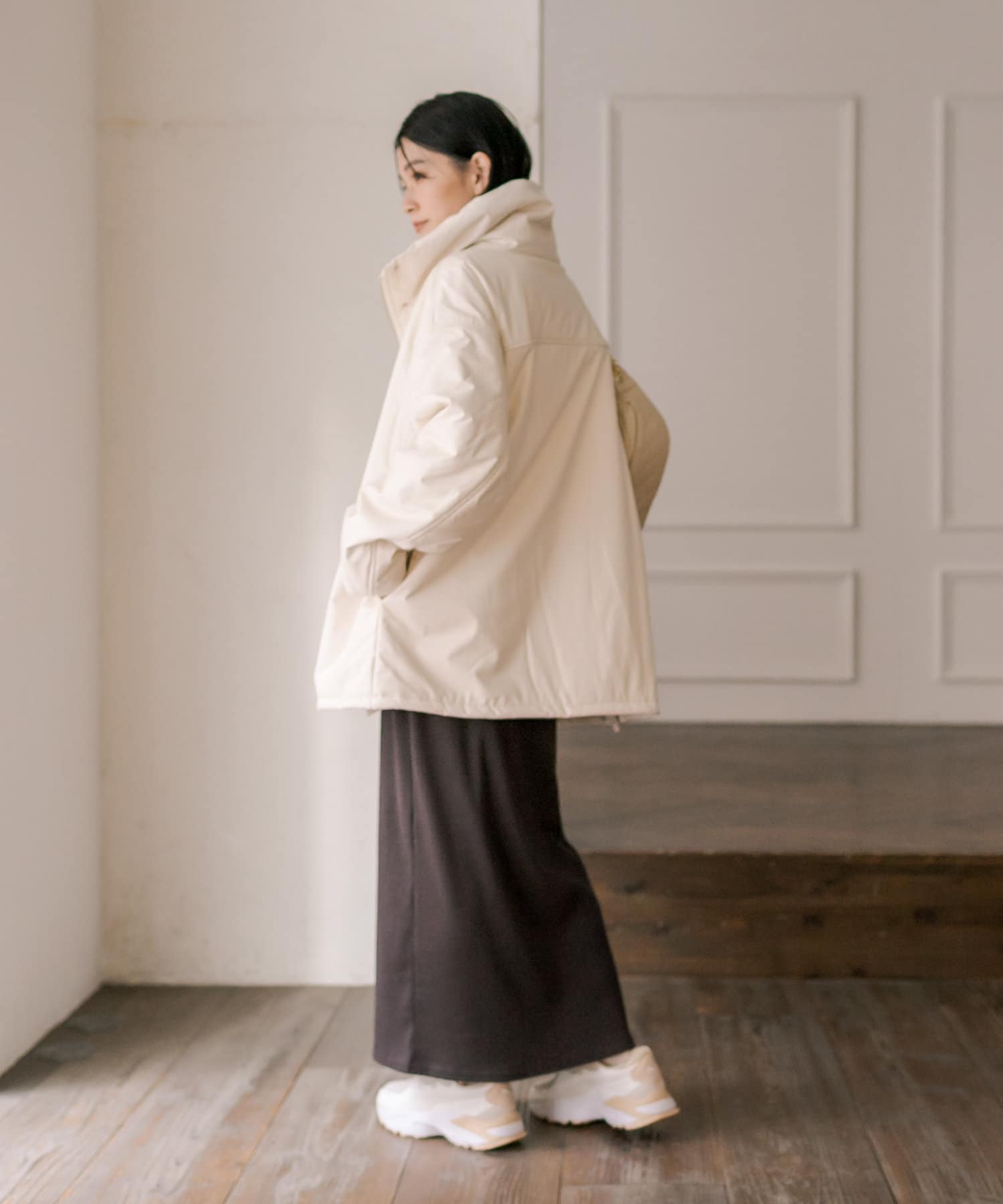 スタンドネックで首回りのカバーも出来るので、マフラーいらずで過ごせるのも嬉しいポイント。