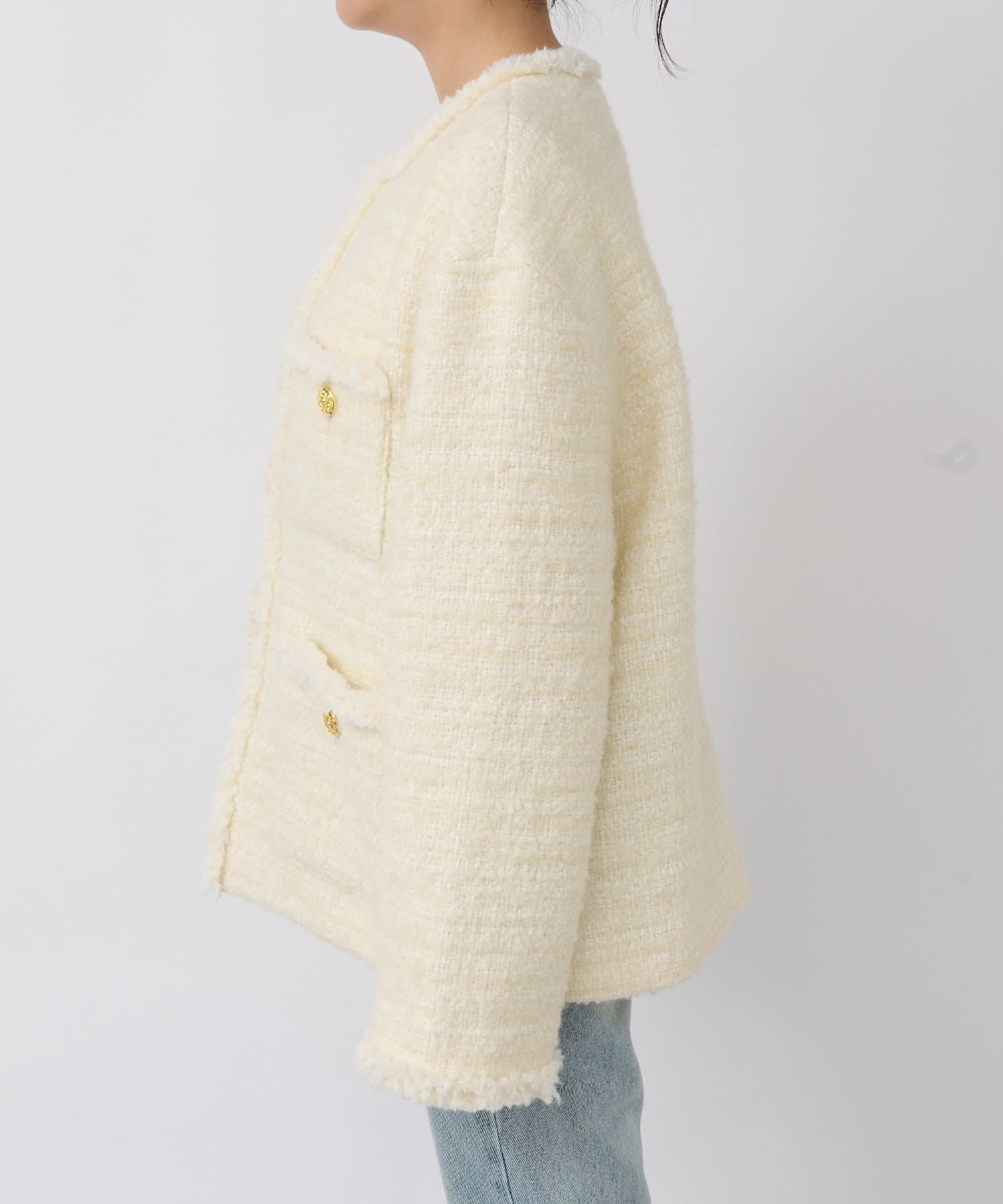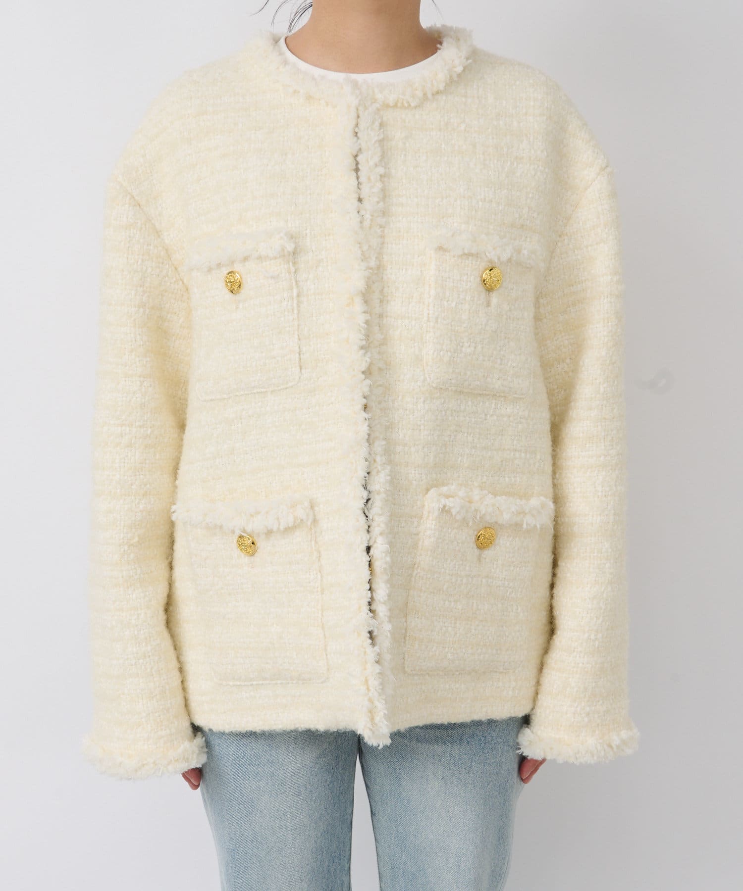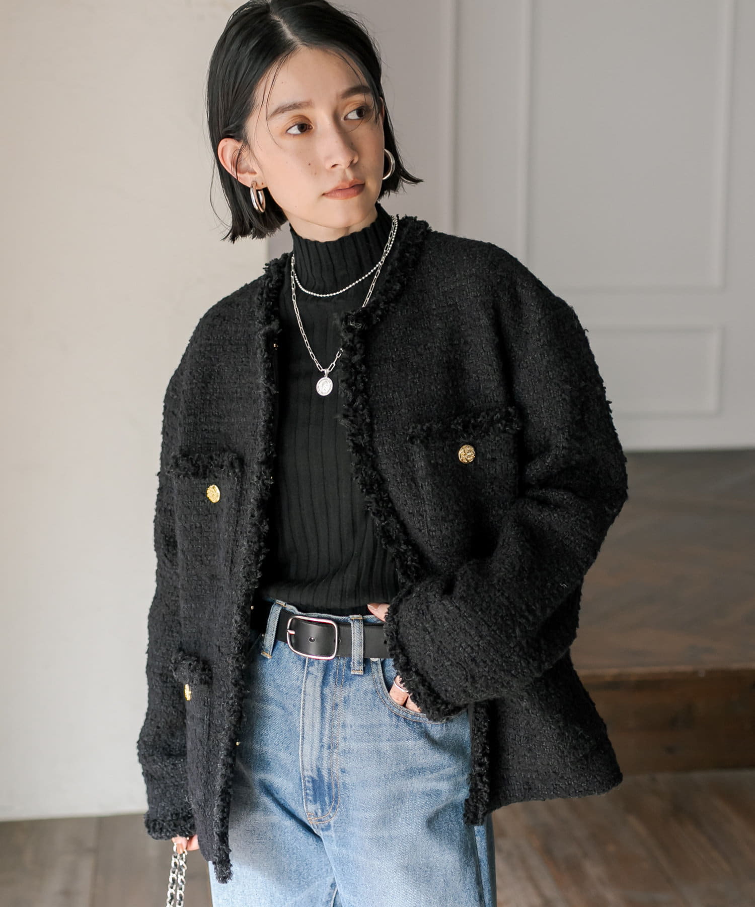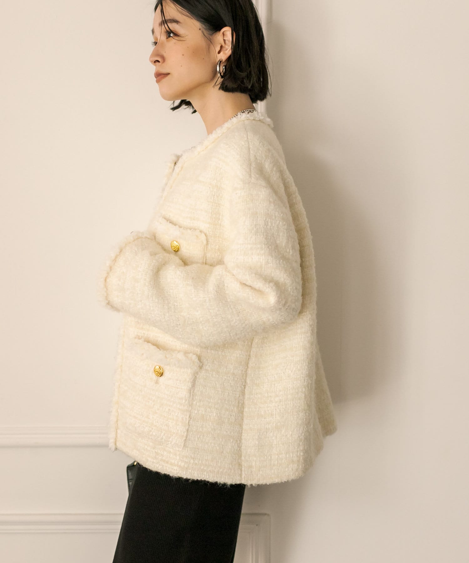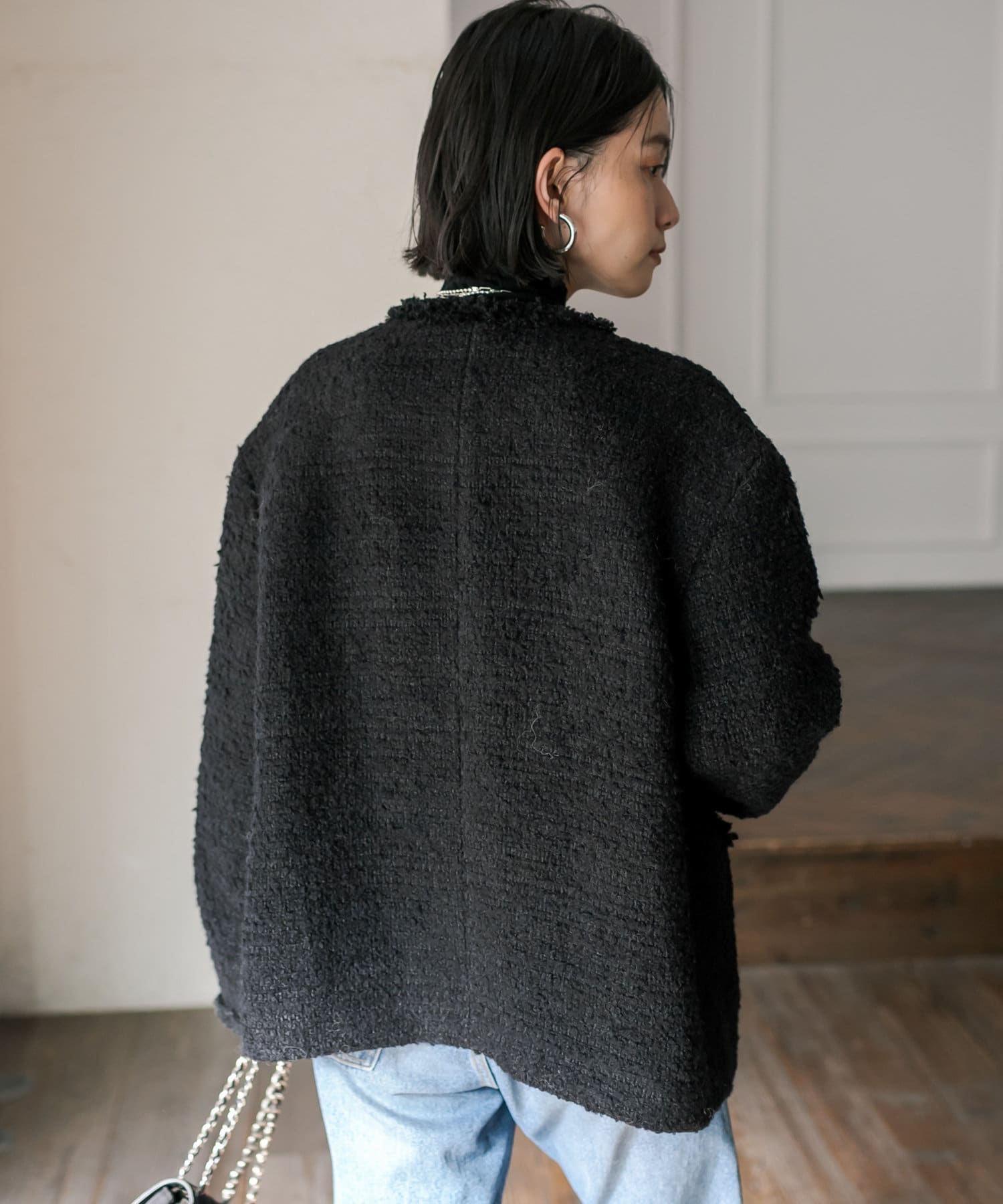 サッと羽織るだけで着映え間違いなしのツイードジャケット。