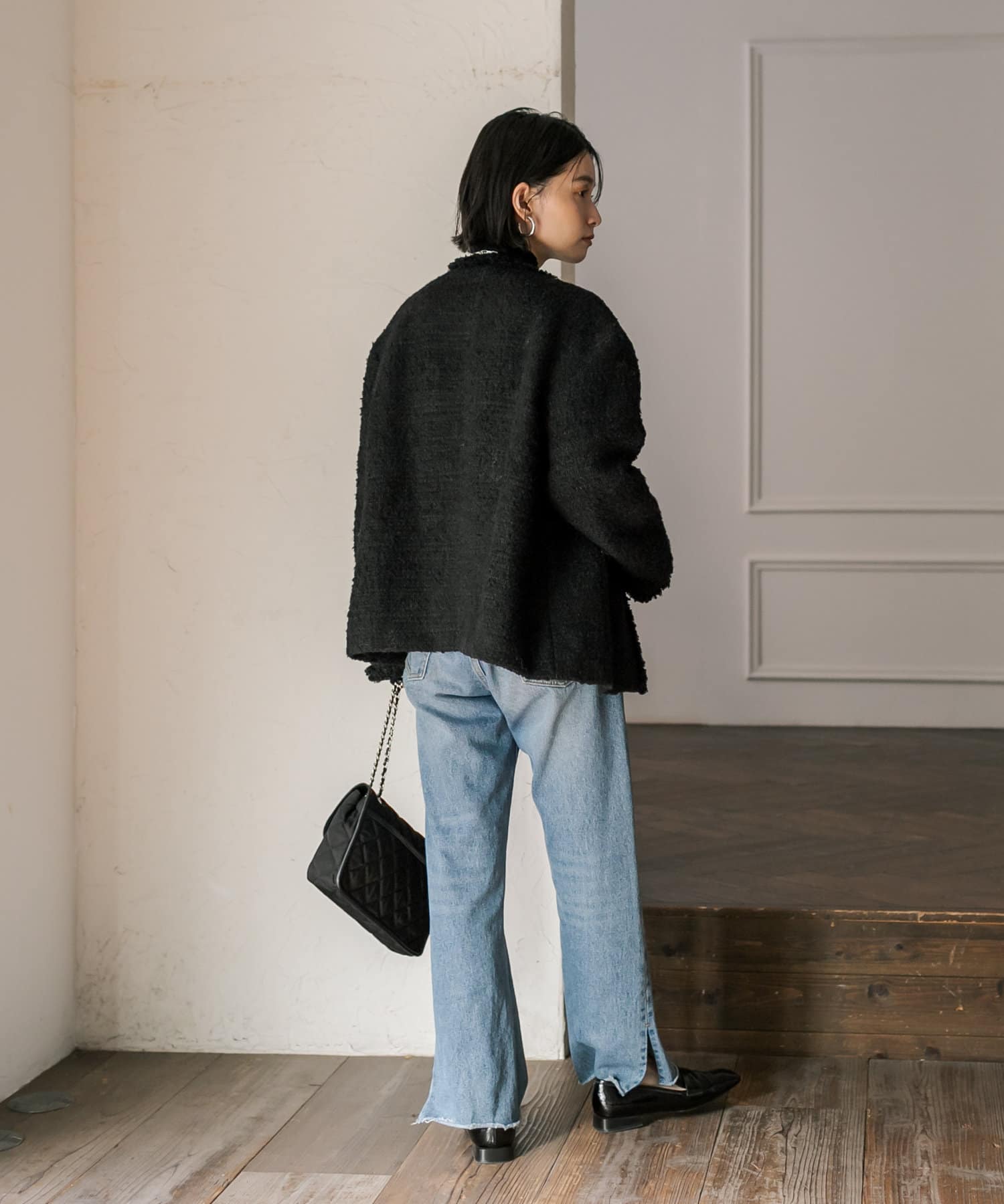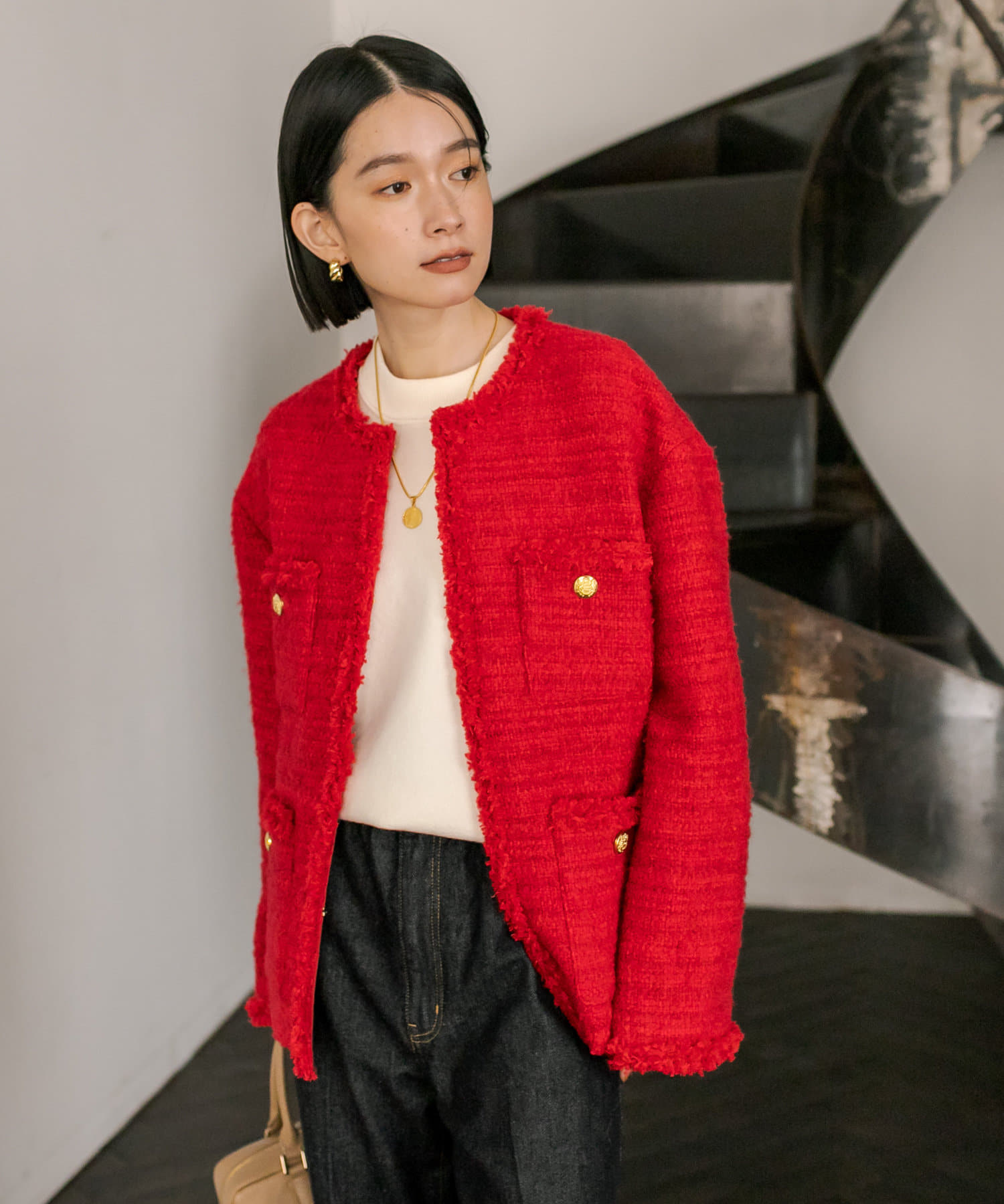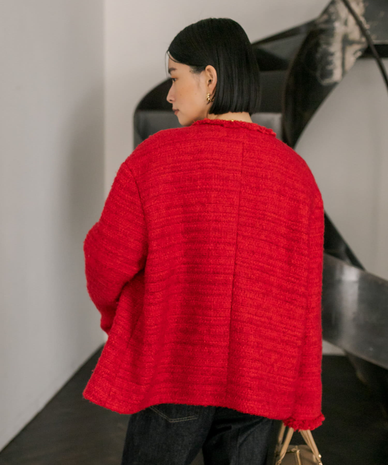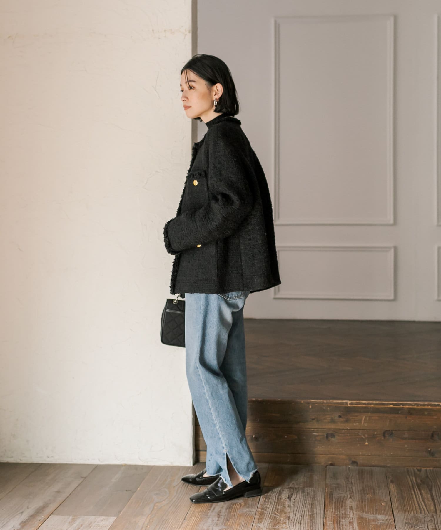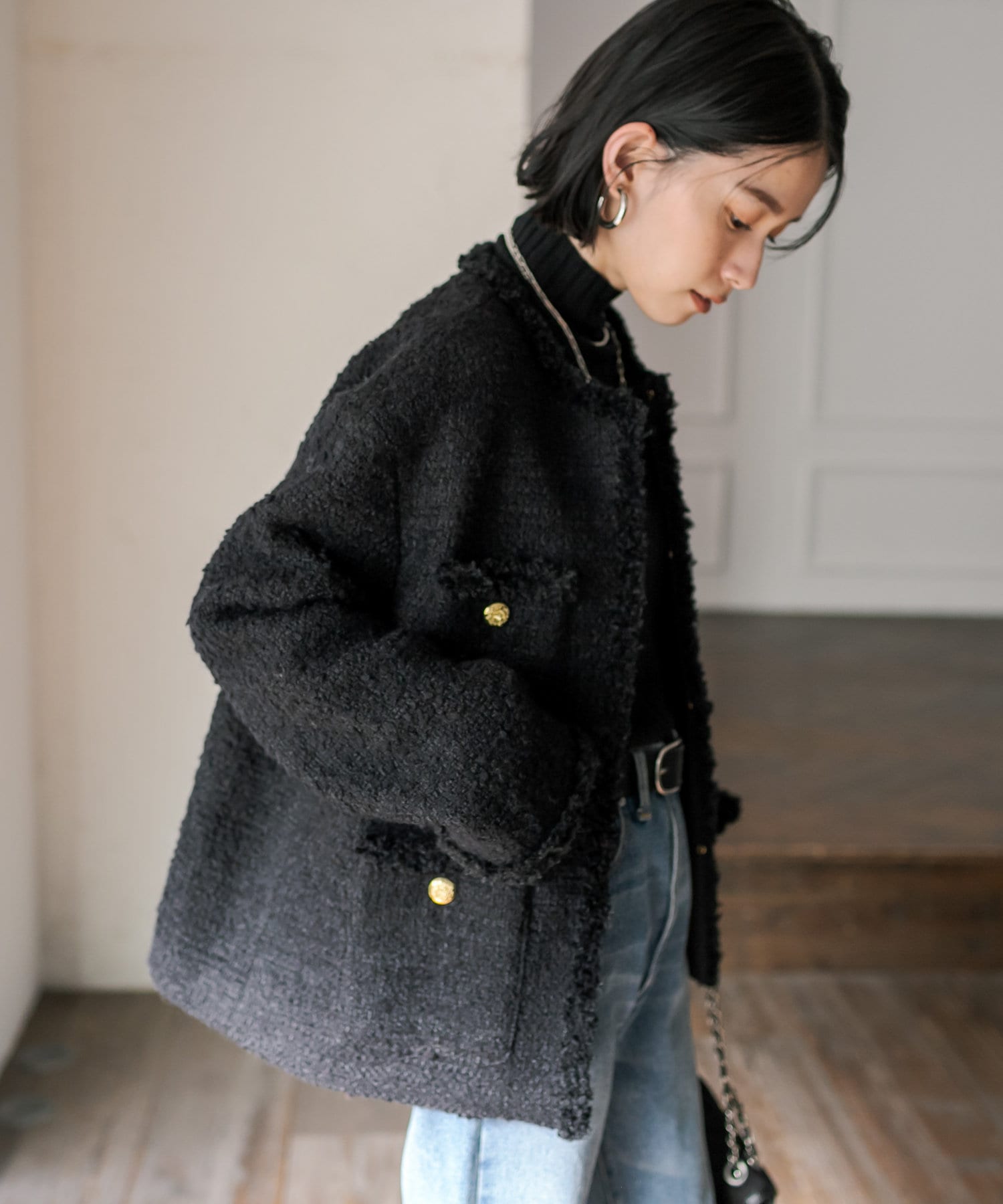 サッと羽織るだけで着映え間違いなしのツイードジャケット。