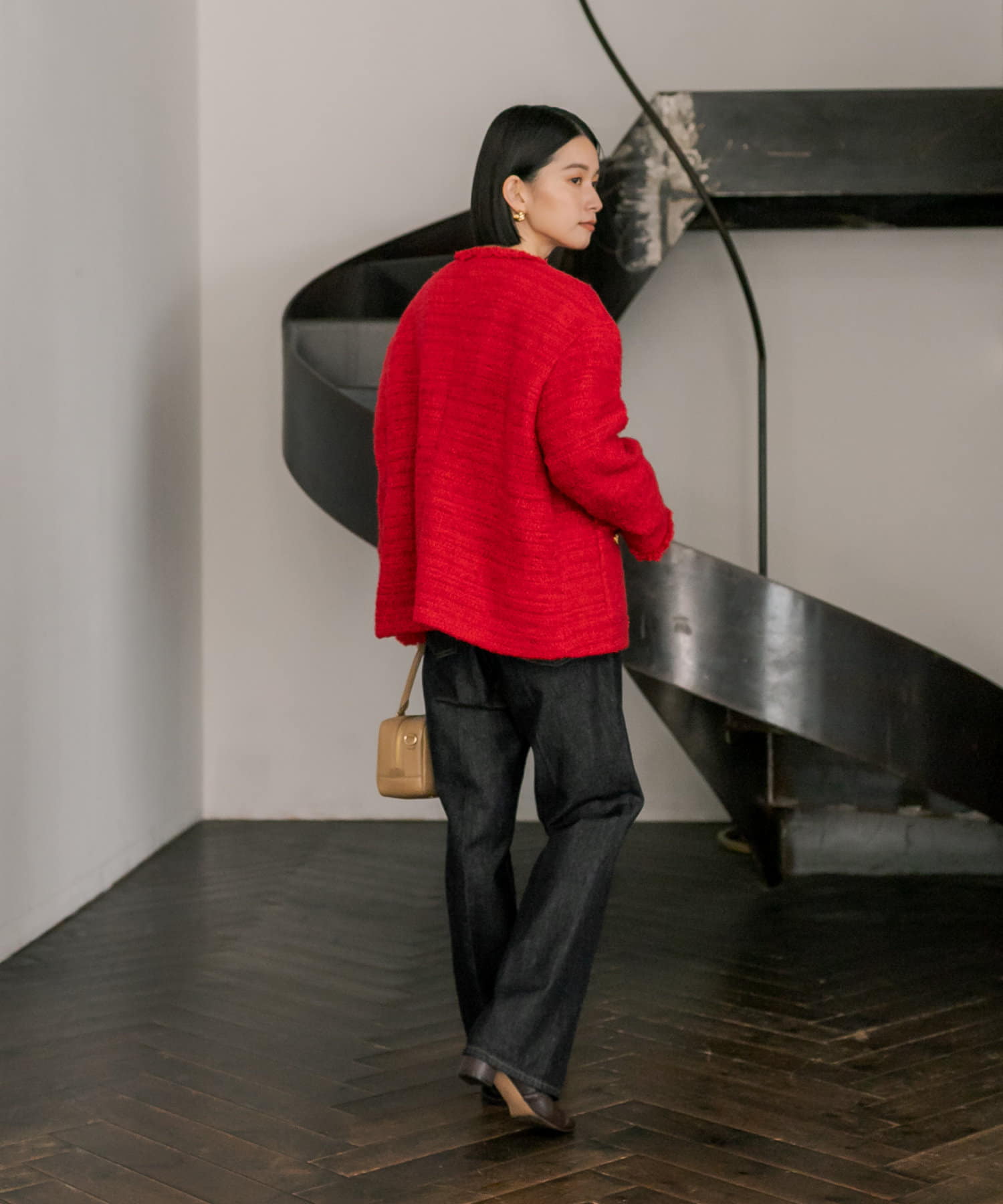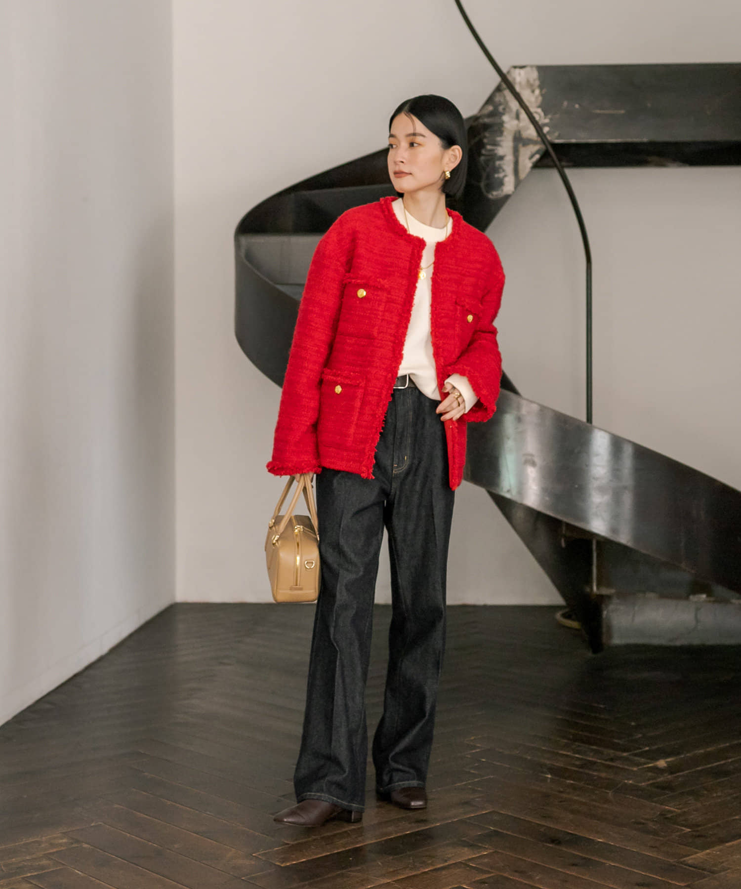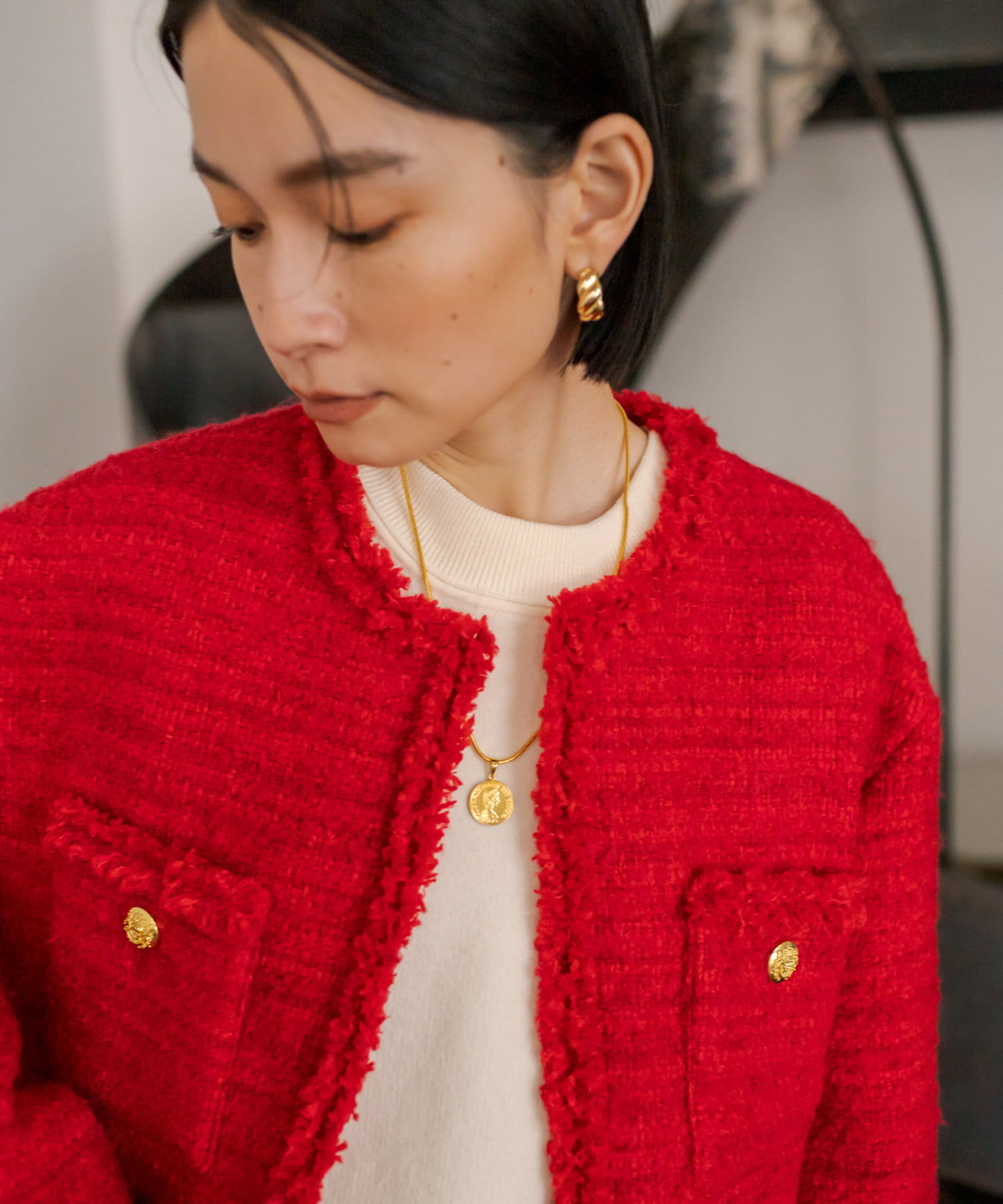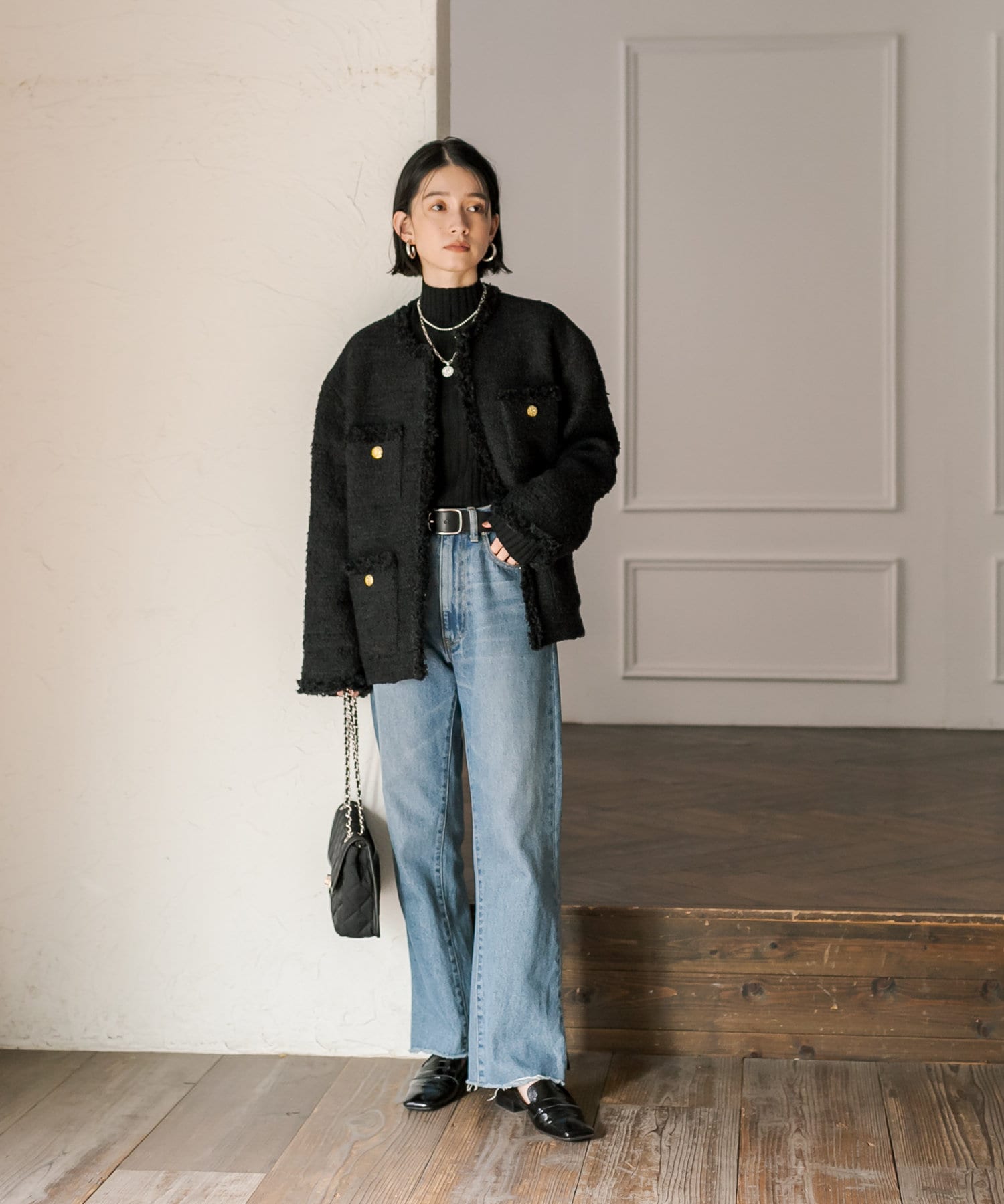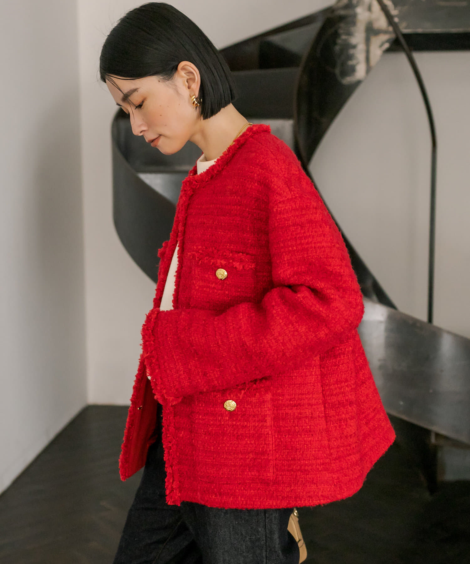 サッと羽織るだけで着映え間違いなしのツイードジャケット。
