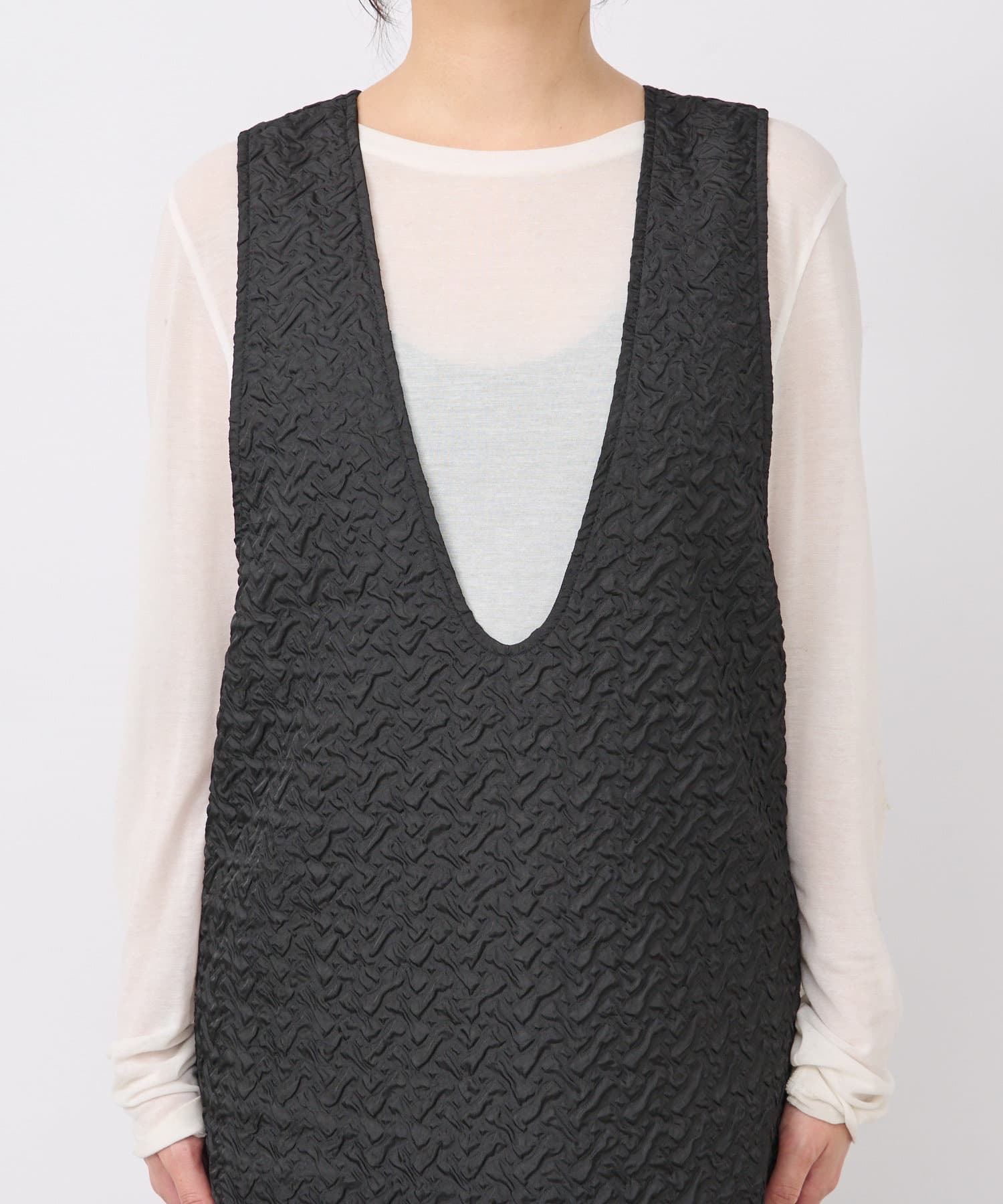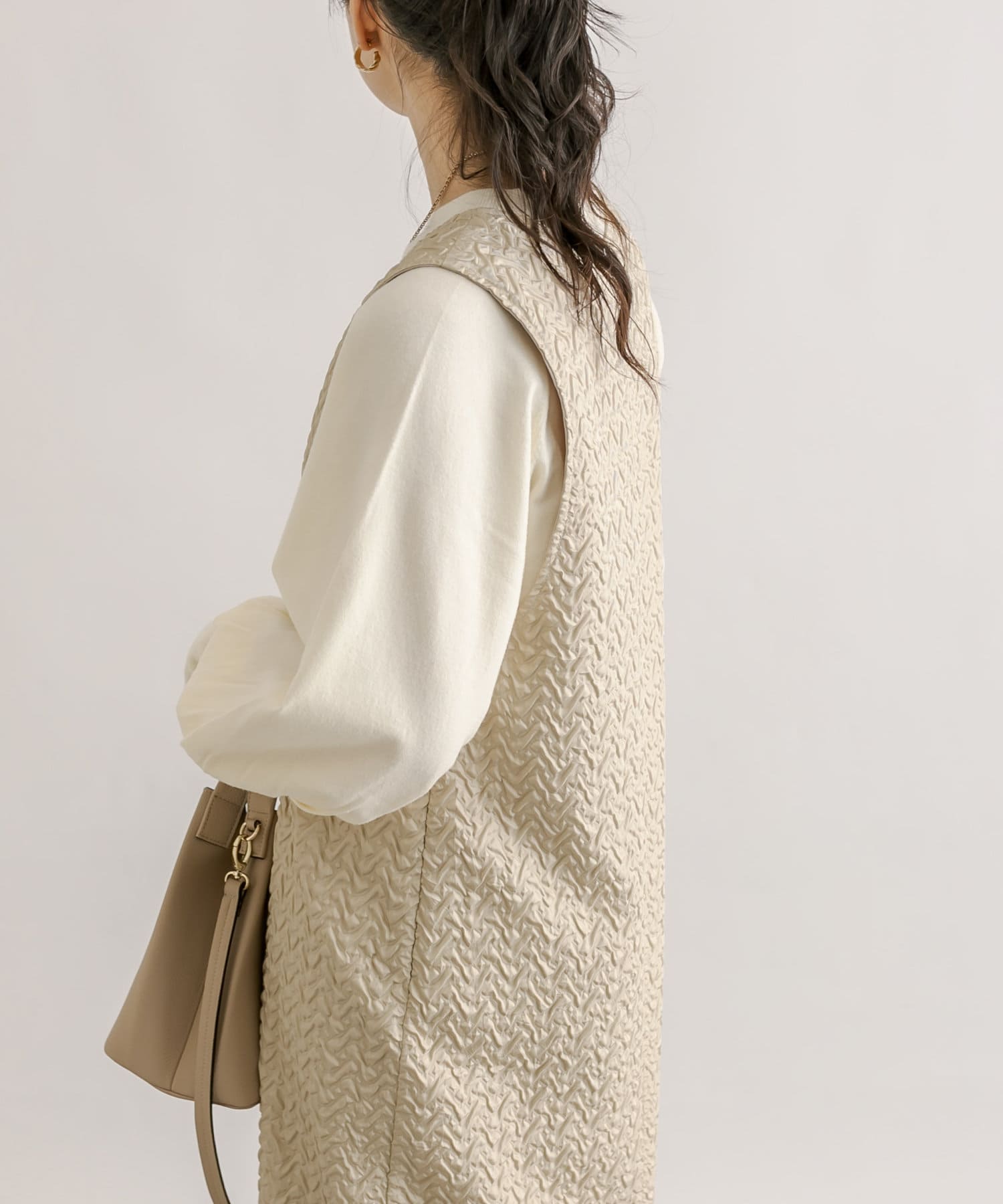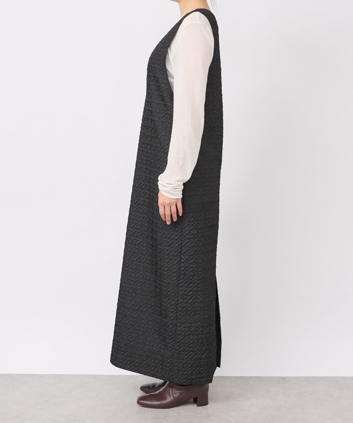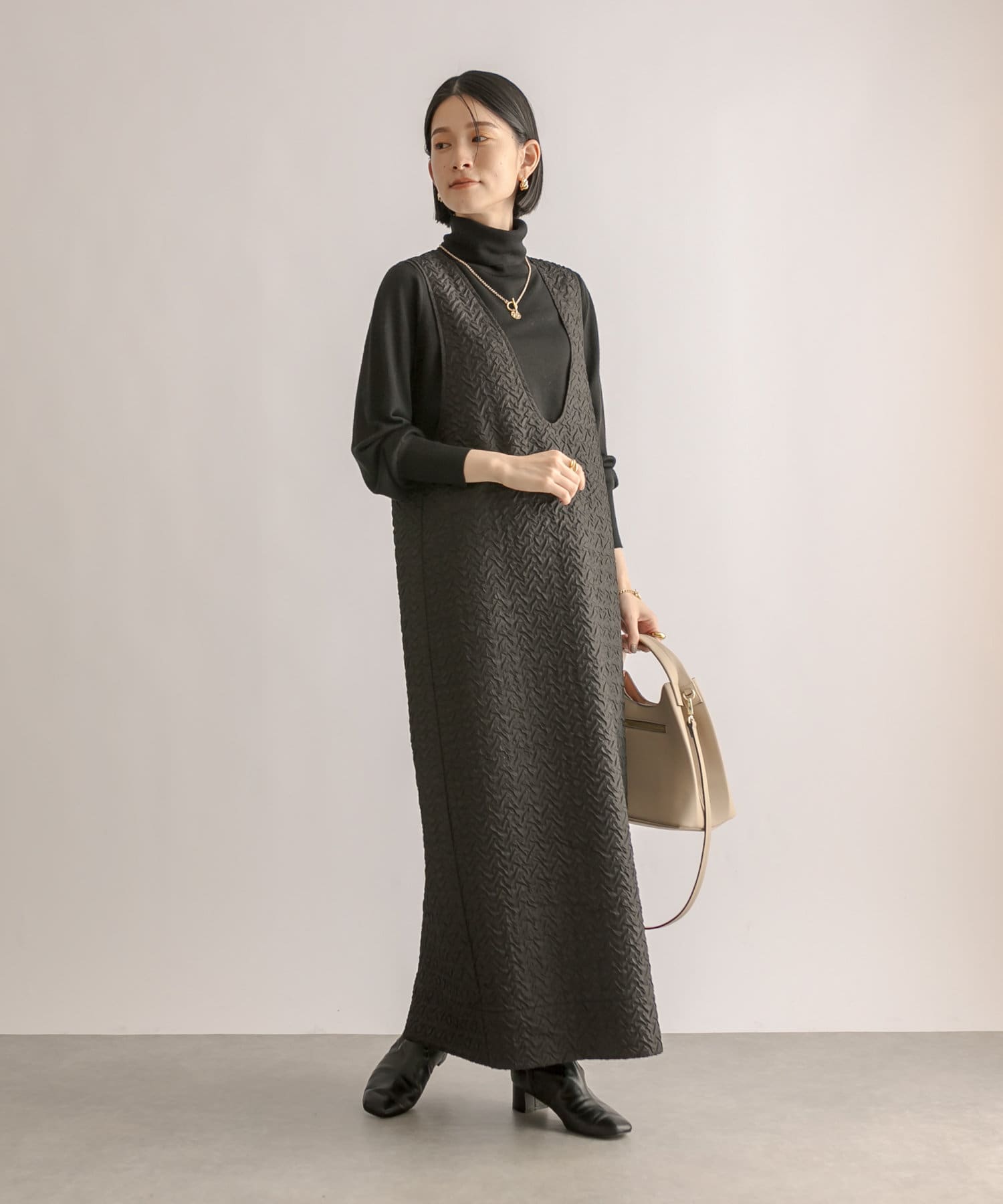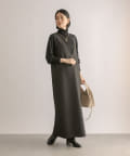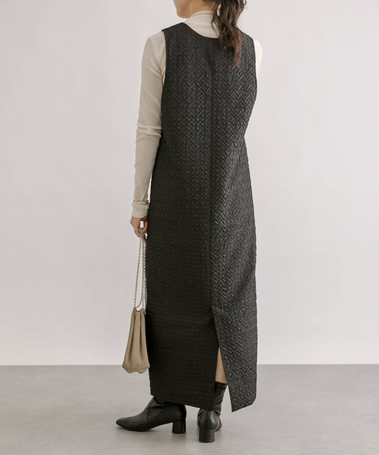 ポコポコした素材感が着映えするシンプルなIラインワンピース。
