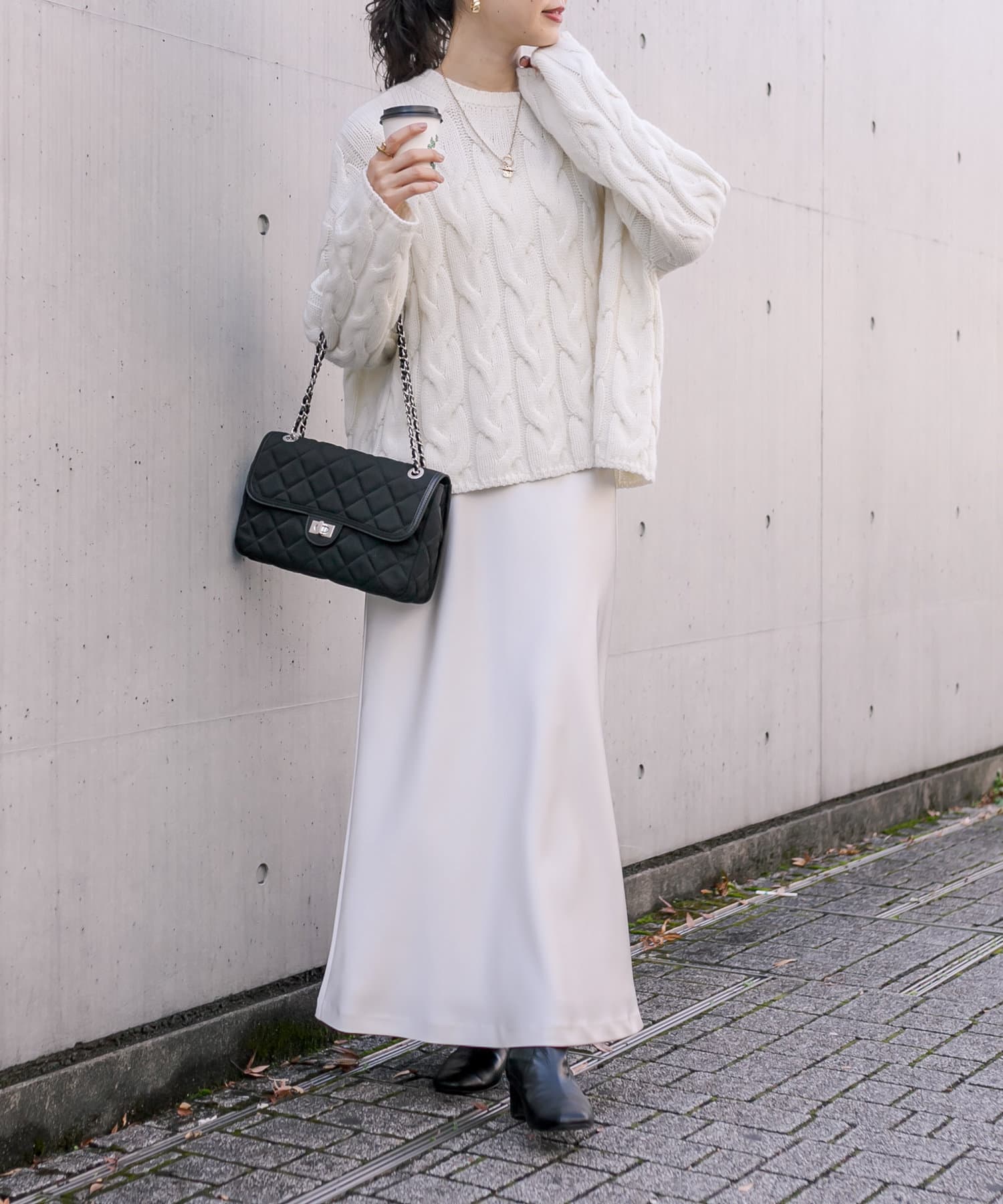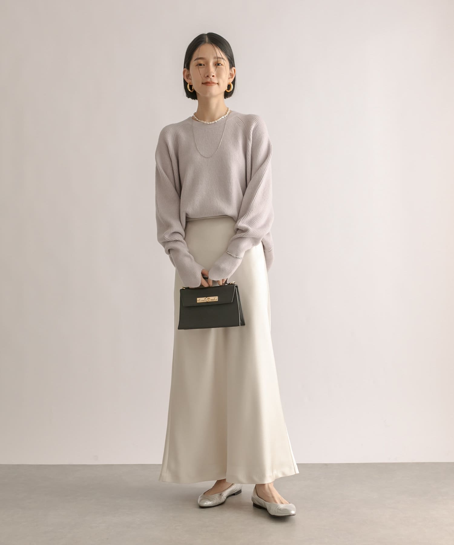 滑らかな光沢感が魅力のサテン生地のスカート。