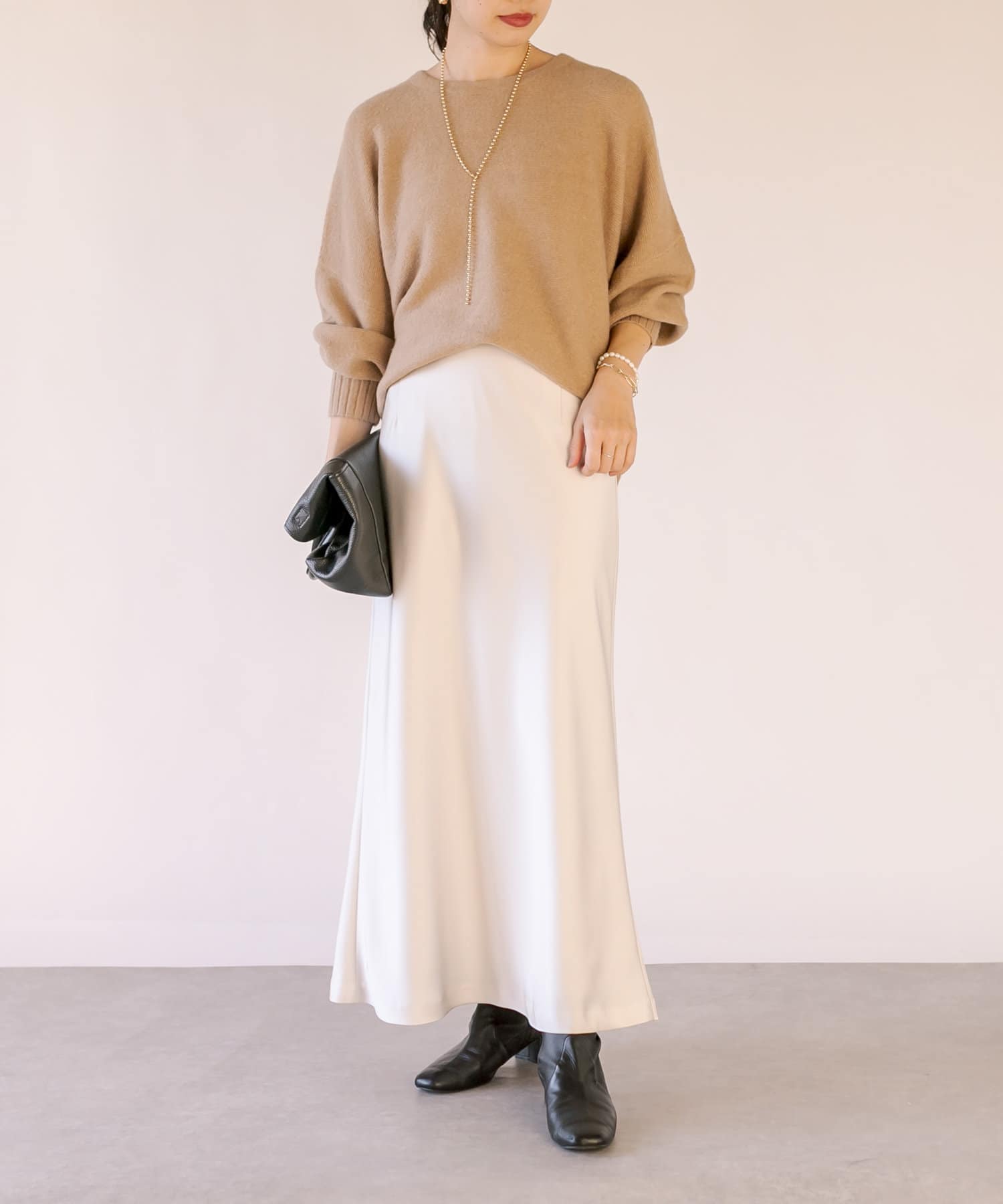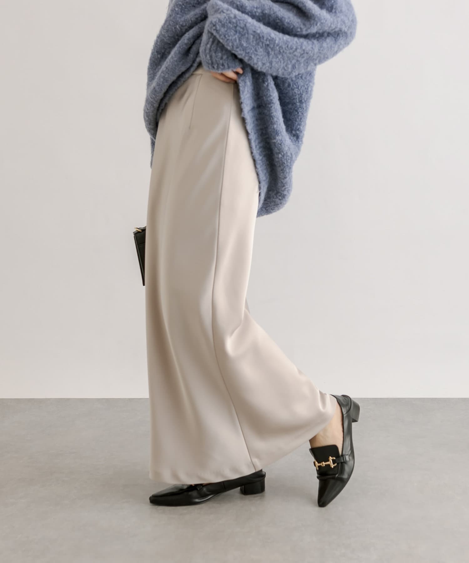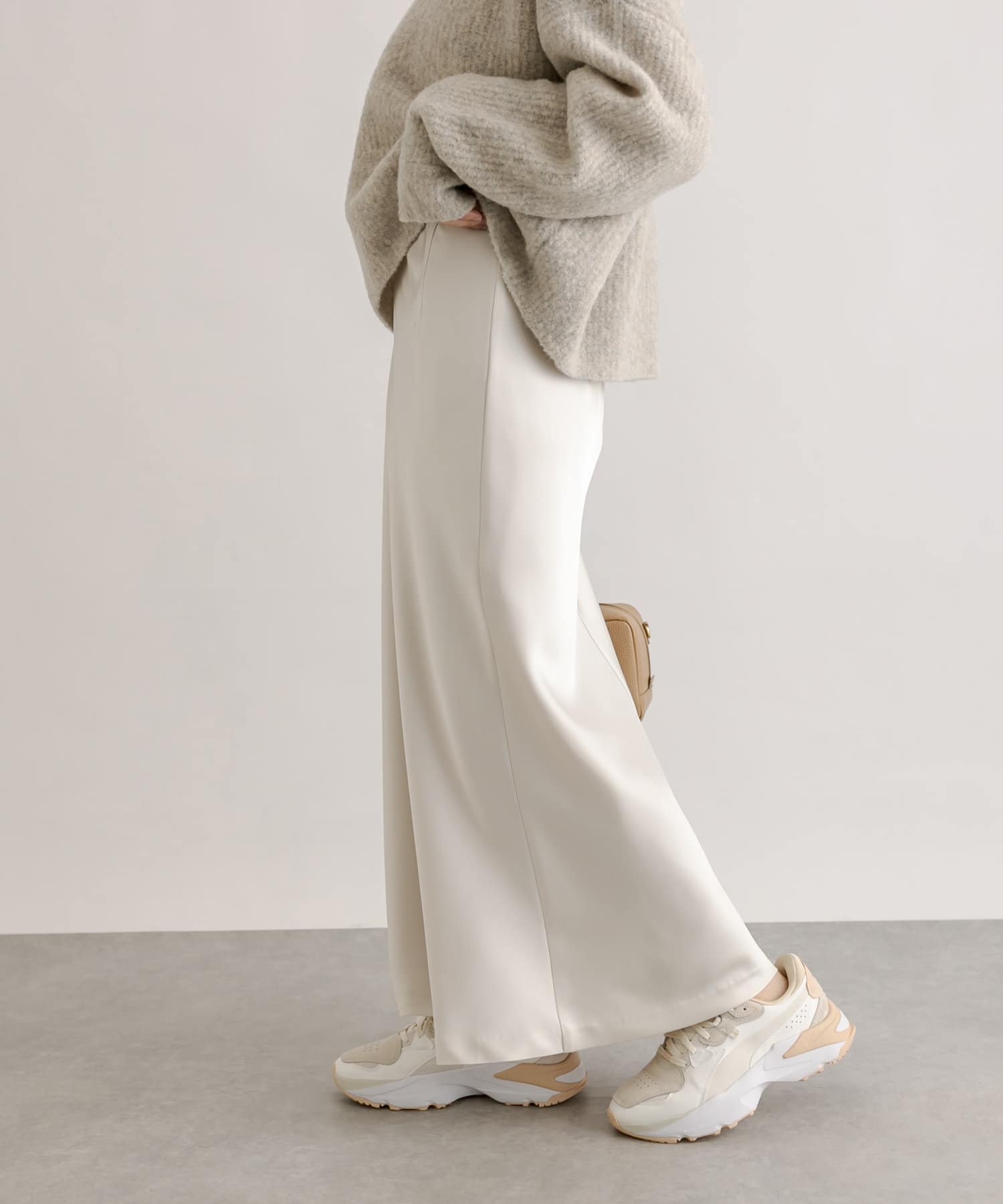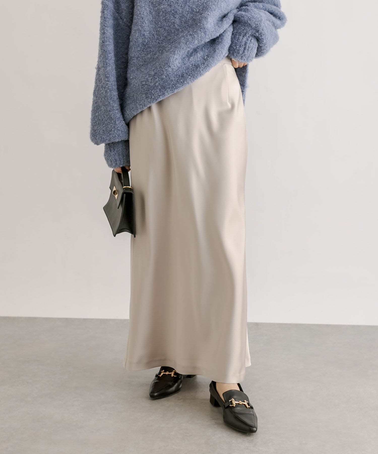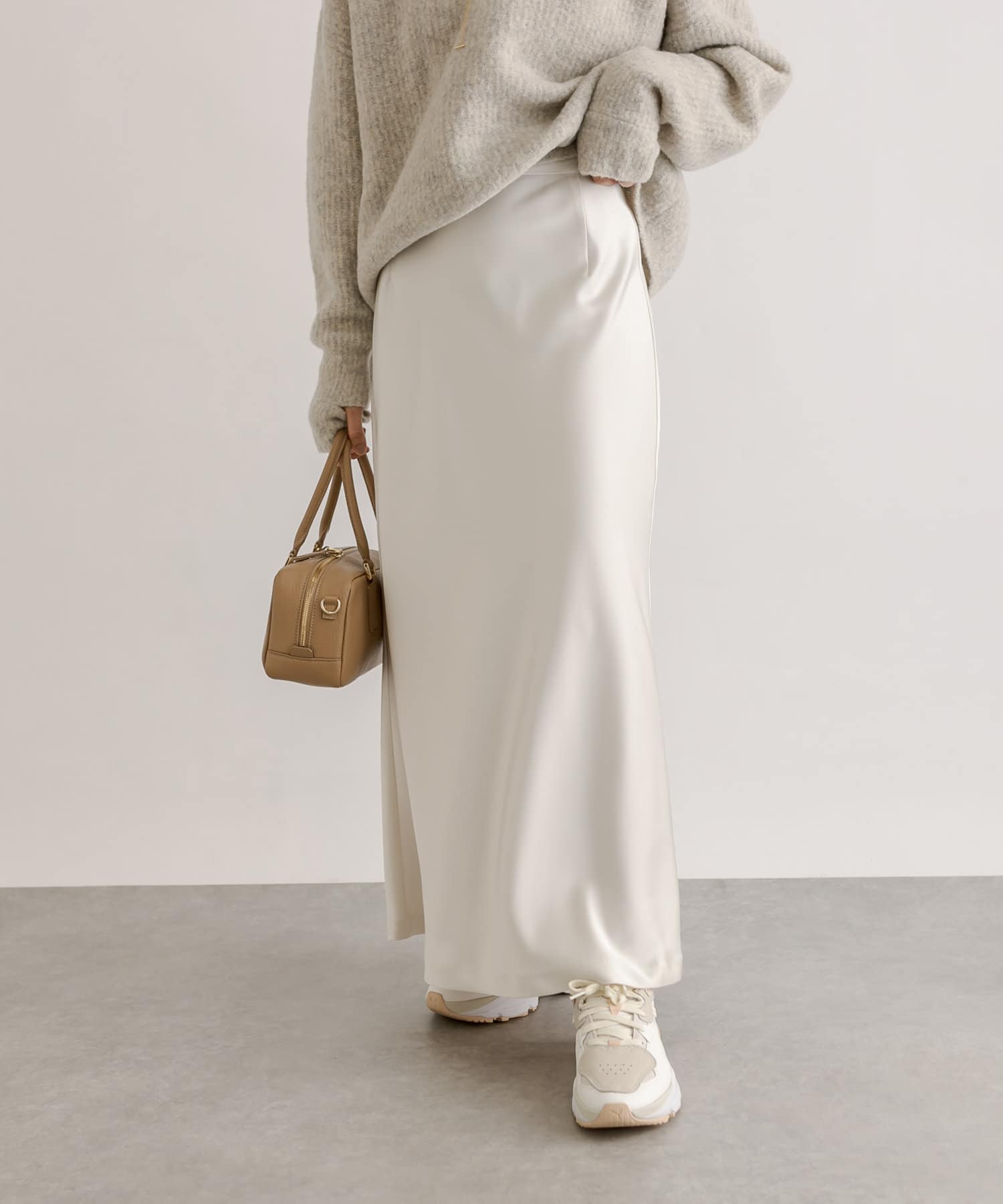 • 滑らかな光沢感が魅力のサテン生地のスカート
