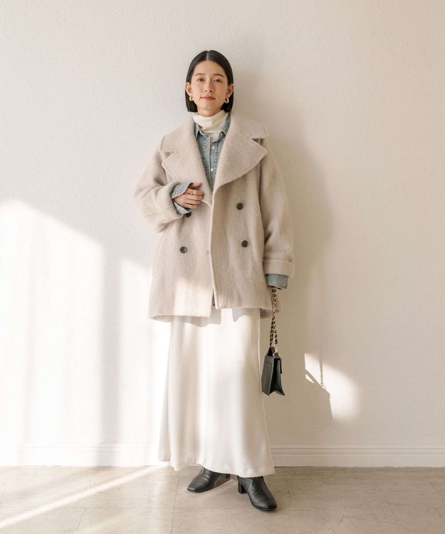 落ち感のあるすっきりとしたシルエットで女性らしい着こなしが叶いつつも、タイトすぎないため動きやすく、デイリーにも使いやすい一着。