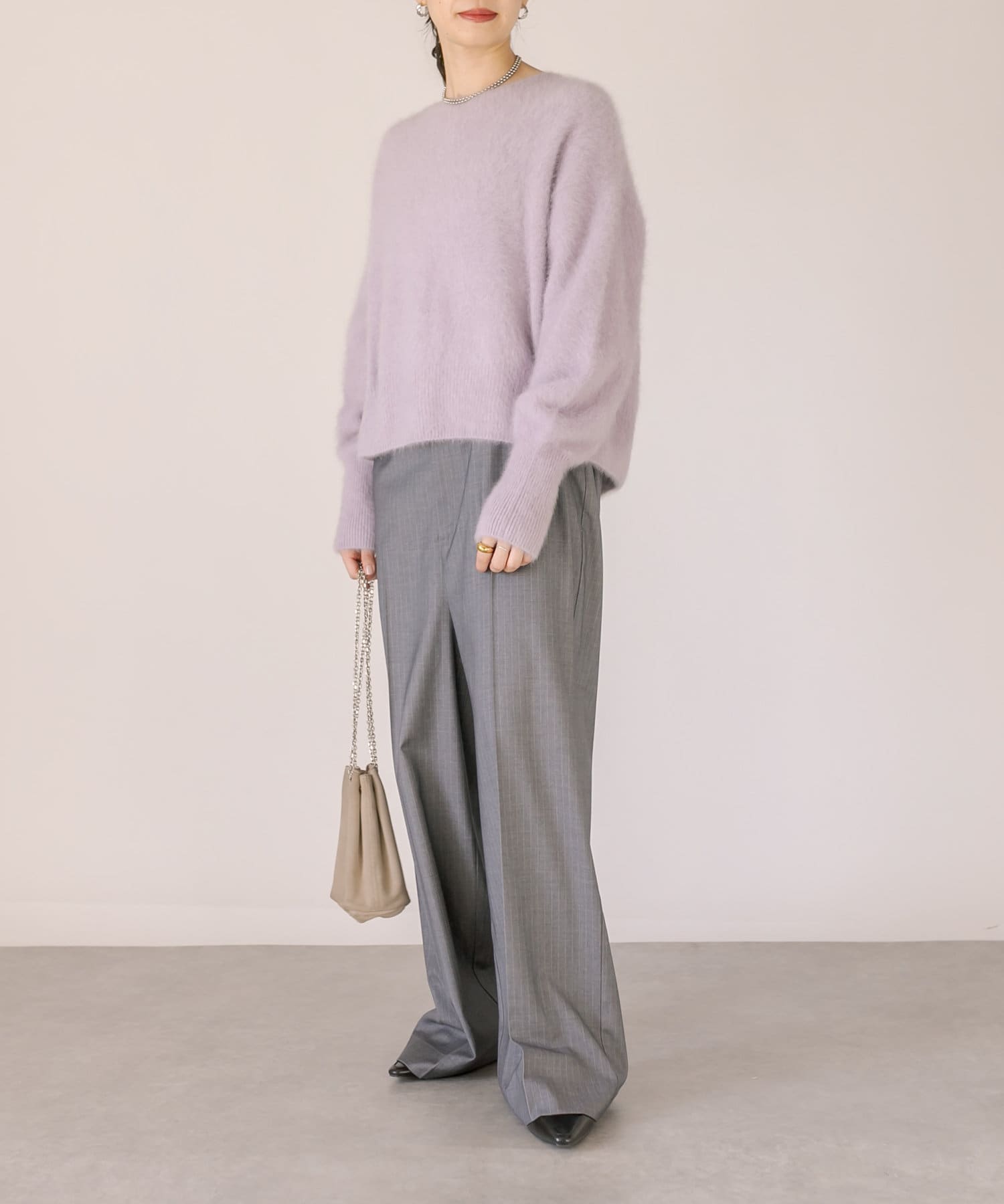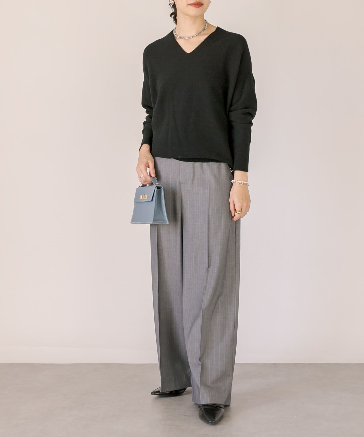 ニットと合わせてもカジュアルになりすぎず、シルエットを楽しめるようウエストやヒップも大きめの作りになっているため脱ぎ着も楽ちん。