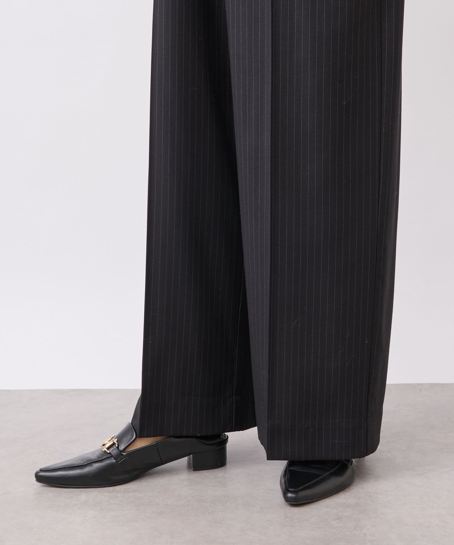 マニッシュなピンストライプでコーディネートのアクセントになるアイテムです。