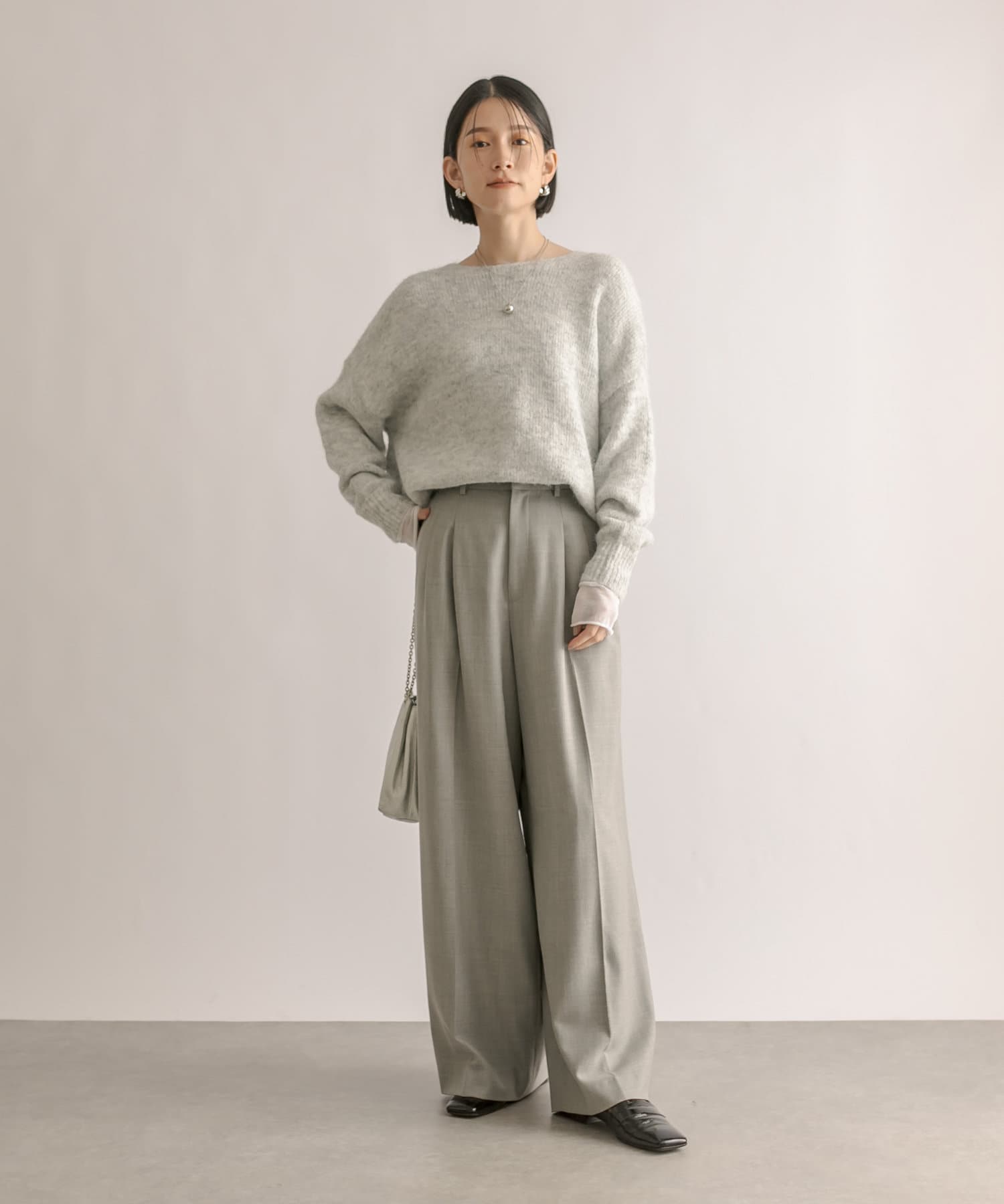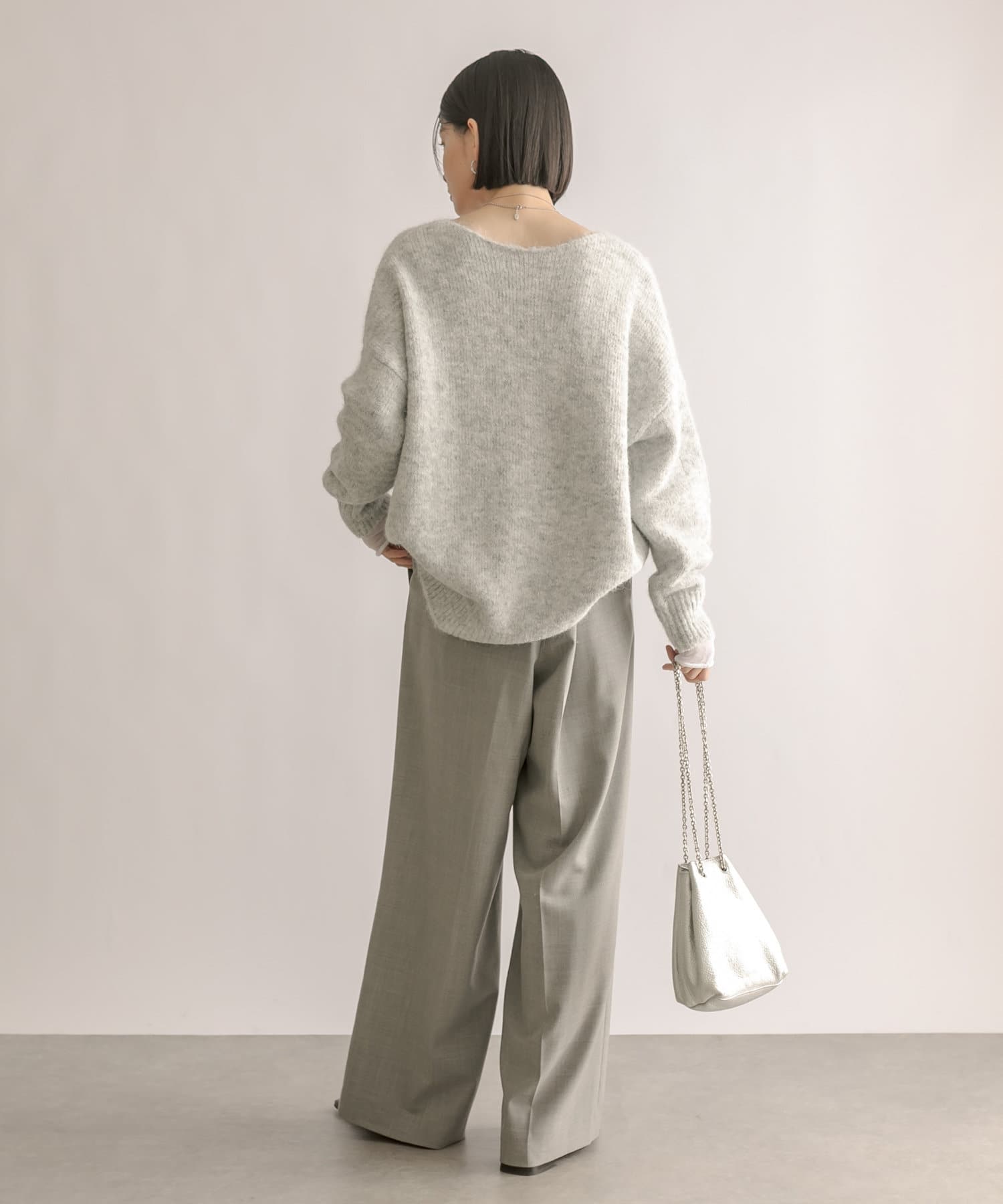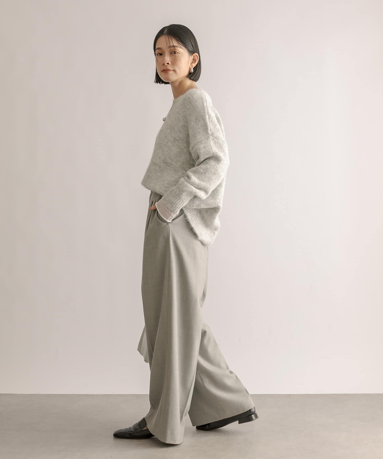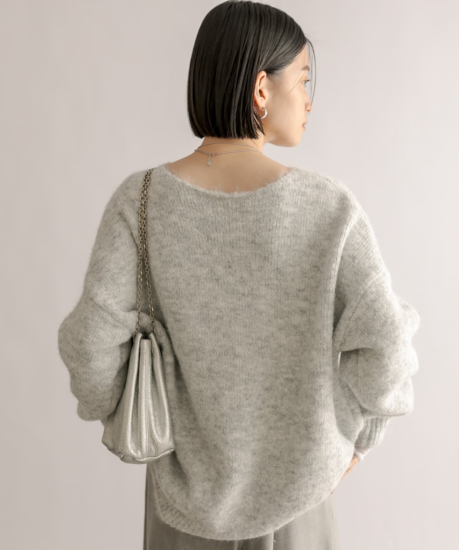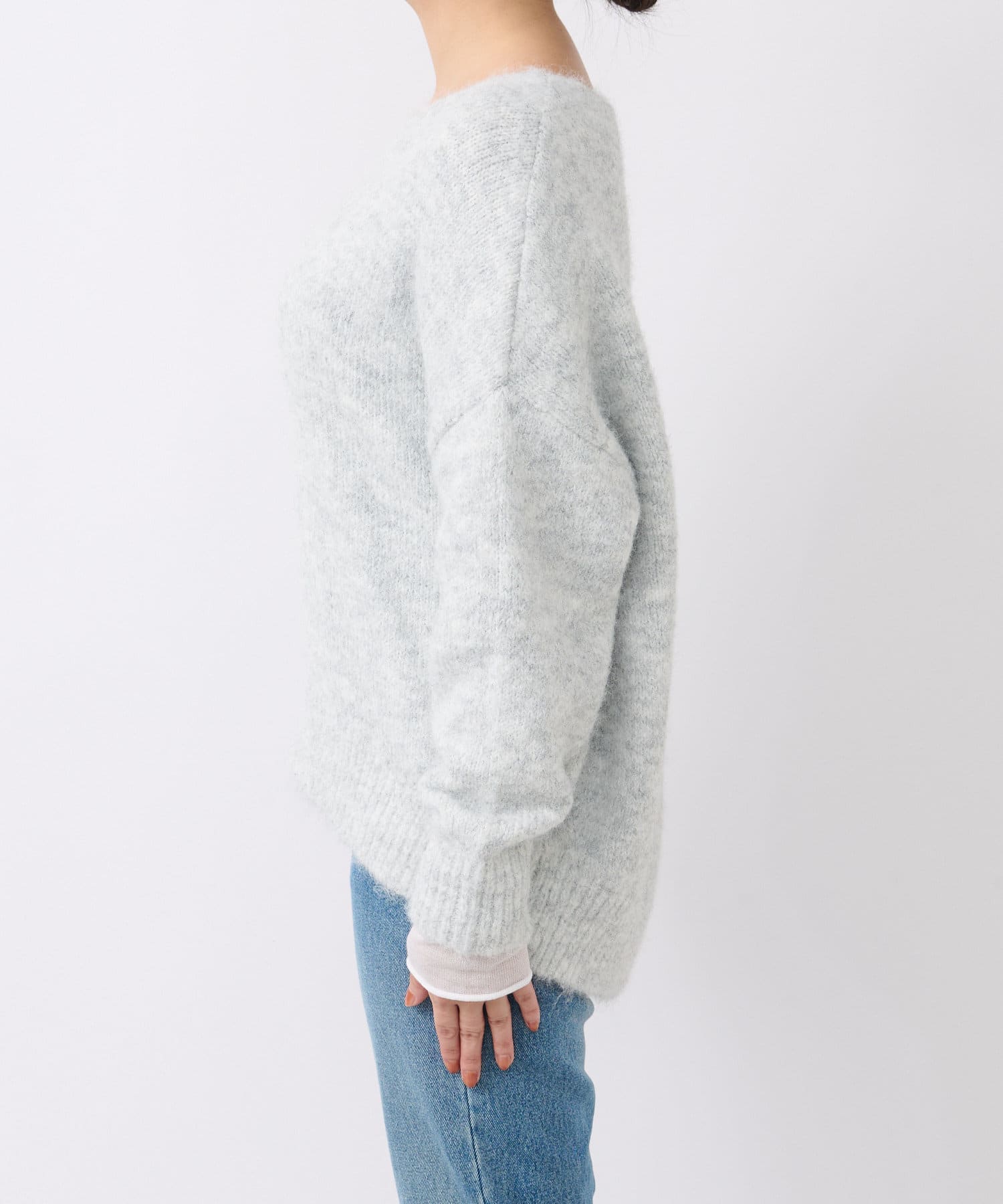 程よくゆったりとしたシルエットで着やすいサイズ感のニット。