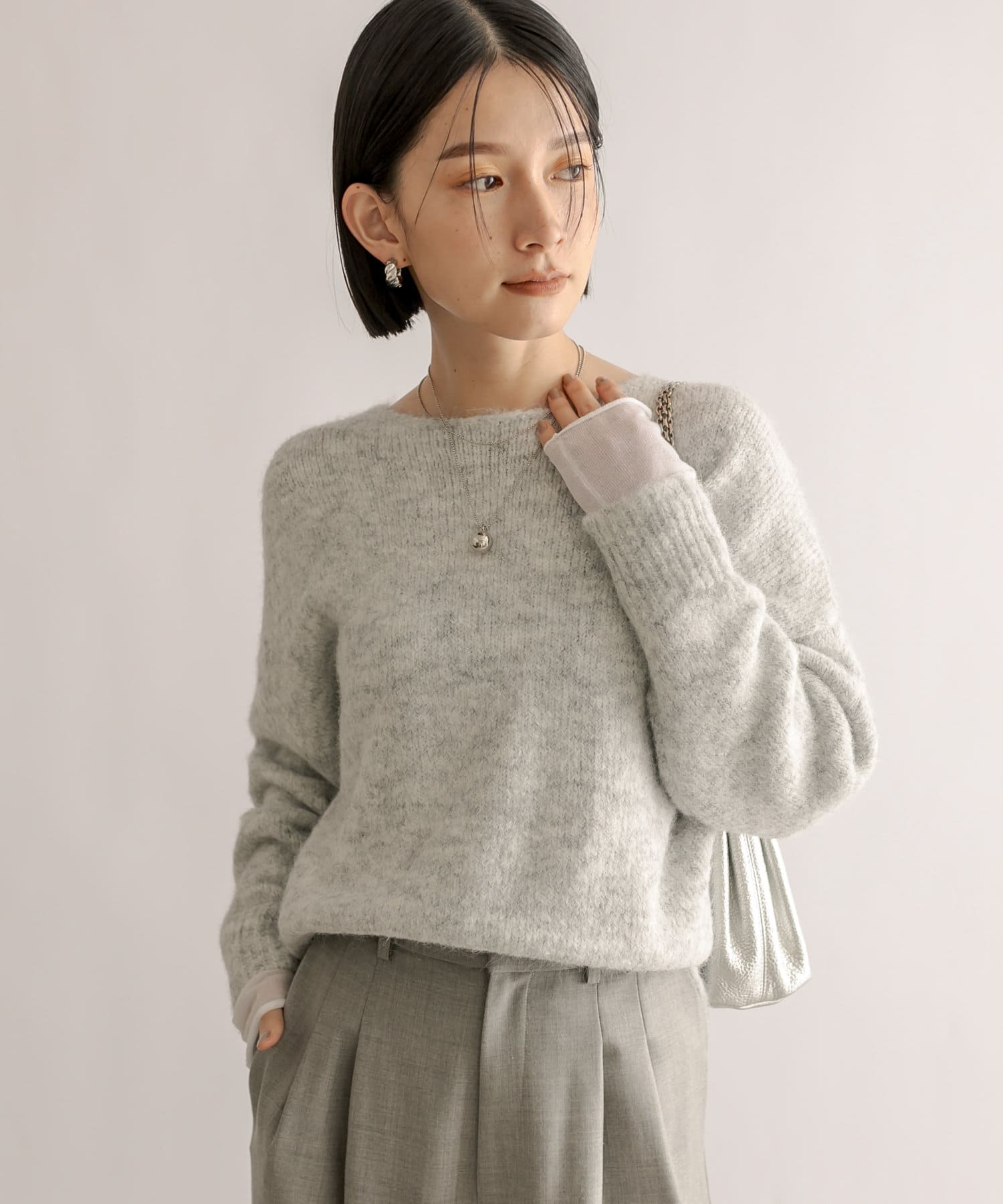 • レイヤード風の袖がポイントの華やかニット