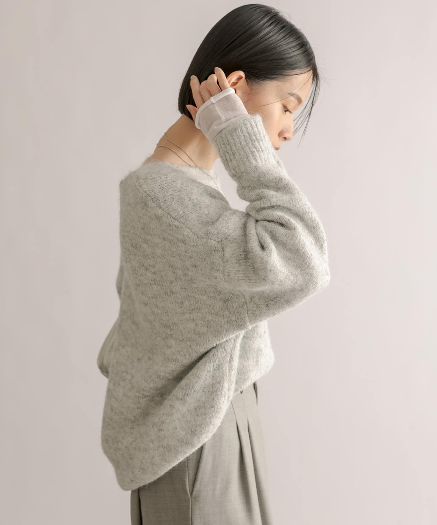【袖のデザインがポイント】レイヤードカフスニット