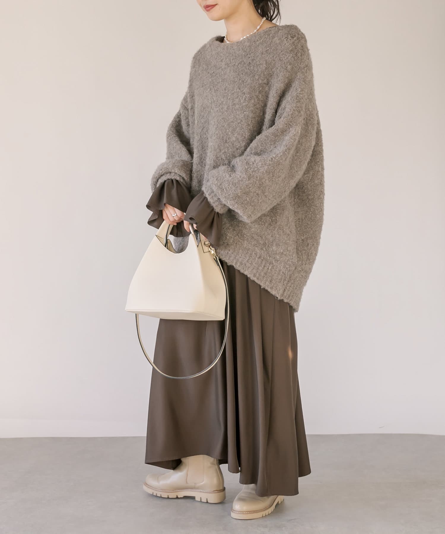 【ゆったり感が可愛い】ブークレーボリュームスリーブニット