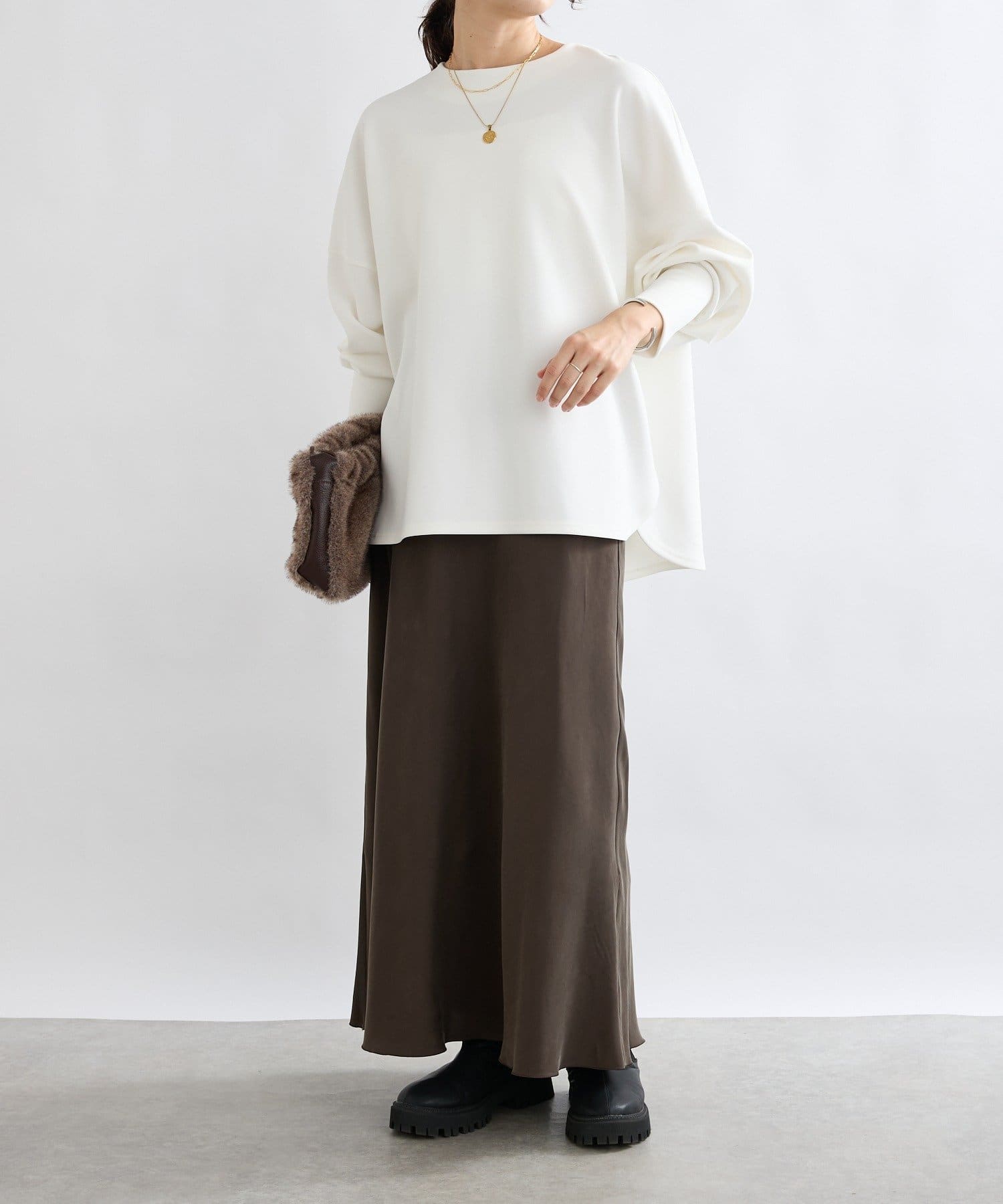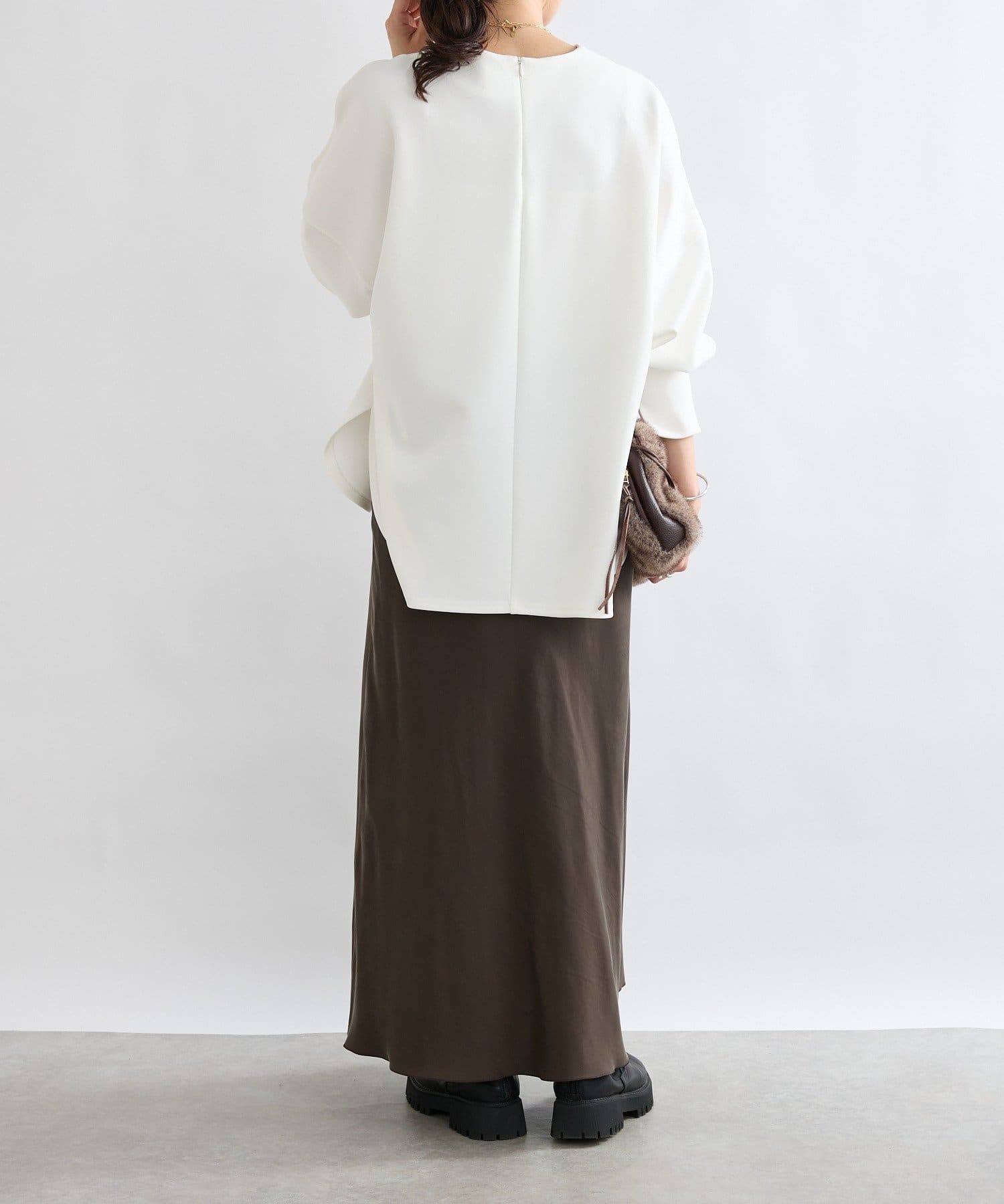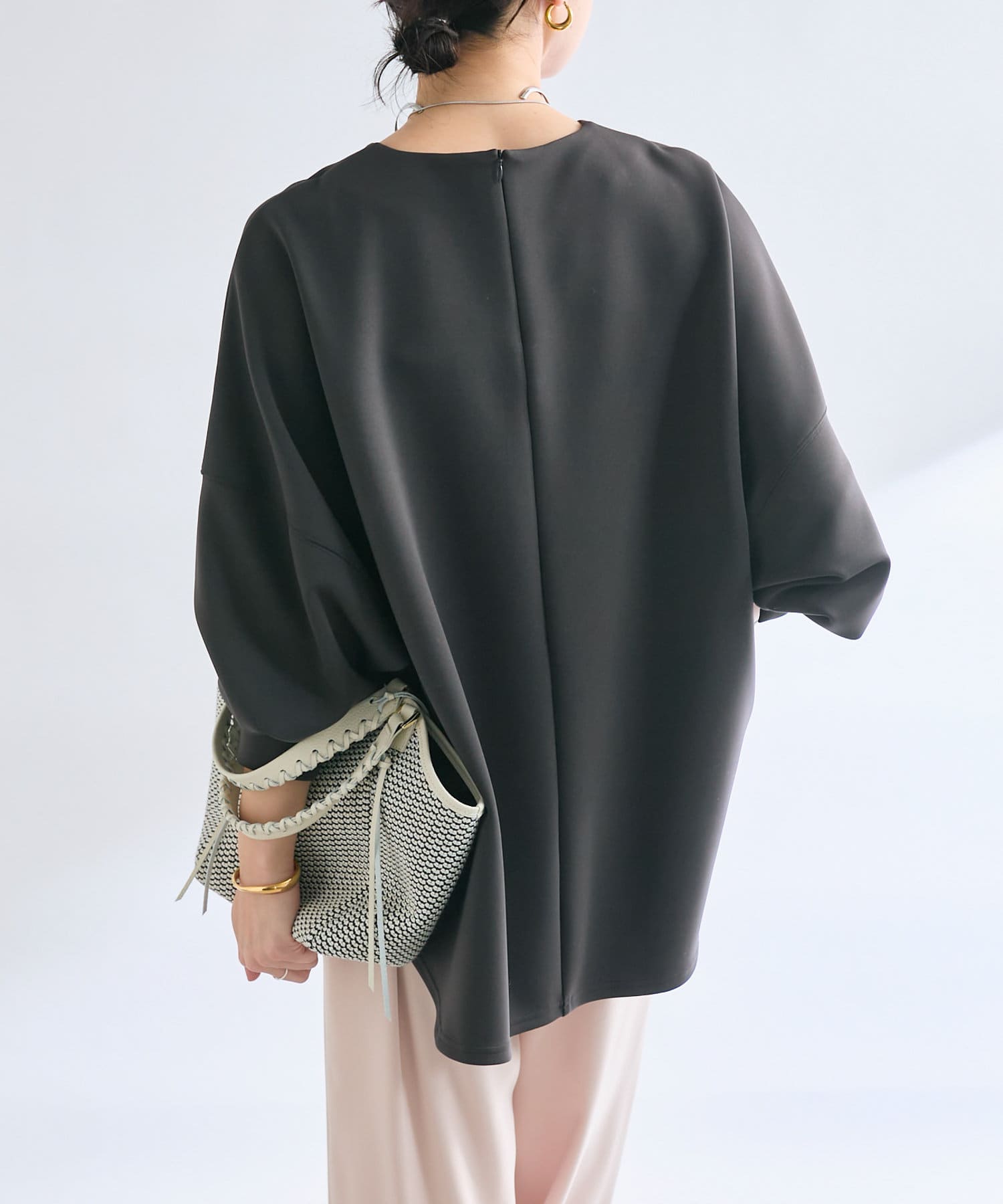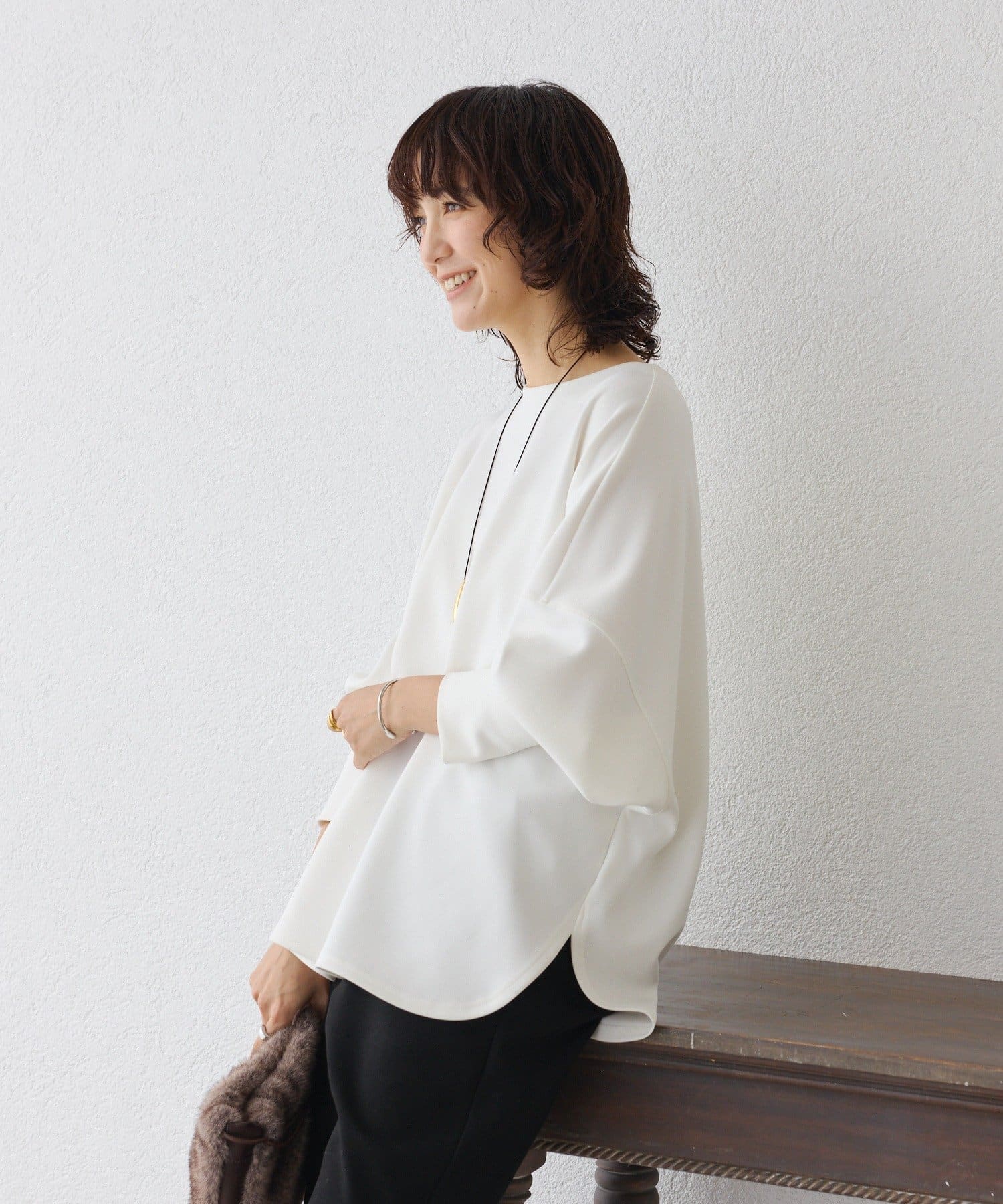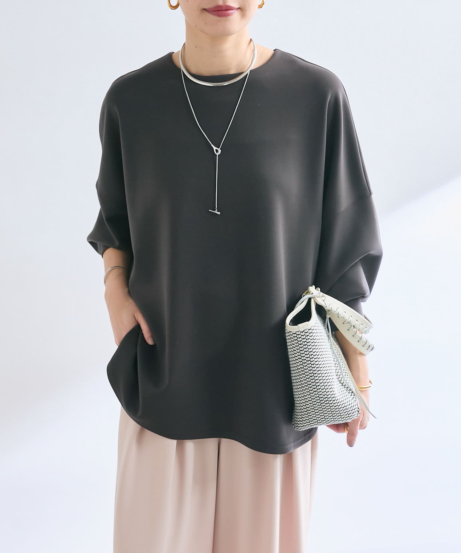 購入場所:店舗生地の艶感が上品で、形がキレイ、体型を拾わずにストンとすっきり見せてくれます。
