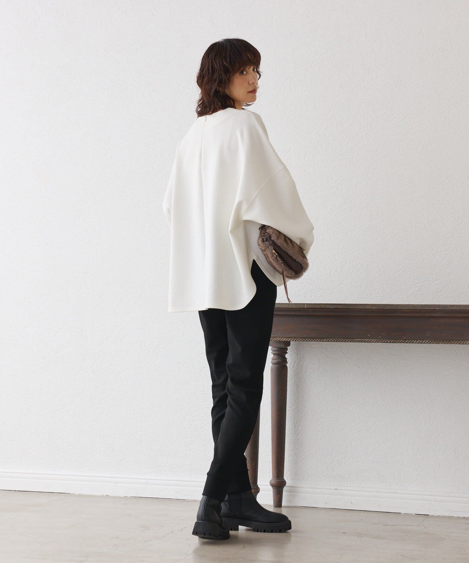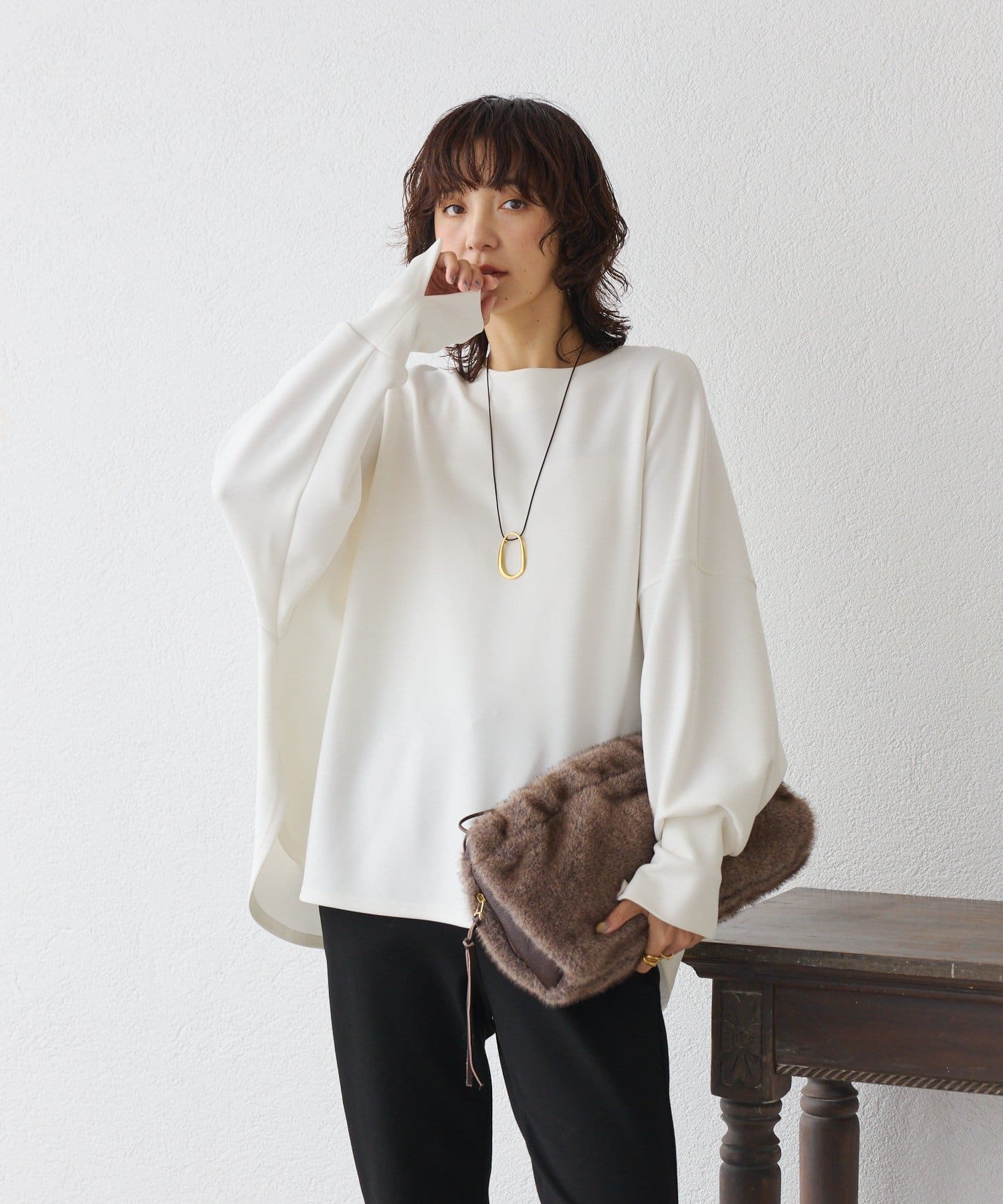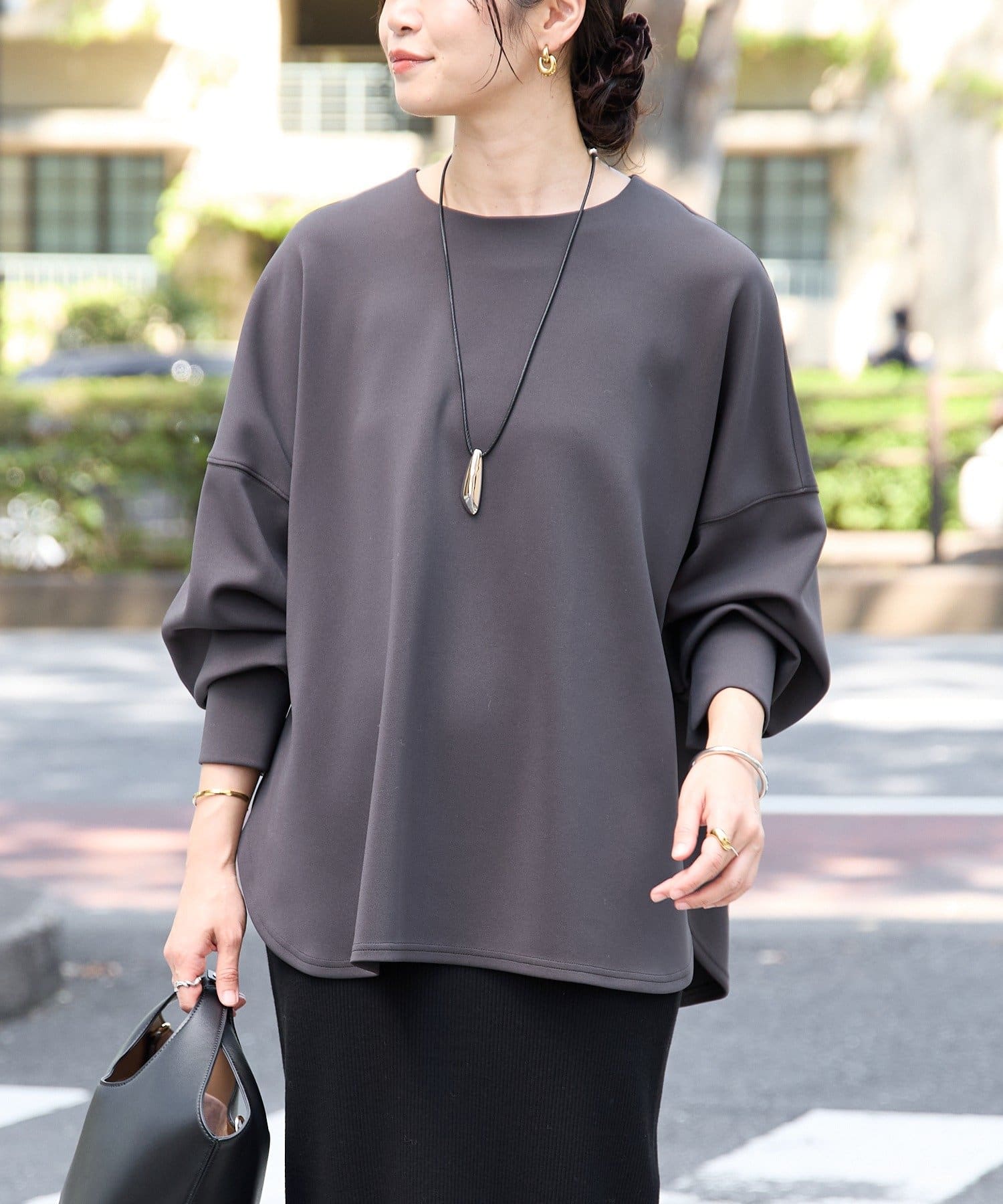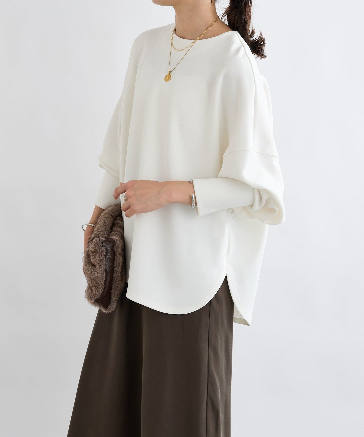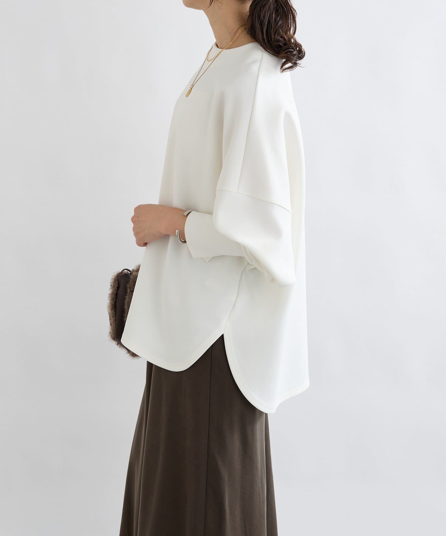 ストレッチ性とふわっと滑らかなダンボール素材を使用したプルオーバー。