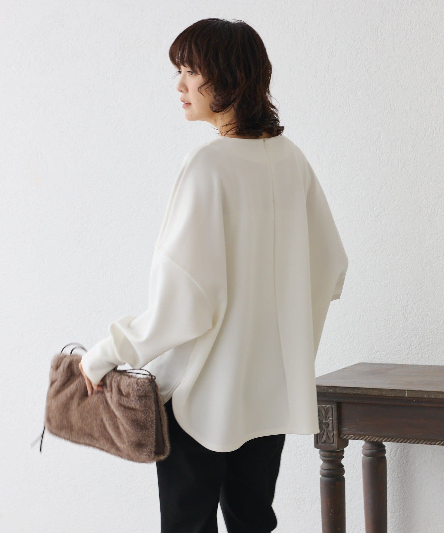 ストレッチ性とふわっと滑らかなダンボール素材を使用したプルオーバー。 -