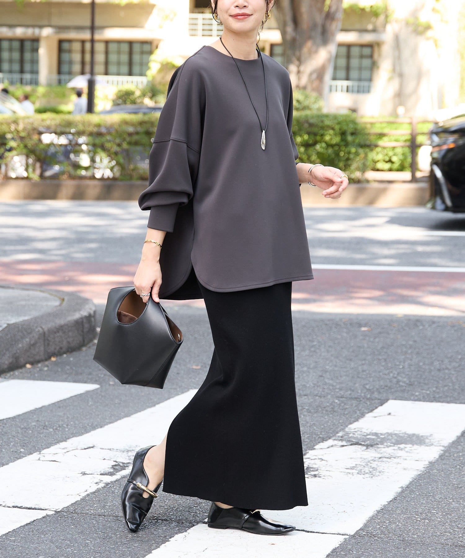 購入場所:パルクローゼット生地の質感が肌に気持ち良く、体のラインも気にならないので出番の多い一着になりそう。