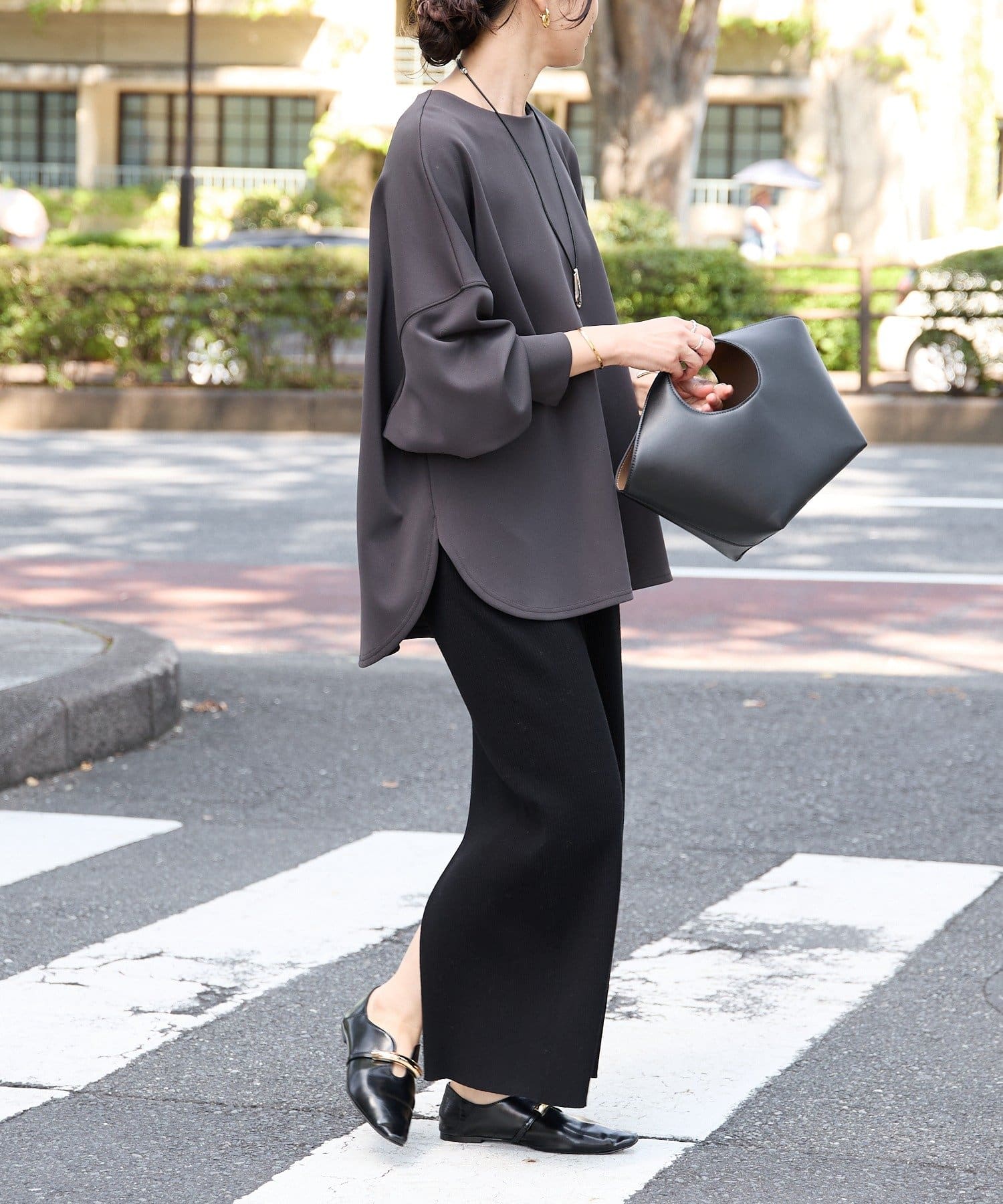 素材もシワになりづらく、やや張りがあるのでカジュアルすぎない雰囲気です。