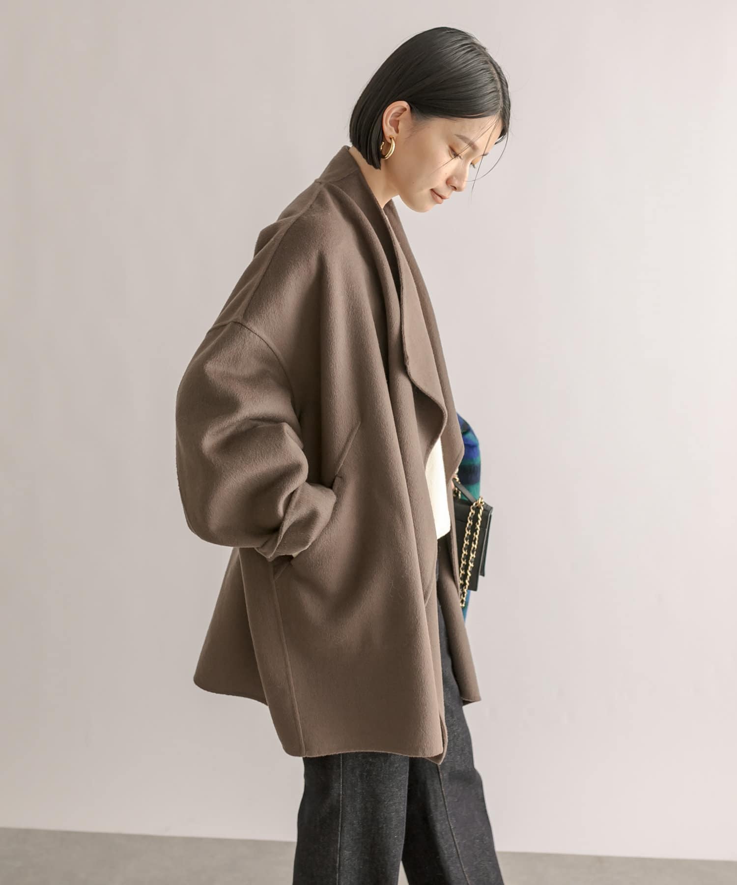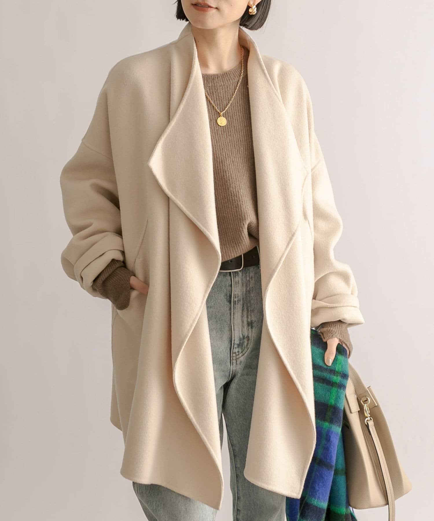 裏地なしで軽やかな着心地ながらも、暖かさもしっかりとあるコート。