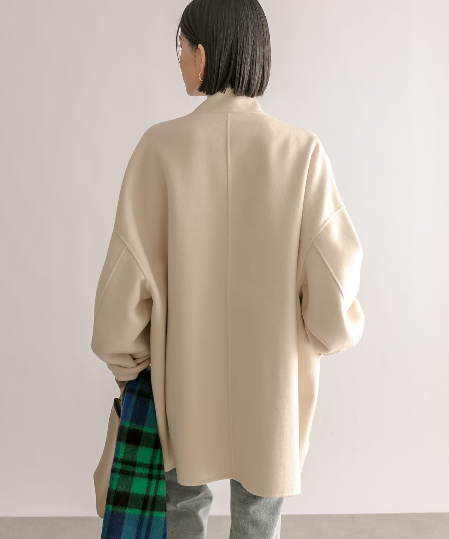 ウール混のやわらかな2枚の生地を1枚として縫い建てた『リバー仕立て』で仕上げたコート。