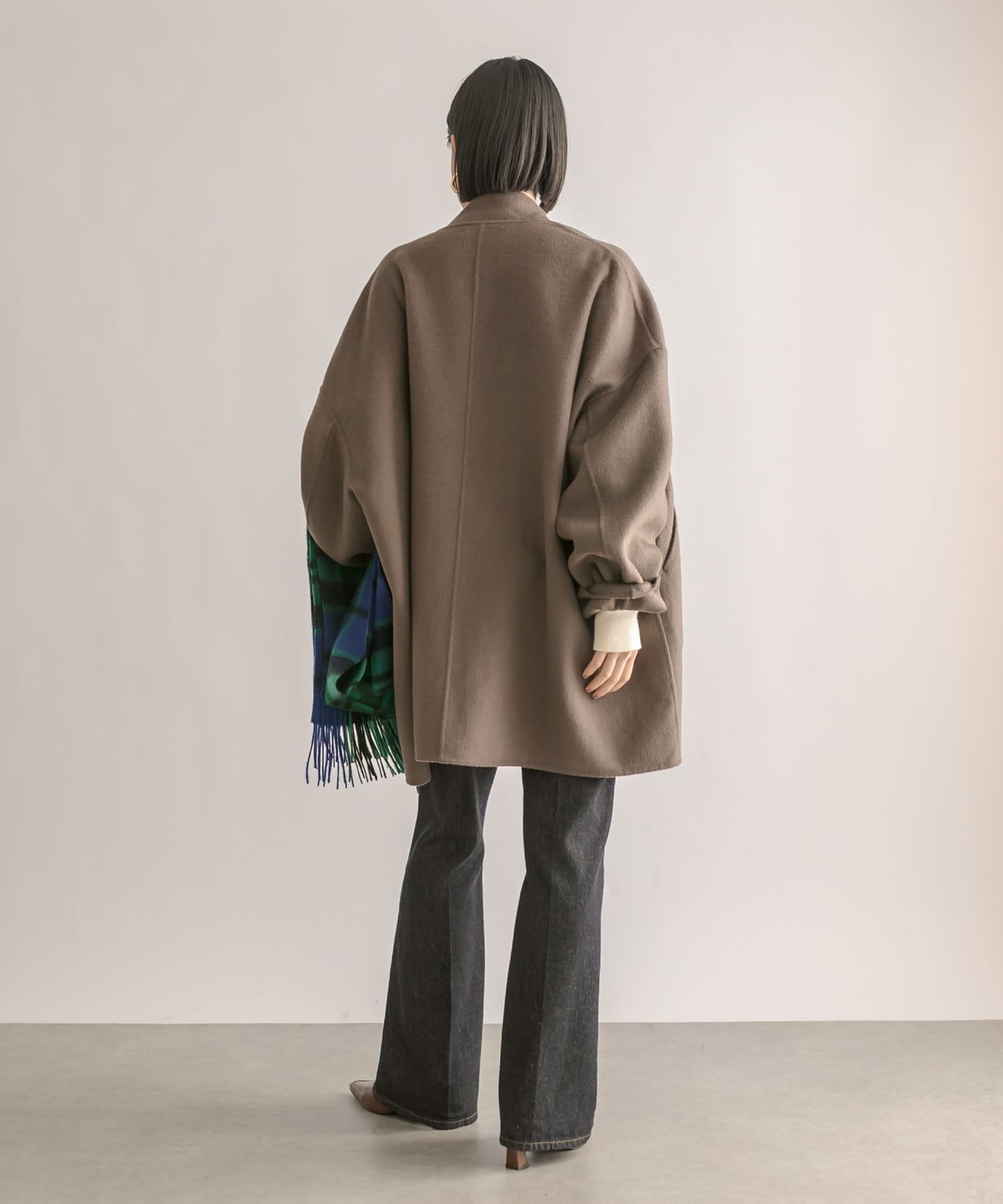 ウール混のやわらかな2枚の生地を1枚として縫い建てた『リバー仕立て』で仕上げたコート。