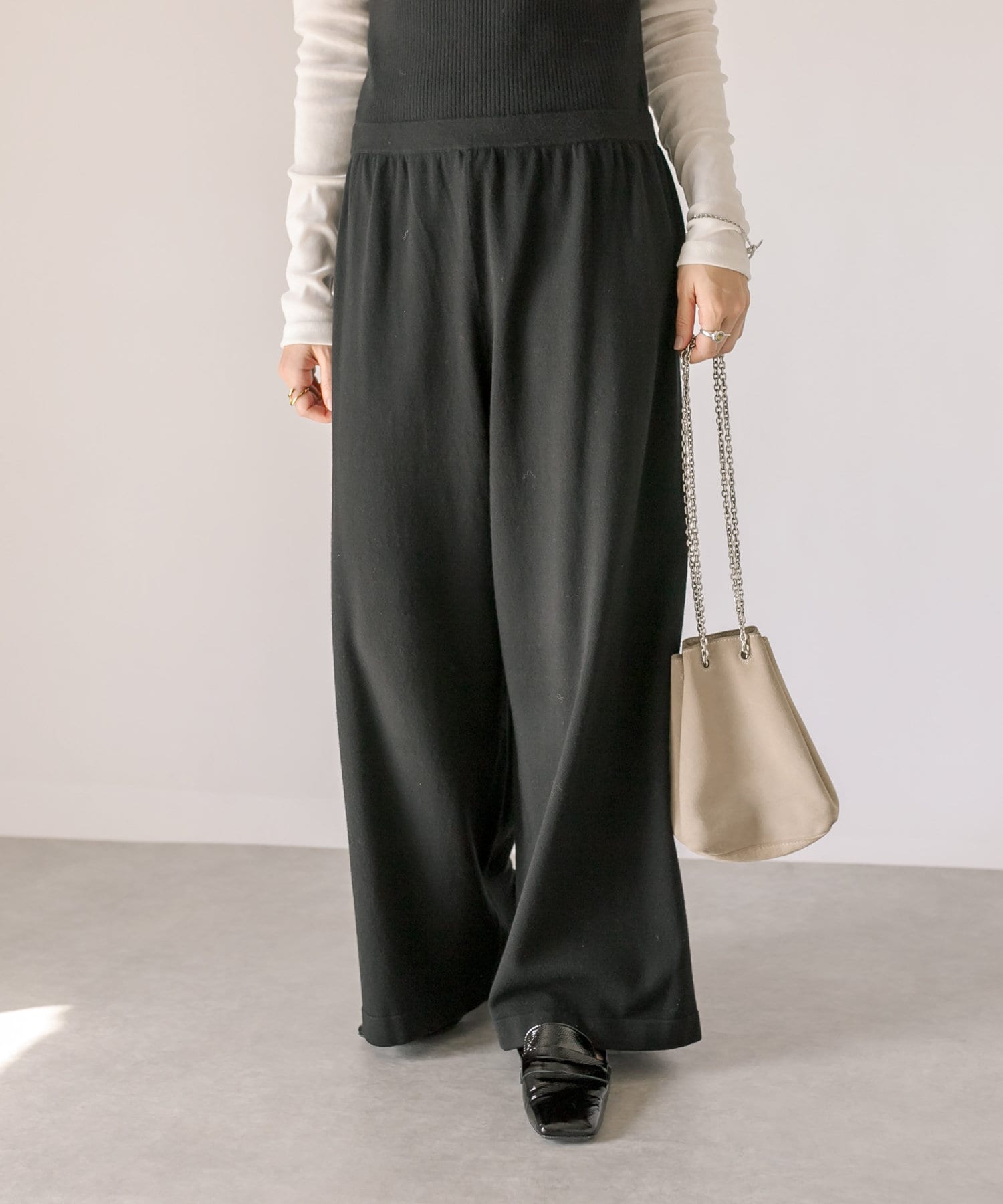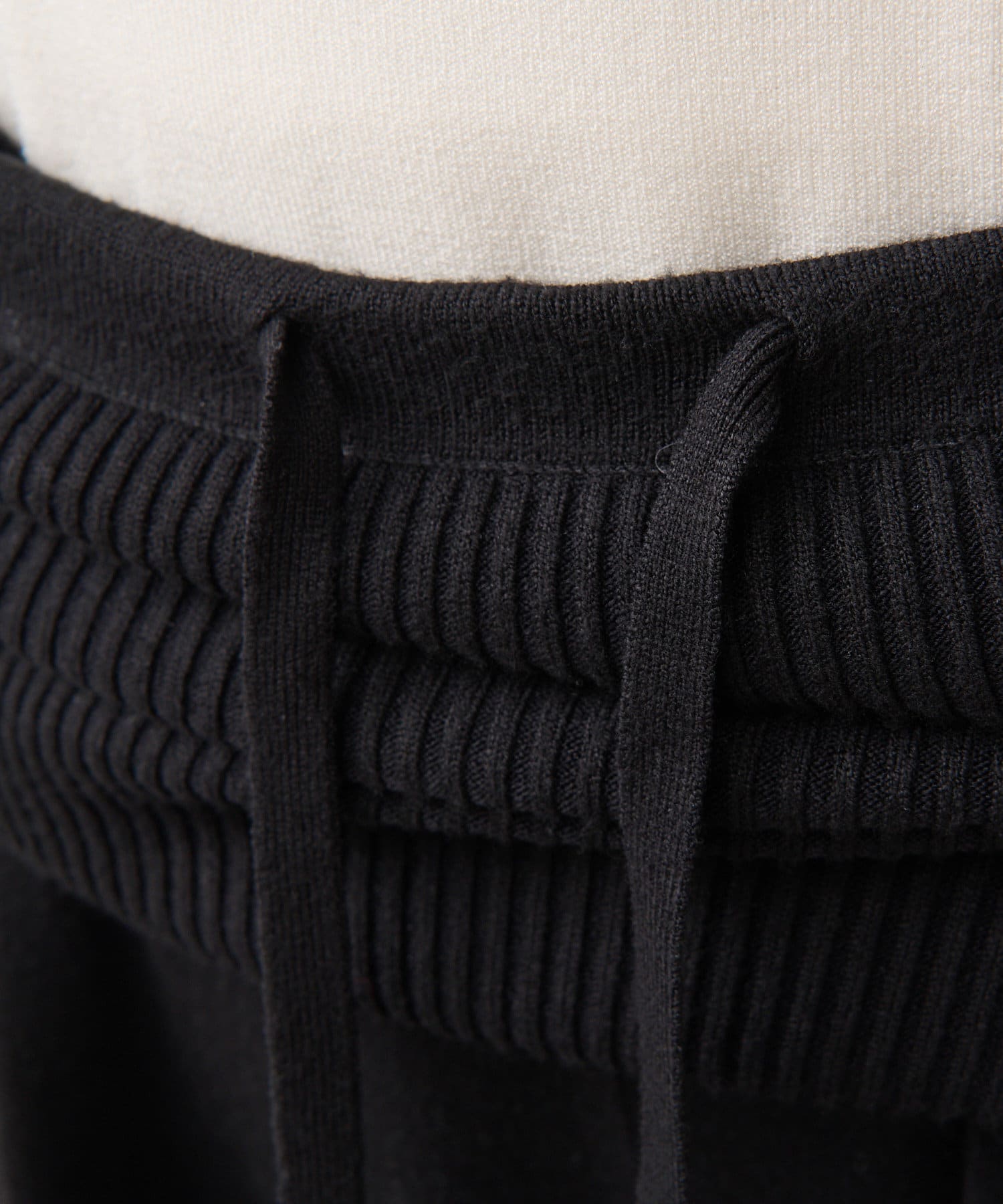 ウエストゴム内側はドロスト仕様になっているため、お好みのバランス感でブラウジングしていただくことで着丈の調節も可能に。