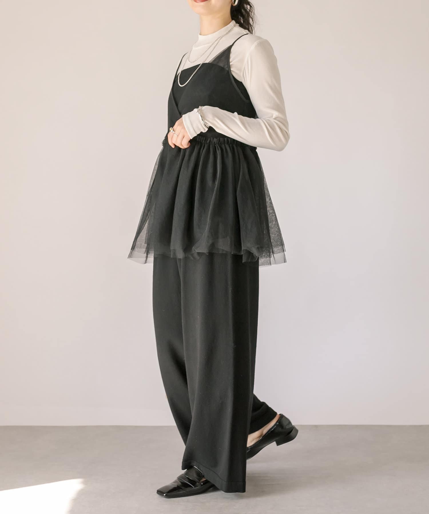 シアー感のあるカットソーを合わせてカジュアルに着こなしたり、ボレロやチュール素材のアイテムをレイヤードしてキレイめに着こなしていただいたりと、合わせるアイテム次第でデイリーから特別なシーンまで活躍するアイテムです。