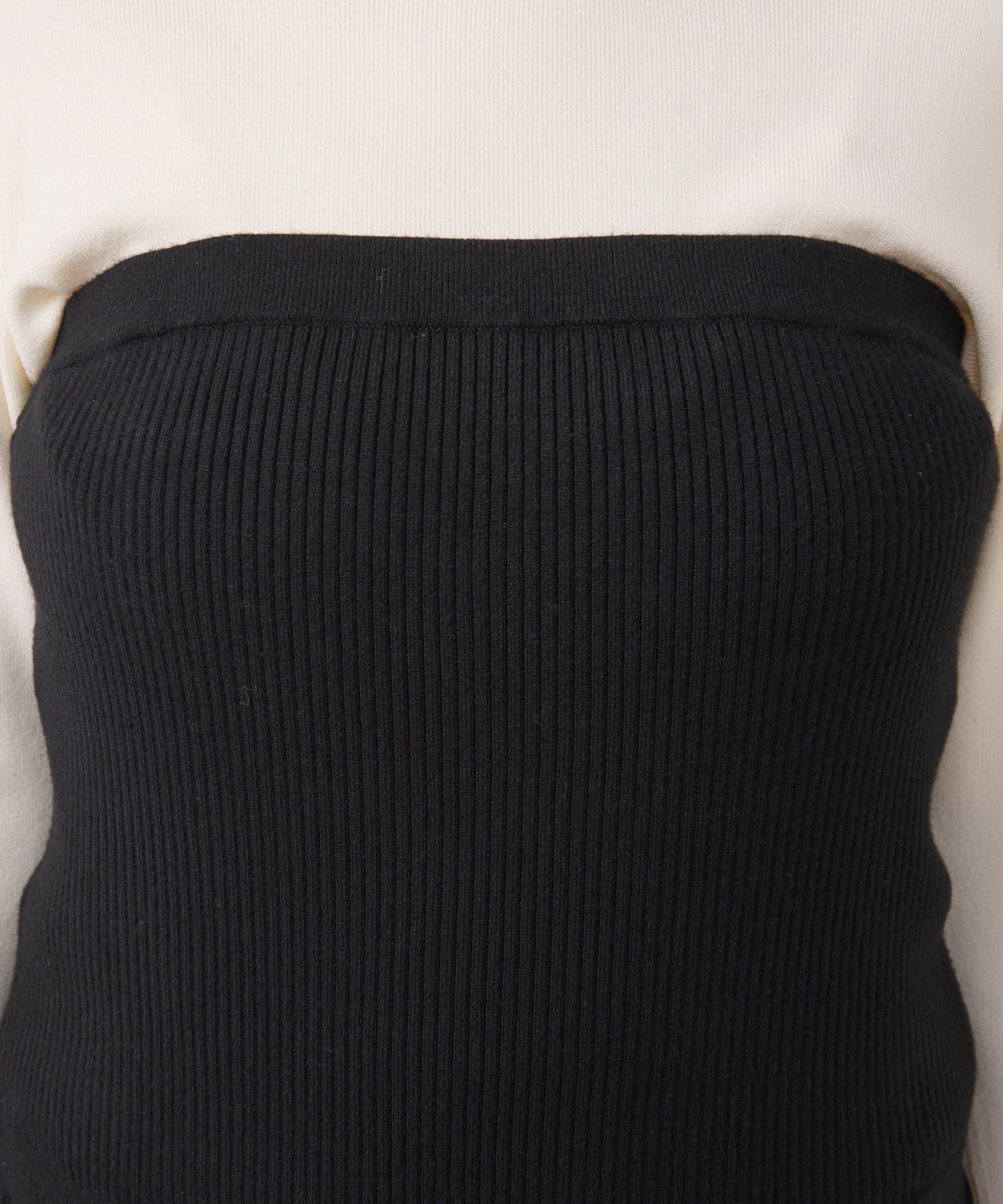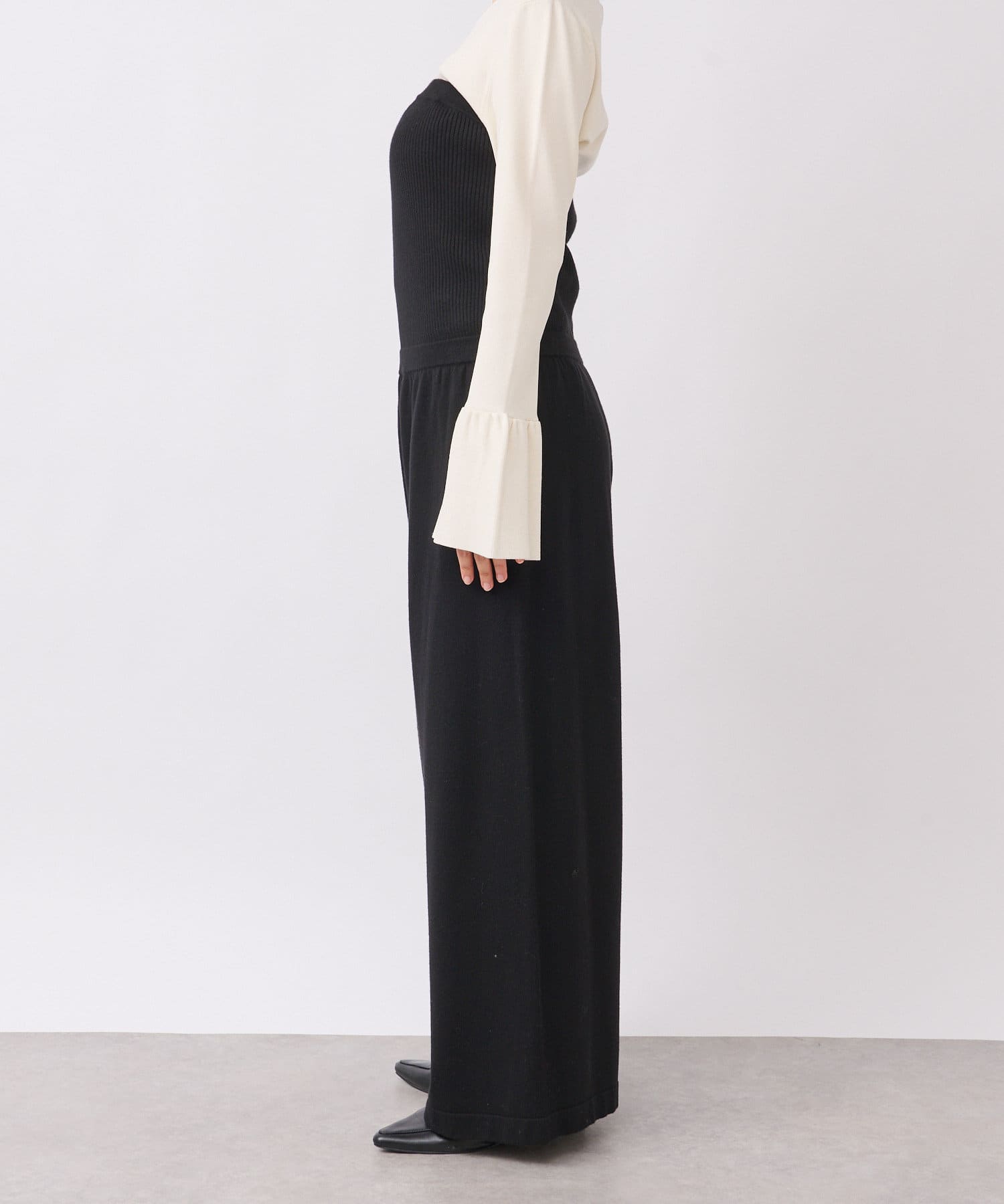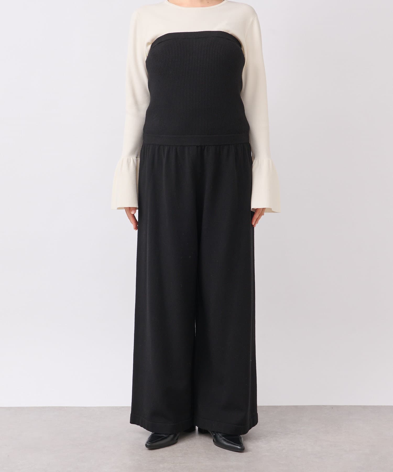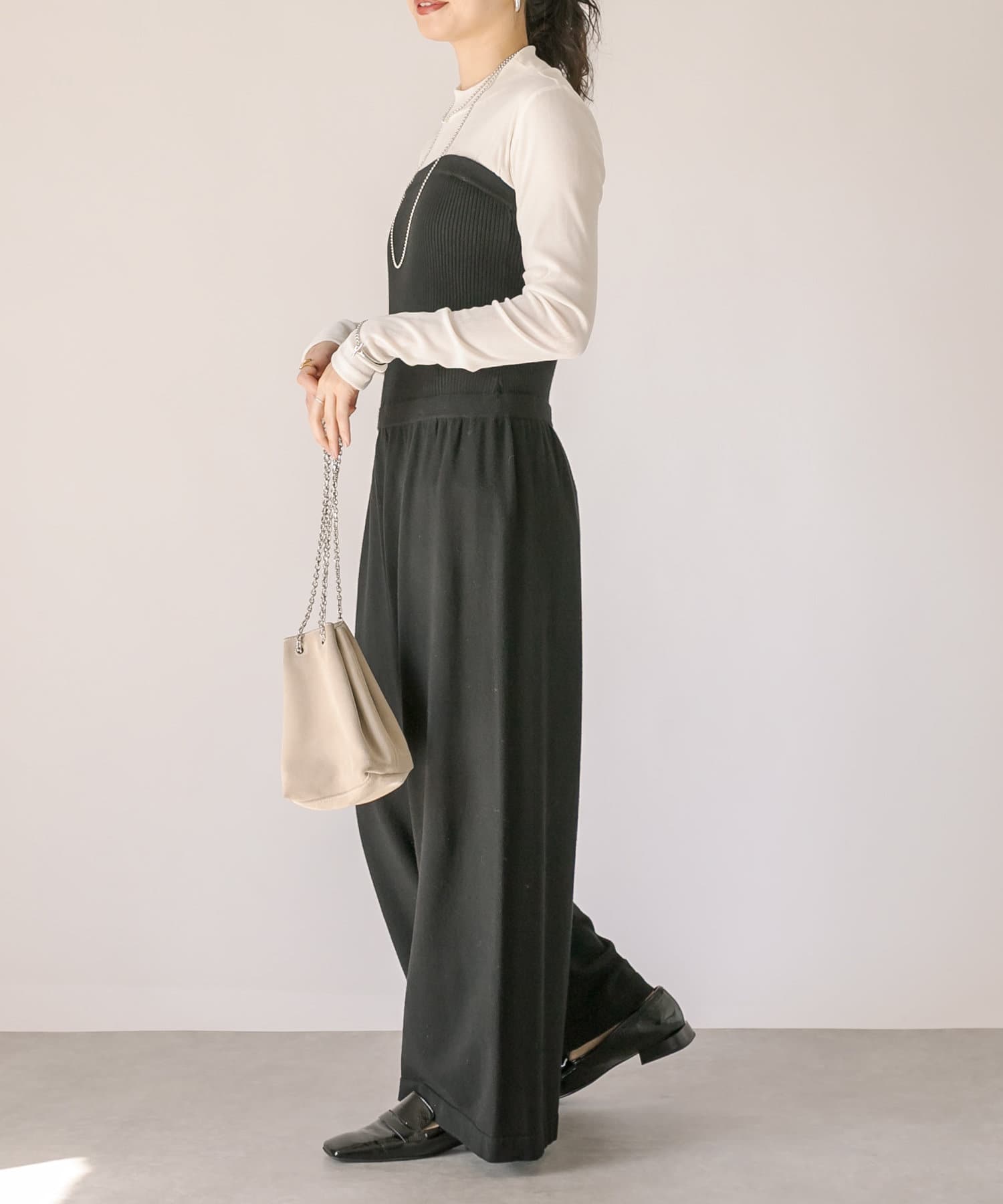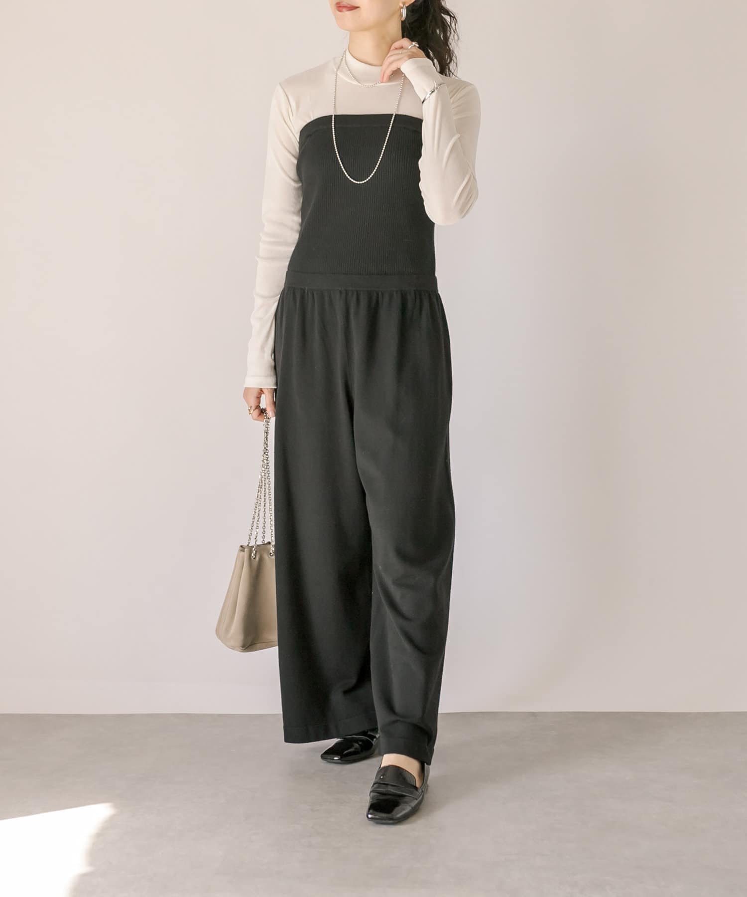 ストラップナシで着用できるベアタイプのニットサロペットが新登場。